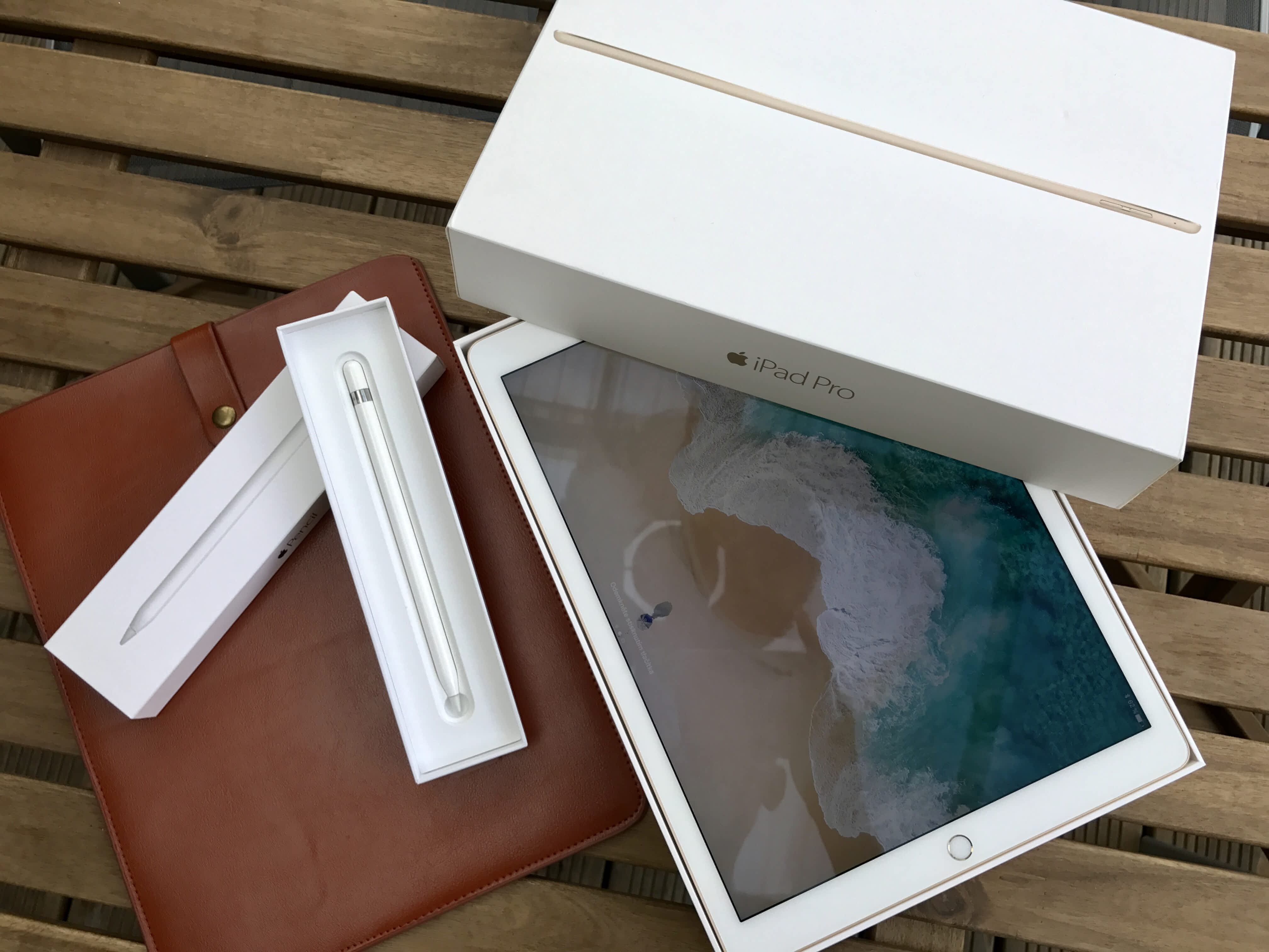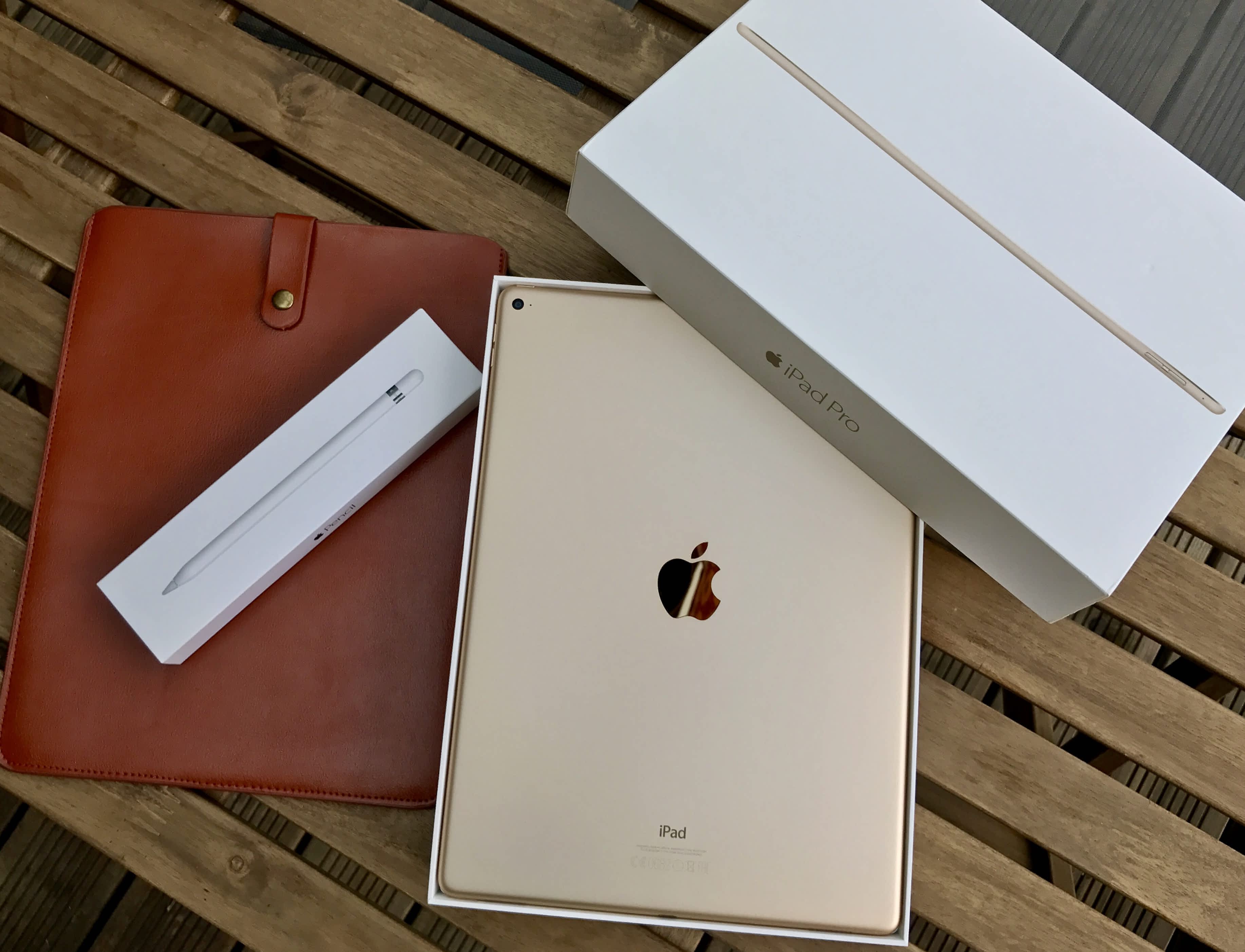 Ipad Pro 12,9" gold 128gb + Apple pencil + kožený obal + nový adaptér