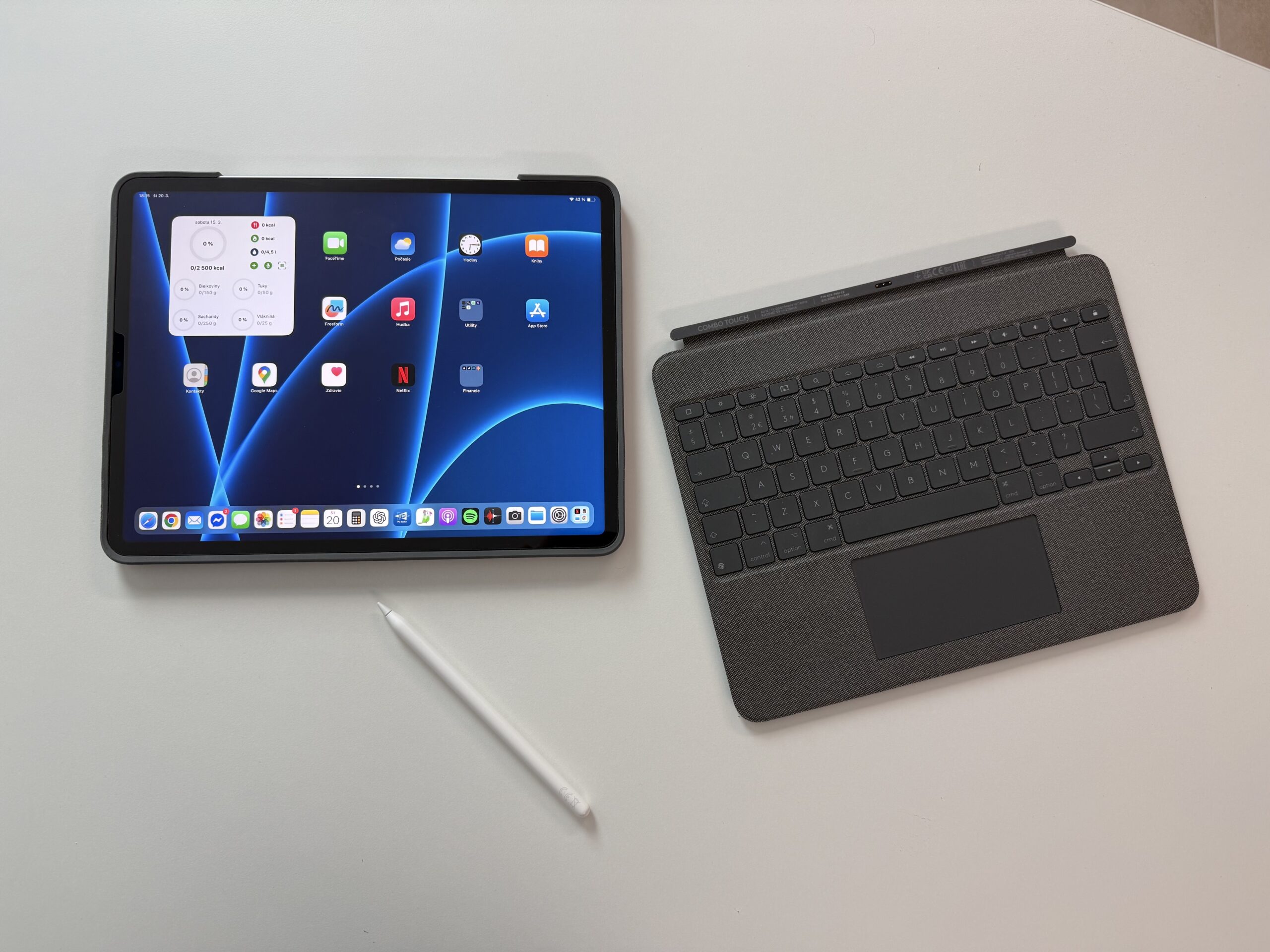 Predám iPad Pro 12,9" M2 (256 GB, WiFi) Silver + Logitech Combo Touch + Apple Pencil – TOP STAV!