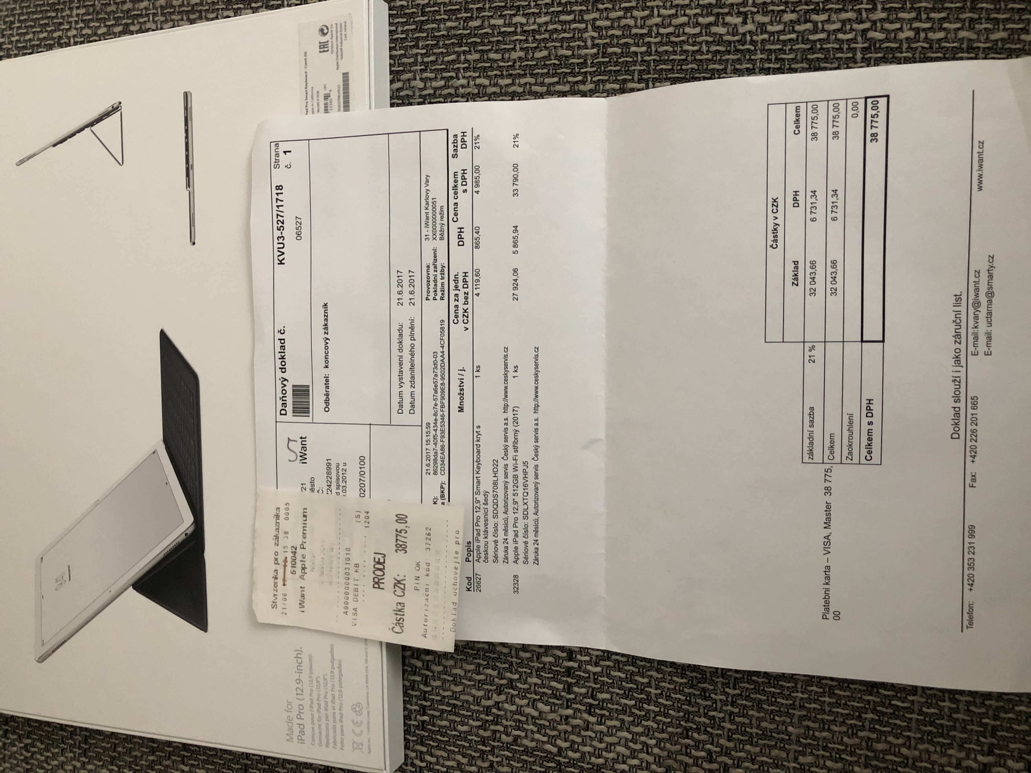 Prodám Apple IPad Pro 12,9,512 GB,wi-fi,stříbrný,2017 v top stavu.Koupeno v IWant za cca 39 000,-kč!!Nepoškrábaný,nadupaný tablet s odepínací klávesnicí a nejvyšší možnou pamětí 512 GB.Prodám za 1/2 nákupní ceny!!Pouze prodej-žádná výměna.Rychlost=domluva!