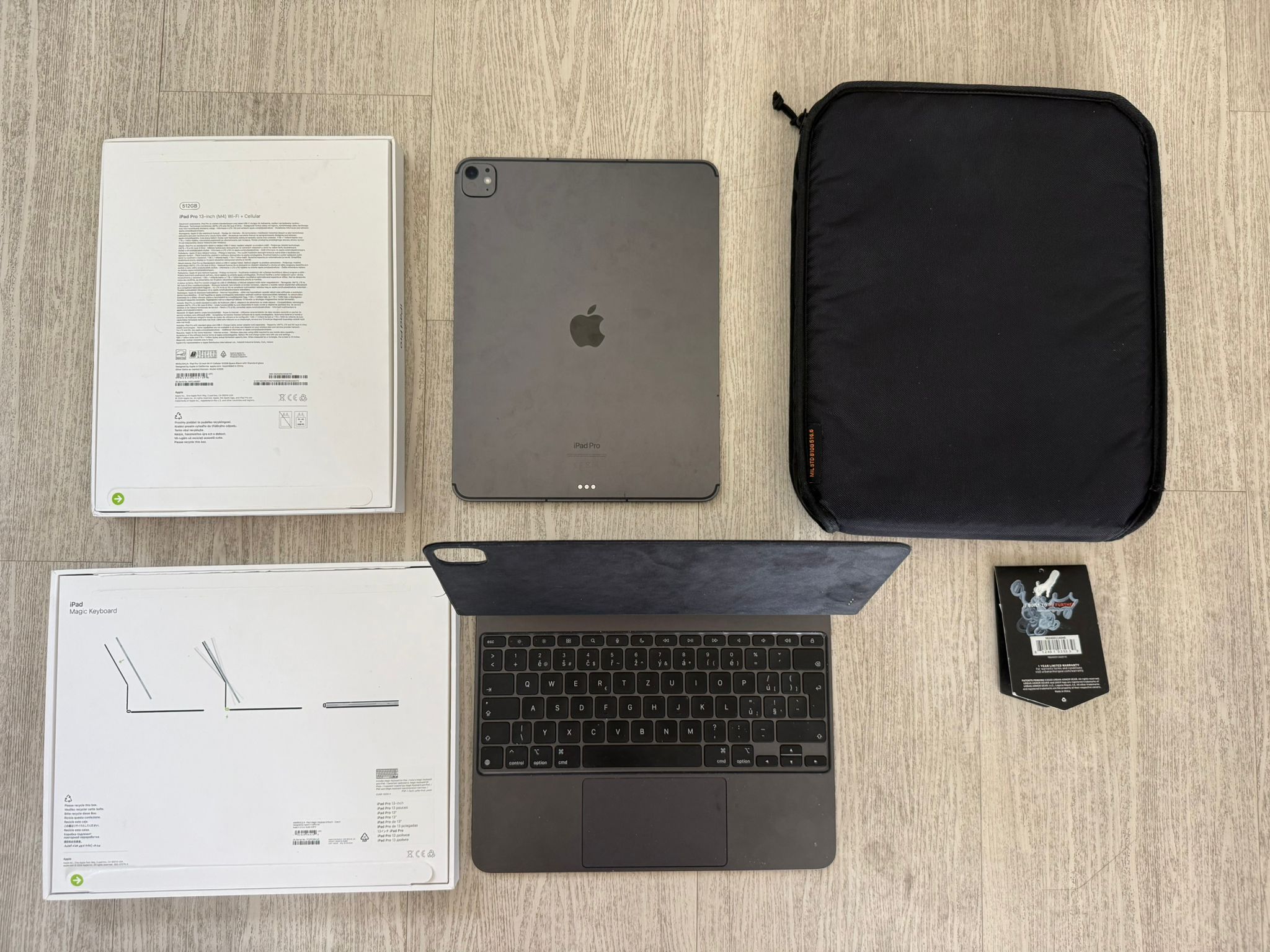 Prodám iPad Pro 13-inch (M4) Wi-Fi + Cellular 512Gb vesmírně černý + iPad Magic Keyboard Black s českou klávesnicí + UAG 13-Inch tablet sleeve. iPad, klávesnice a pouzdro byly zakoupeny 05/24. Důvod prodeje, je že místo iPadu chci pořídit přenosný MacBook. Původní cena ipadu a klávesnice byla dohromady cca 62000kč (51000 + 10000 + 1000). Já komplet vzhledem ke stáří a top stavu prodávám za 31000kč.