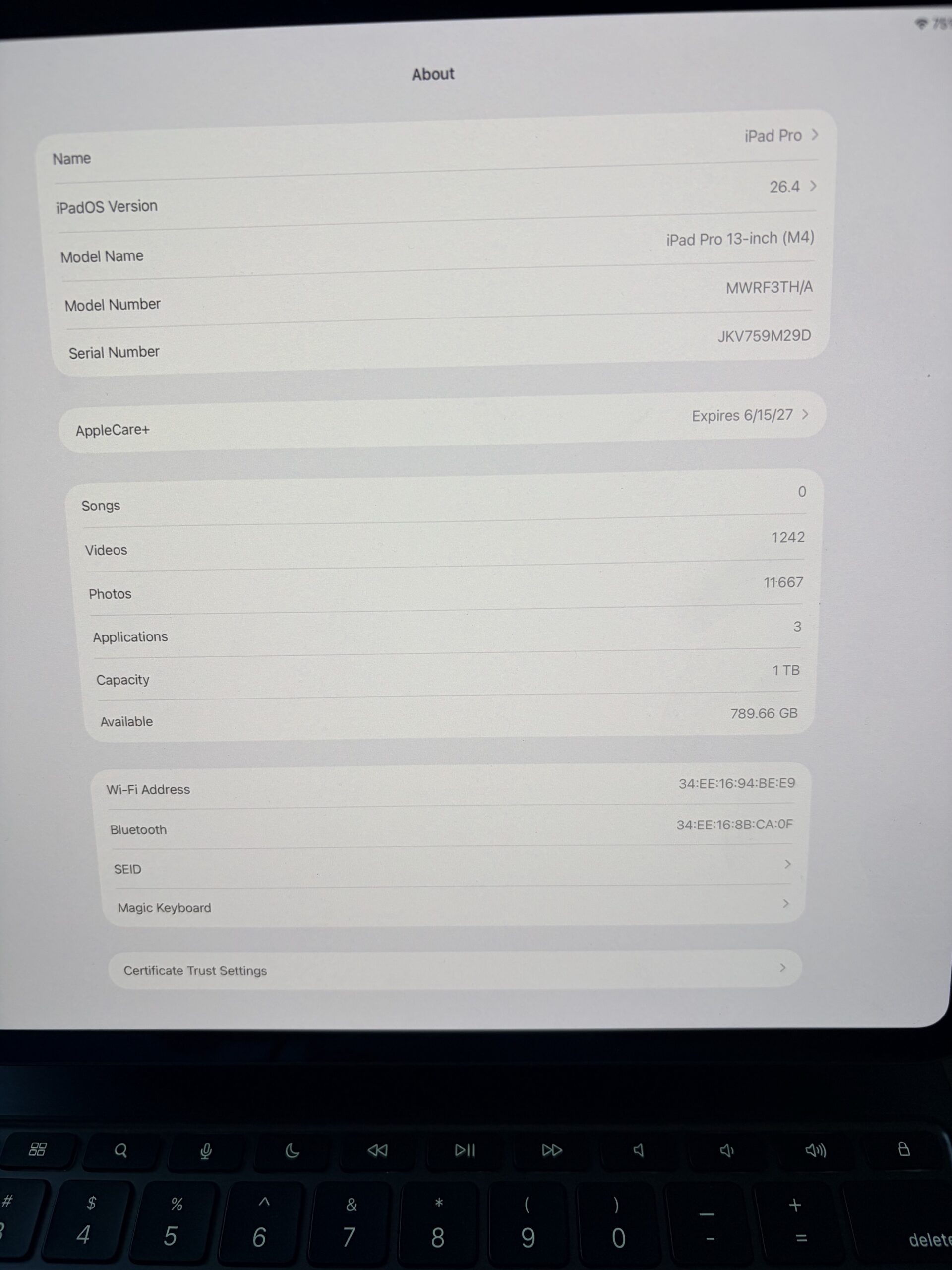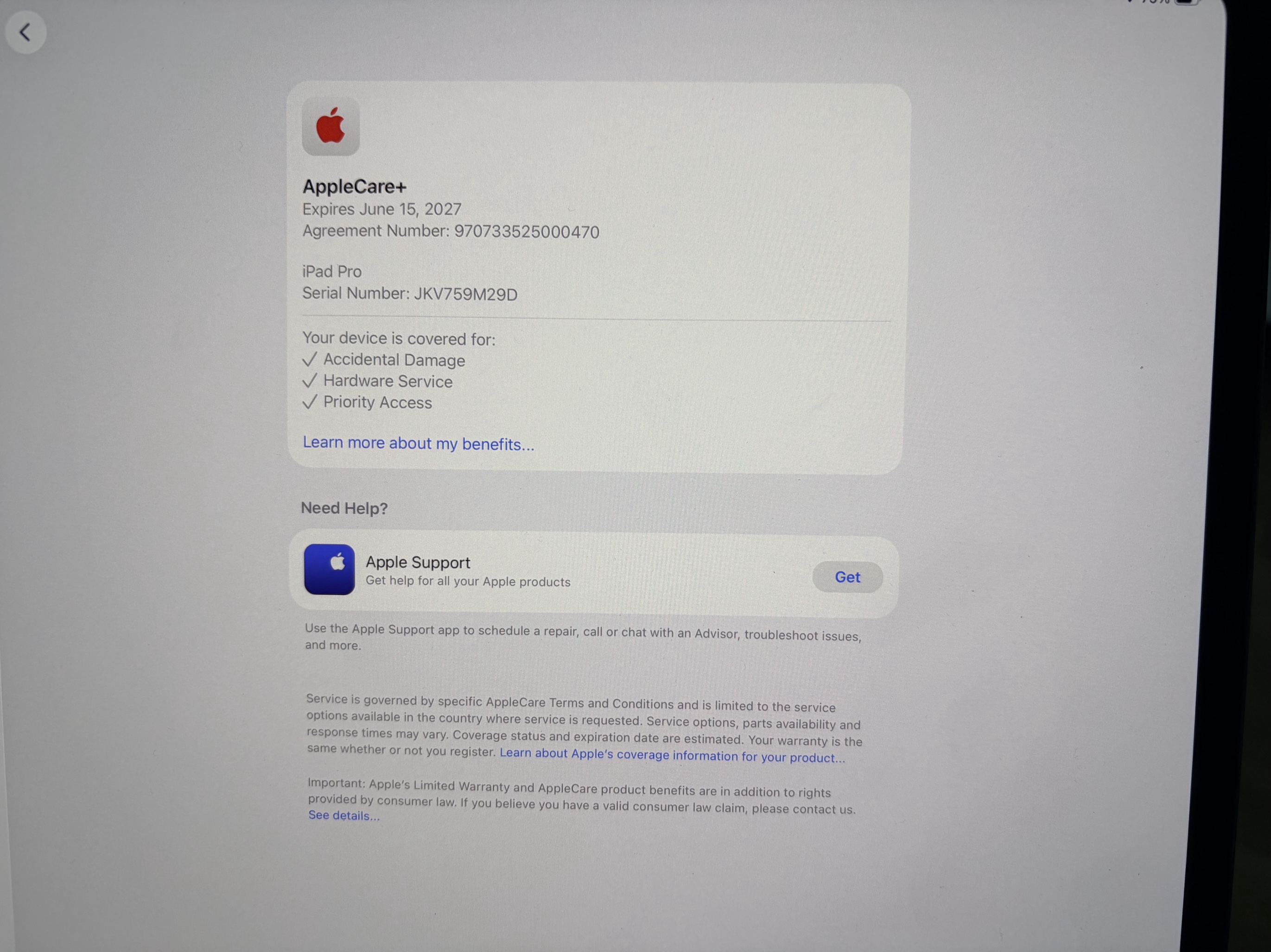 📄 AppleCare+ platný ještě cca 14 měsíců (do 15. 6. 2027) – kryje i náhodné poškození