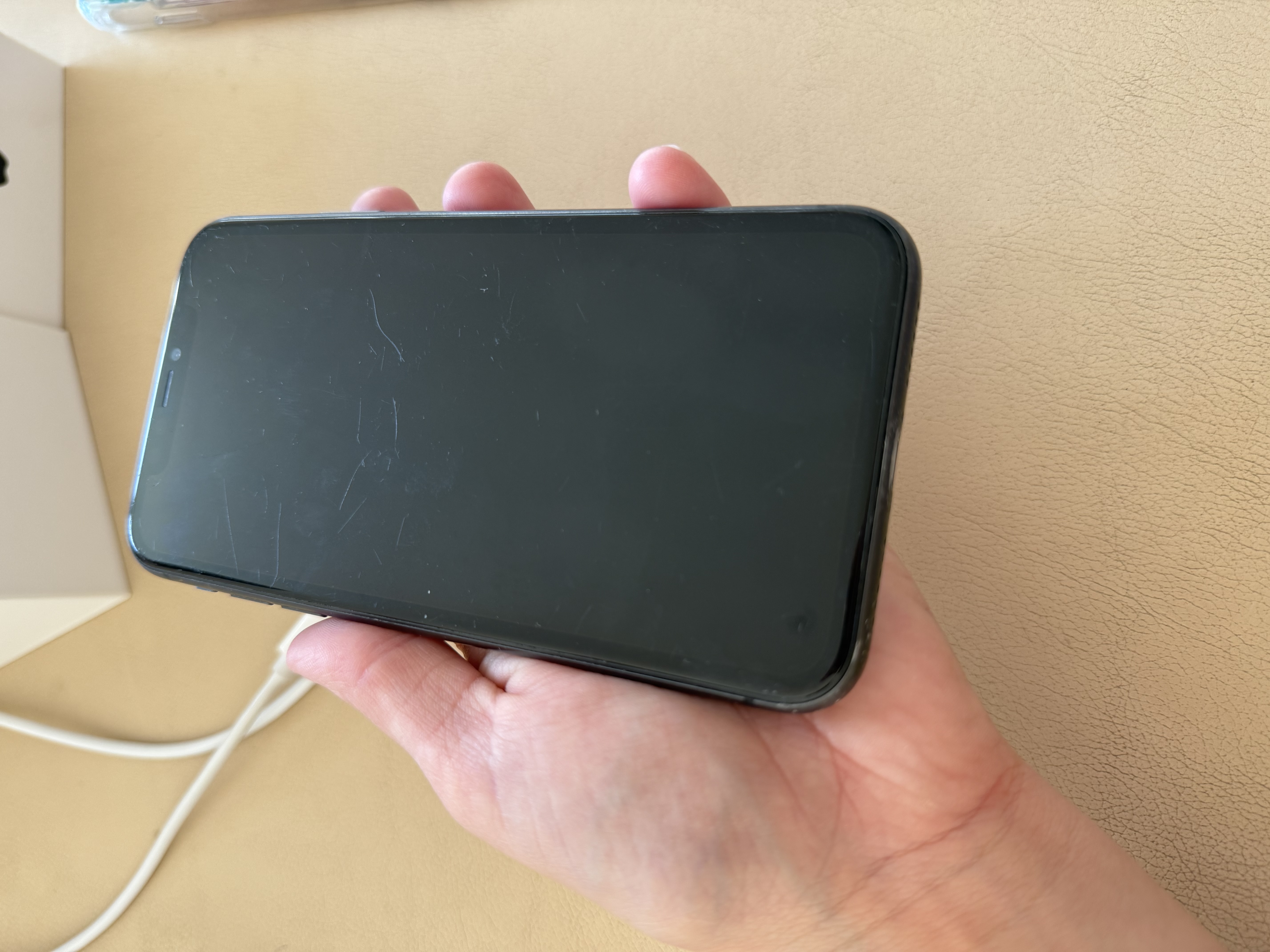 Prodám používaný iPhone 11. Neměl nikdy sklíčko preto ma škrábance. A par bouchancu a to nechápu proroze kryt jsem mela porad.