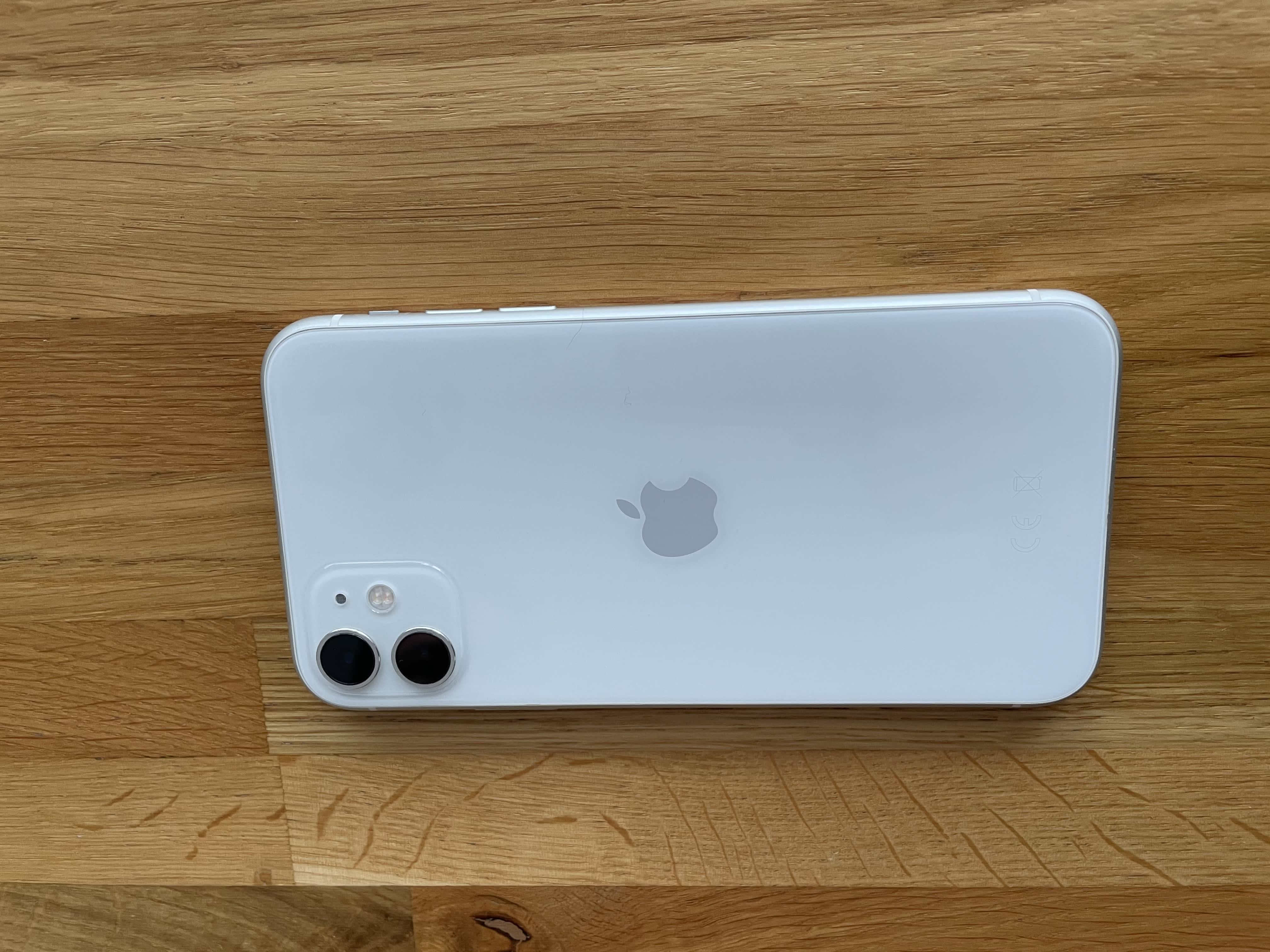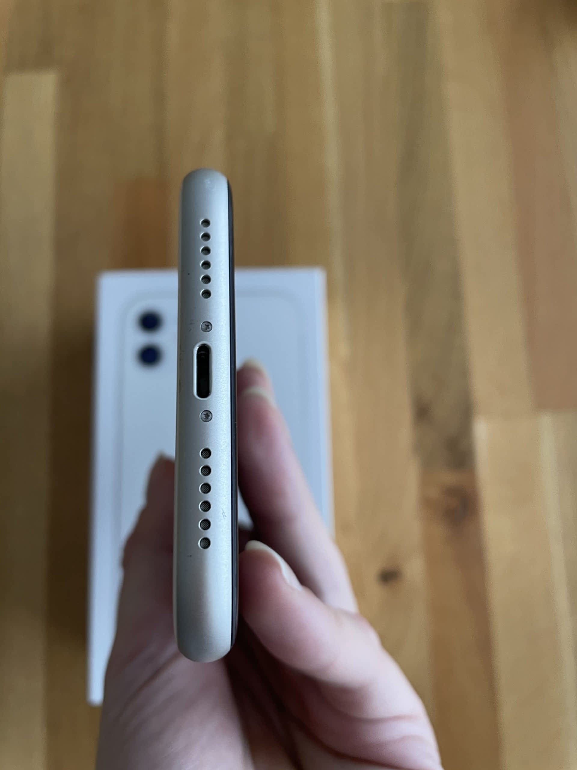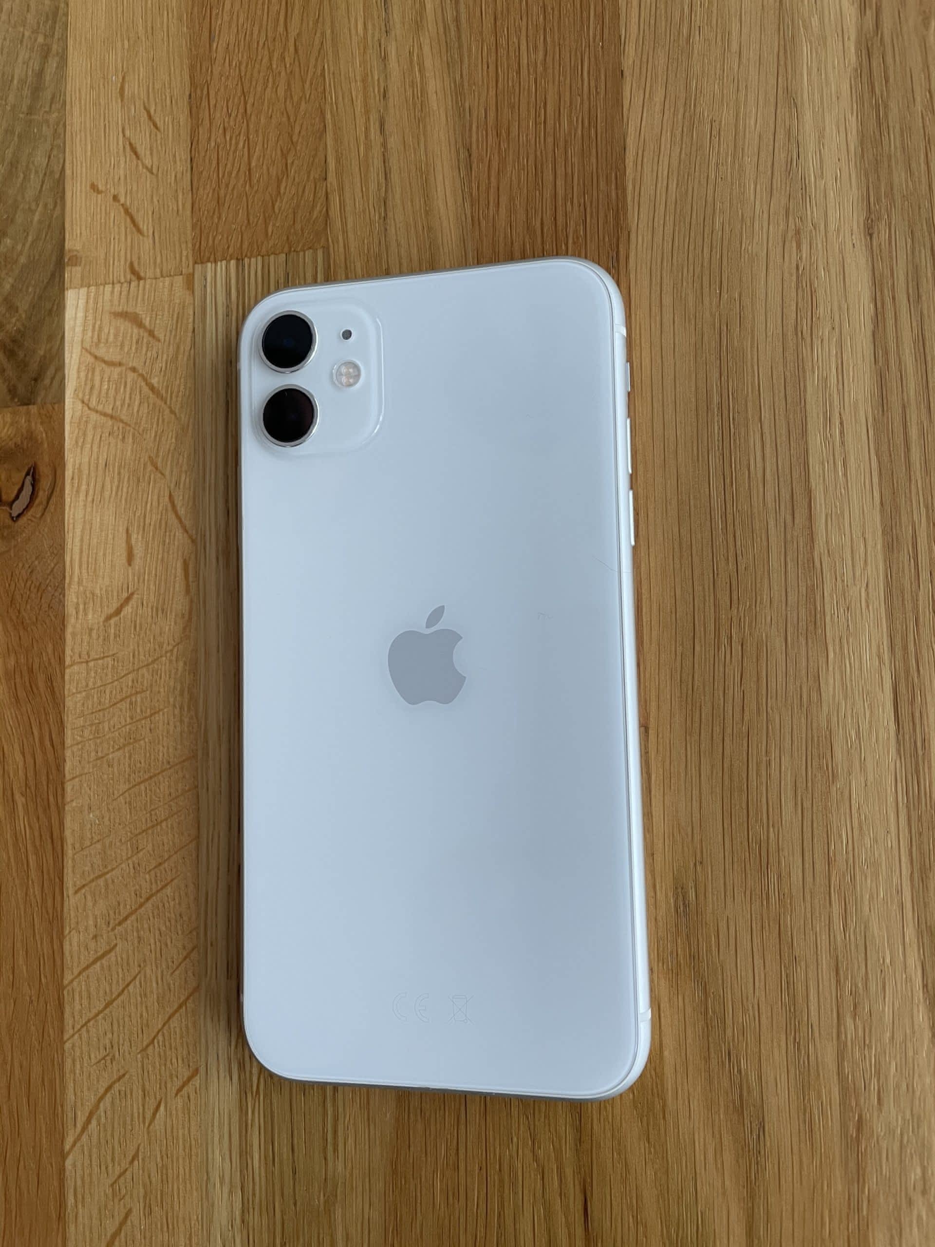 iPhone 11 64 GB, zadní strana bez vad. Dole malá oděrka dolní hrana a škrábanec levý horní roh.