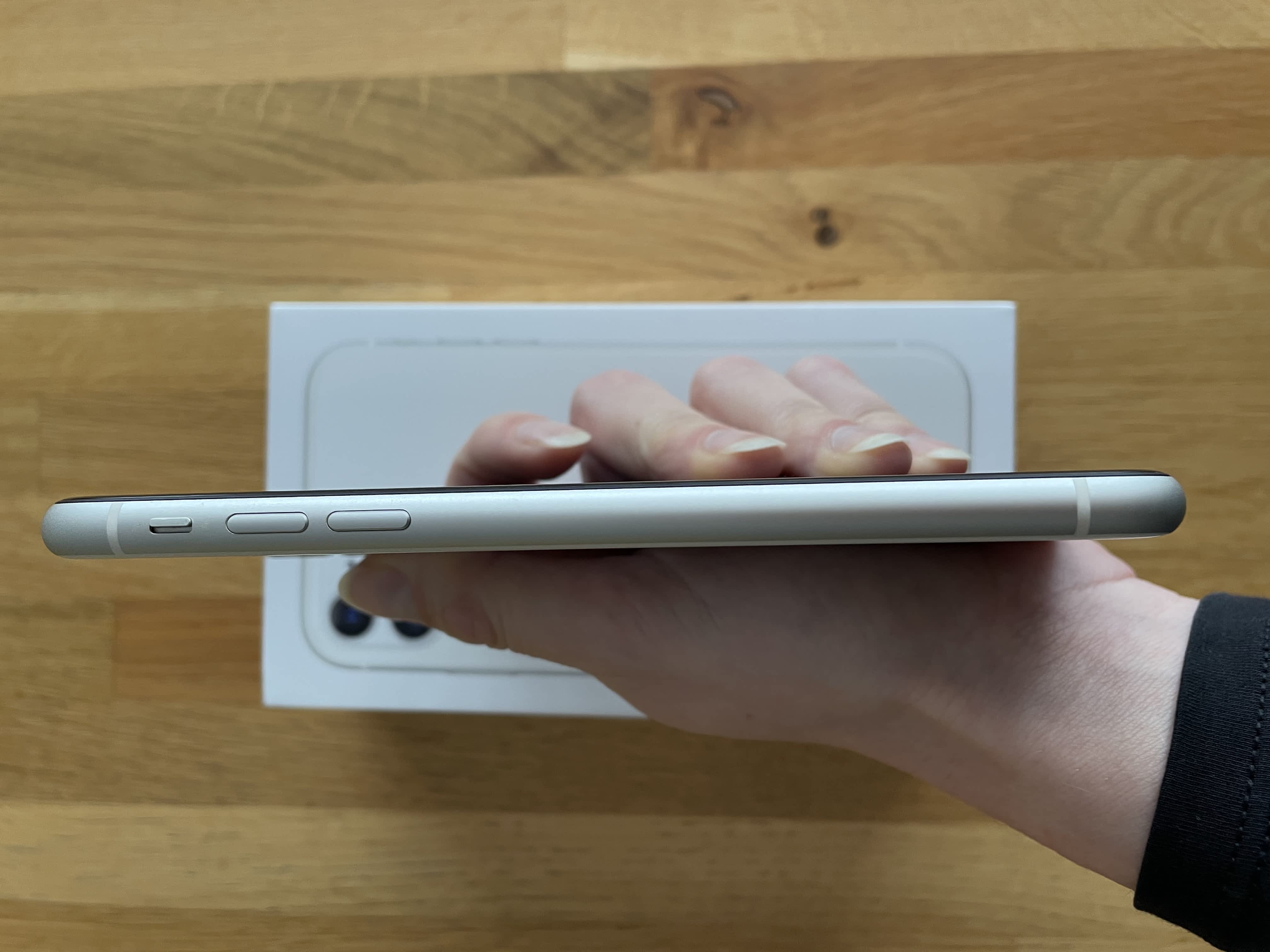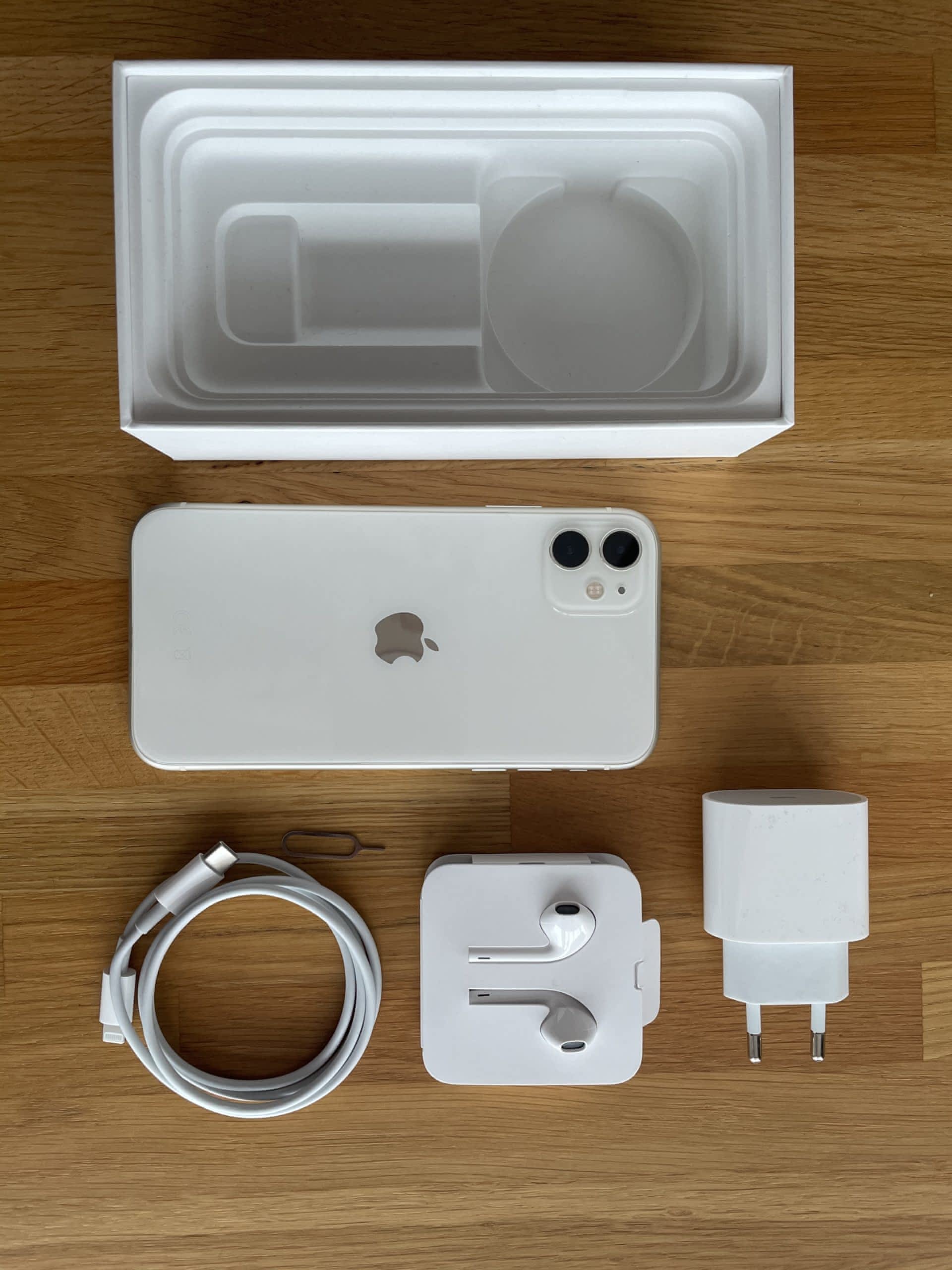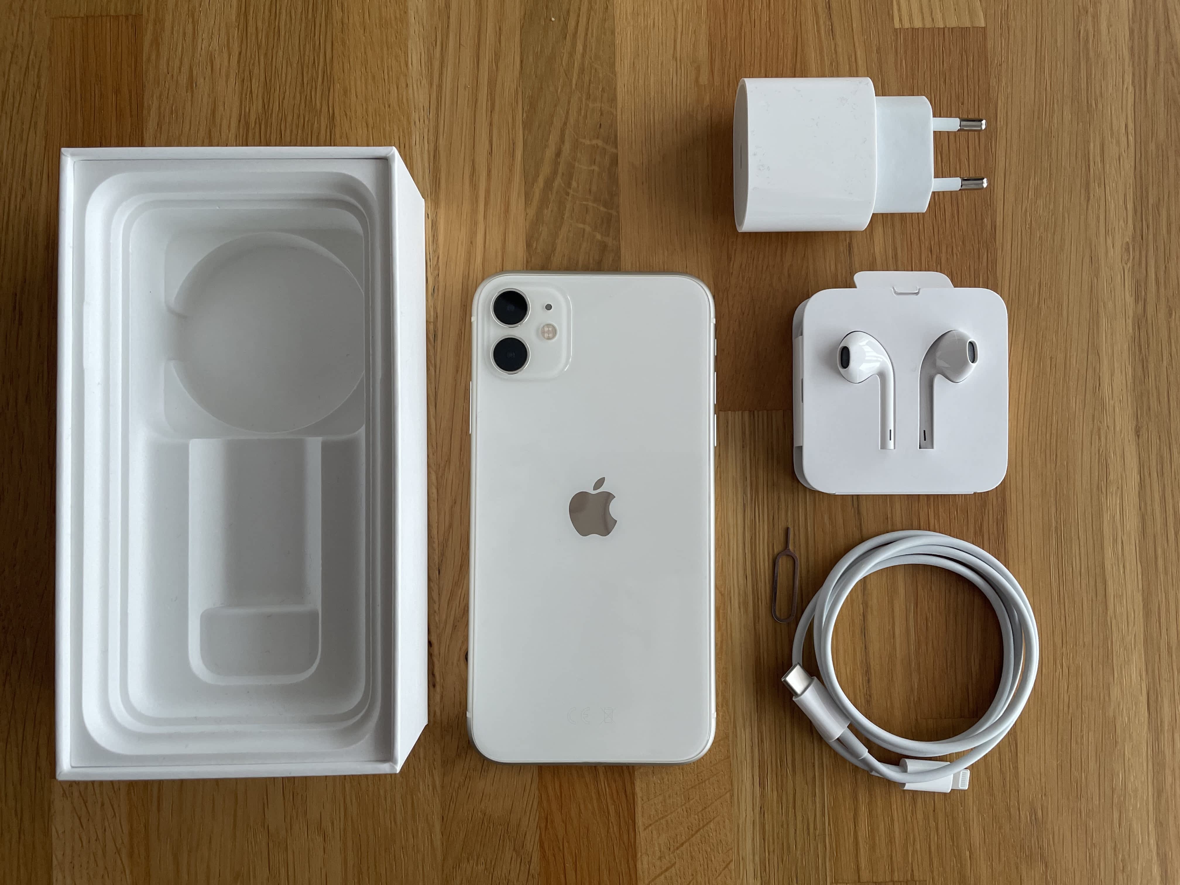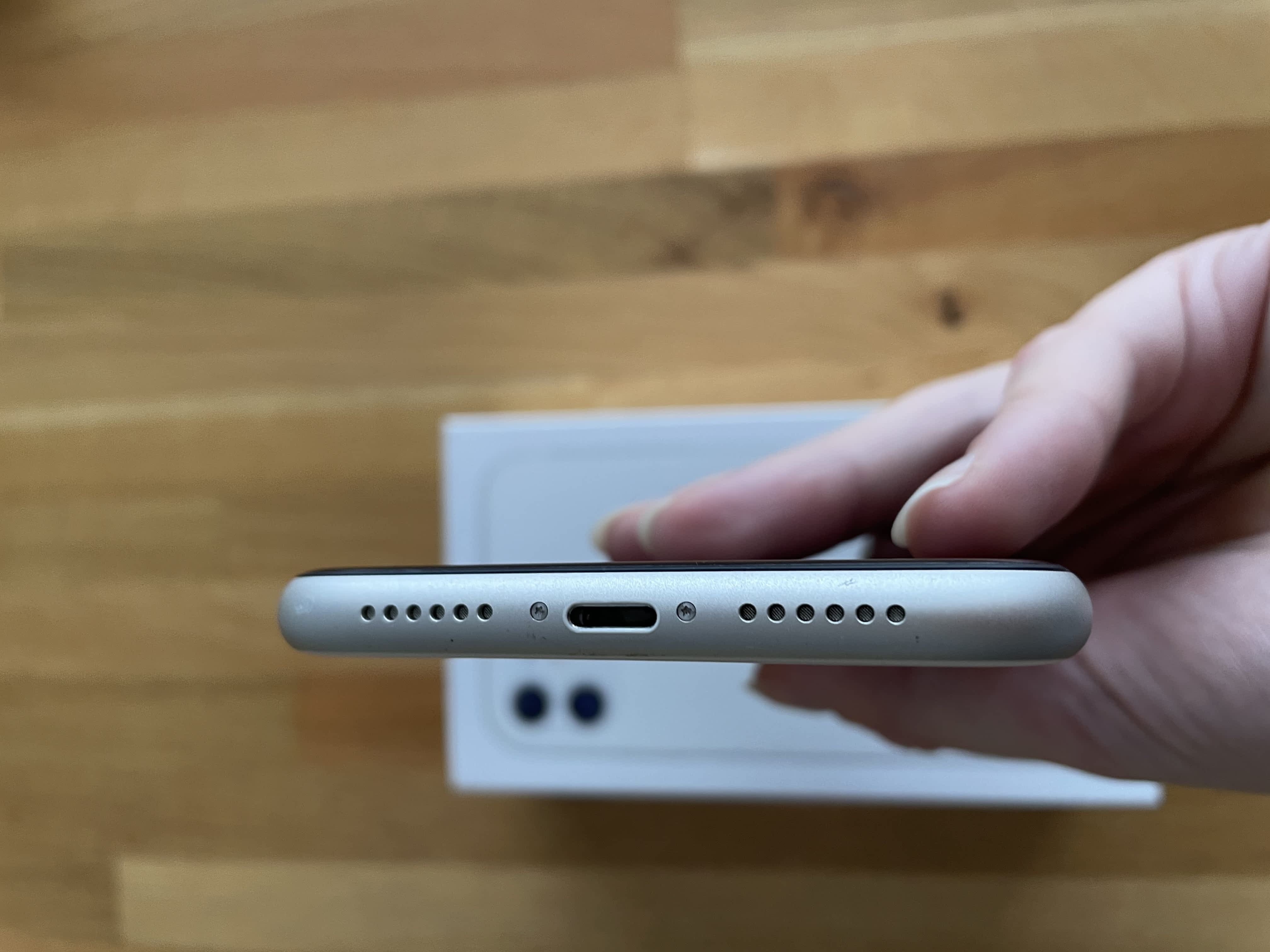 iPhone 11 64 GB, zadní strana bez vad. Dole malá oděrka dolní hrana a škrábanec levý horní roh.