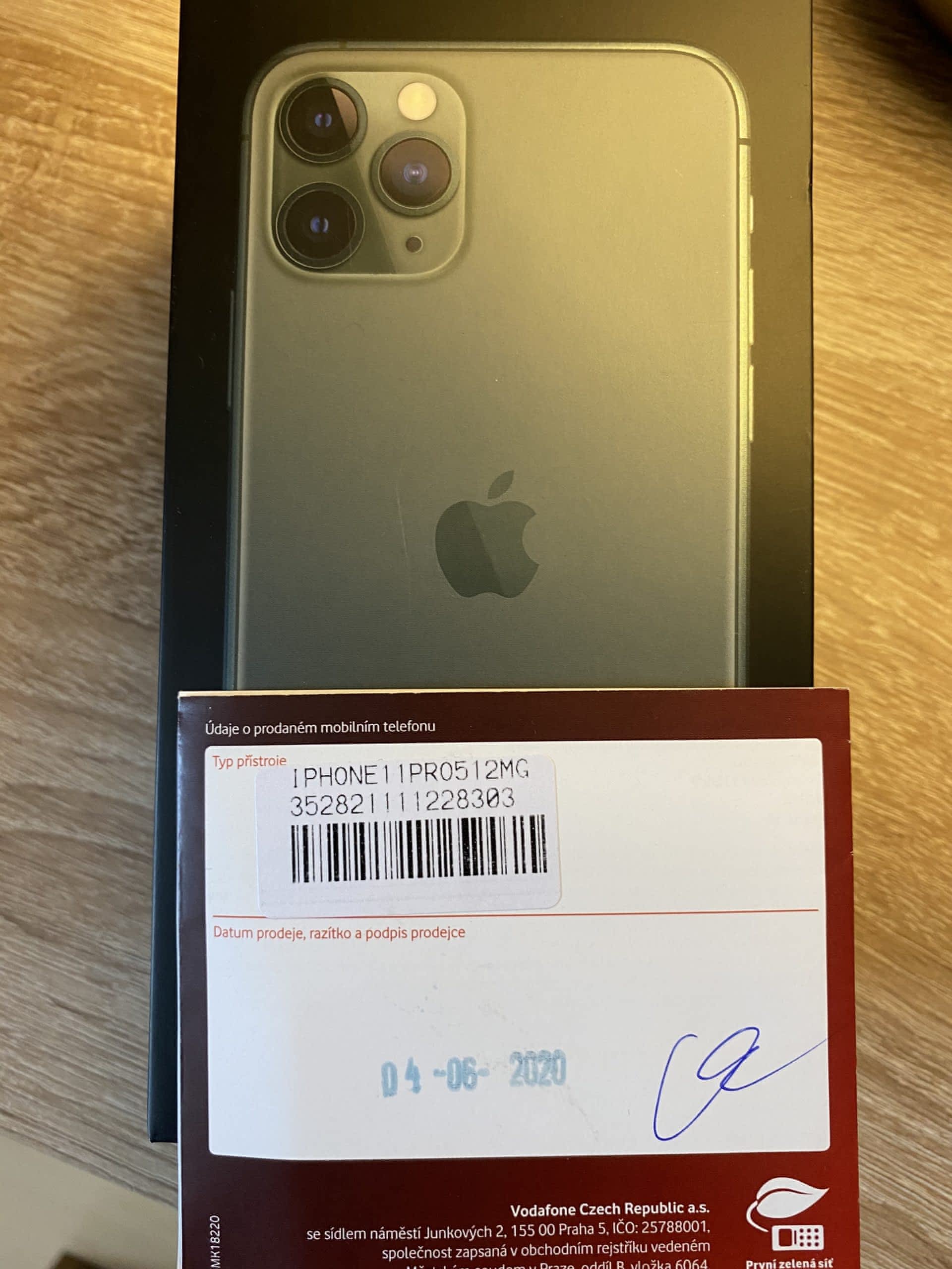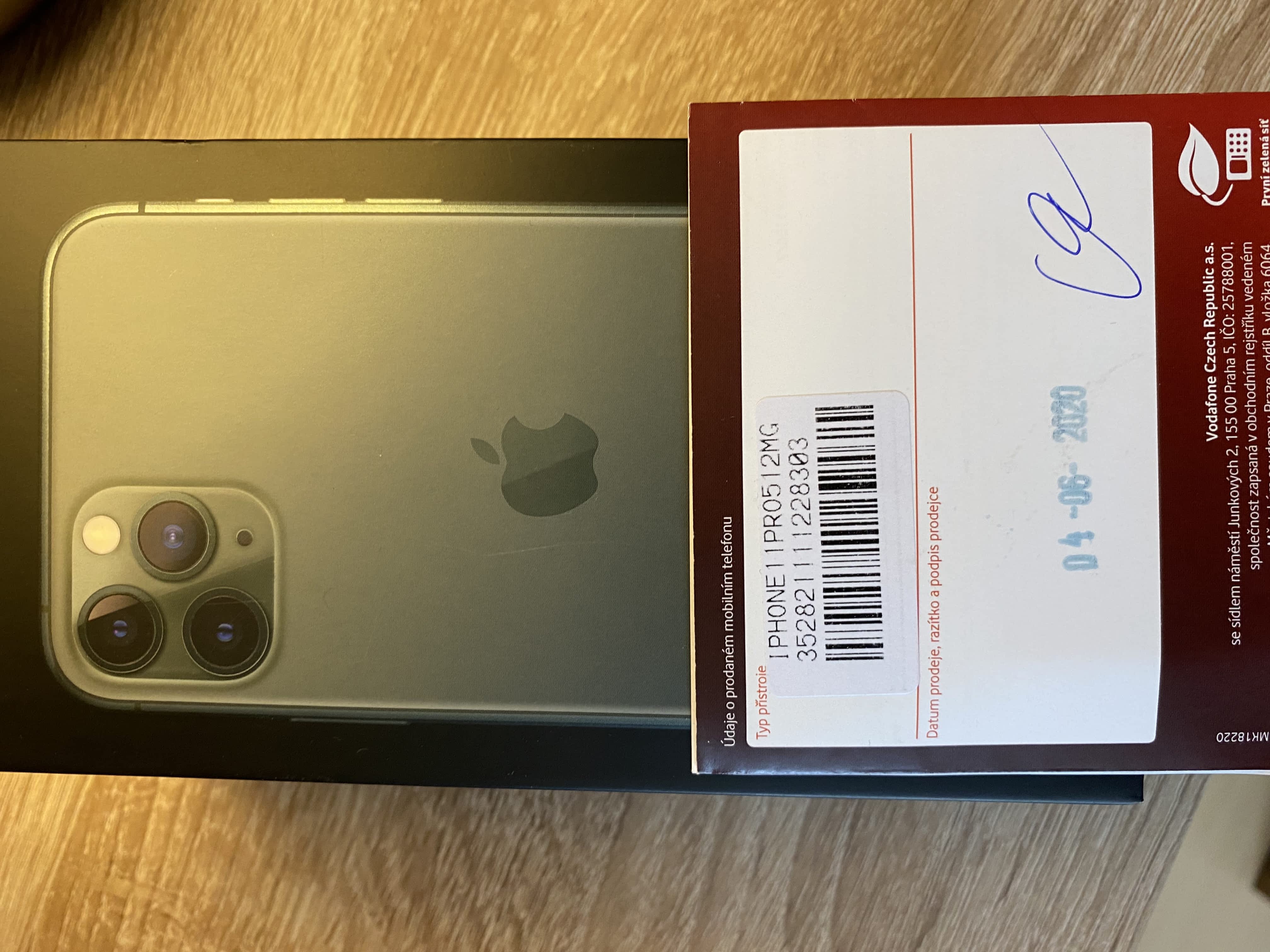 Prodám rok používaný iPhone 11 Pro 512gb, Midnight Green. Telefon stále nošený v obalu a s ochranným sklem, je tedy bez jakýchkoliv známek používání.