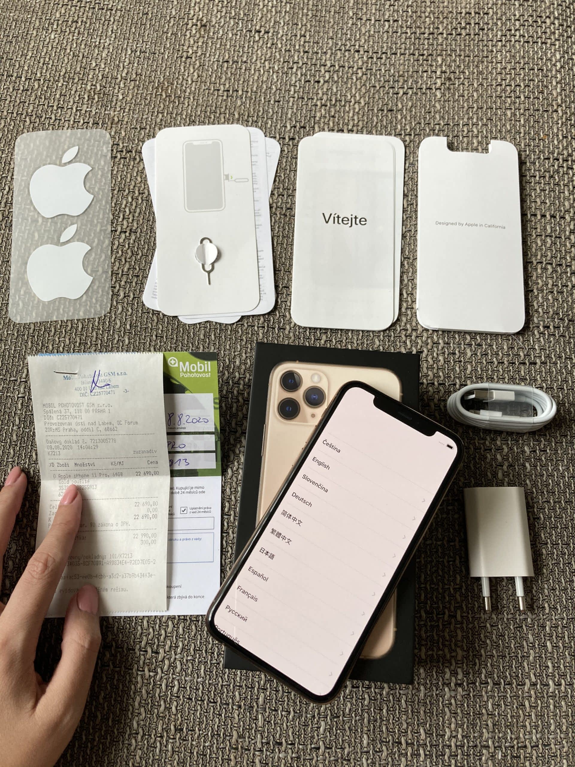 Prodám iPhone 11 Pro 64 gb barva gold. Telefon je plně funkční v perfektním stavu, displej i záda bez jediného škrábanečku, jediná menší kosmetická vada je malá odřeninka kolem rámečku fotoaparátu. (Viz. foto) není to nic dramatického, na focení nemá vliv jelikož vůbec nezasahuje do čočky fotoaparátu. Telefon je v záruce v Mobilpohotovosti do února 2021 a v mezinárodní Apple záruce do 16.5.2021