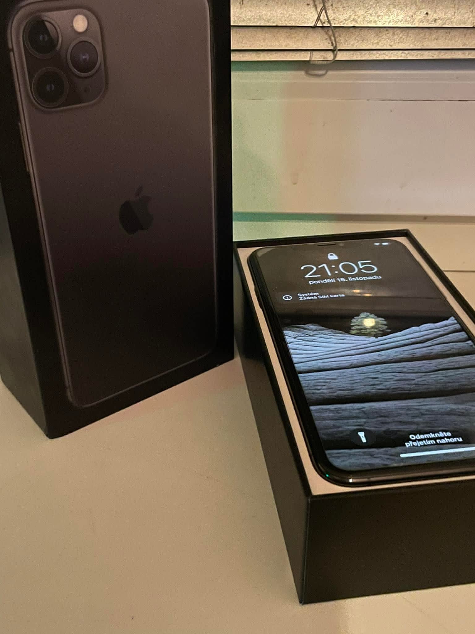 Nabízím k prodeji iPhone 11 Pro Max ve verzi 64 gb grafitově šedá, mobil celou dobu nošen v krytu s nalepeným ochranným sklem, nenese žádné vady, jen na rámečkách – v pravým dolním a v horním levým je poškrábaný hodně málo rám, okem nejde vidět, jen když si zasvítíte, mobil je v hezkým stavu a připravený pro nového majitele. Stav baterie je 85 procent, k mobilu přidám ještě 3 kryty, 2 ochranné skla. K mobilu mám i krabičku, bohužel už bez příslušenství. Prosím o seriozní jednání, jenom poprosím psát sms nebo na e-mail