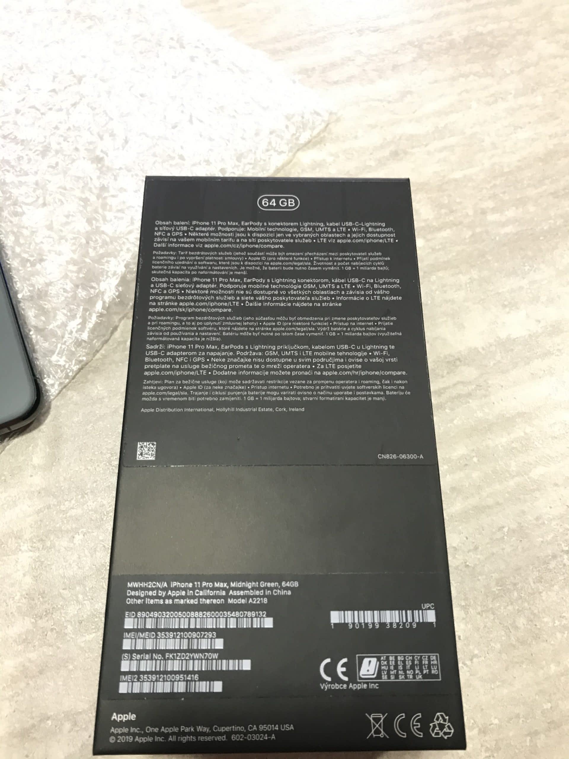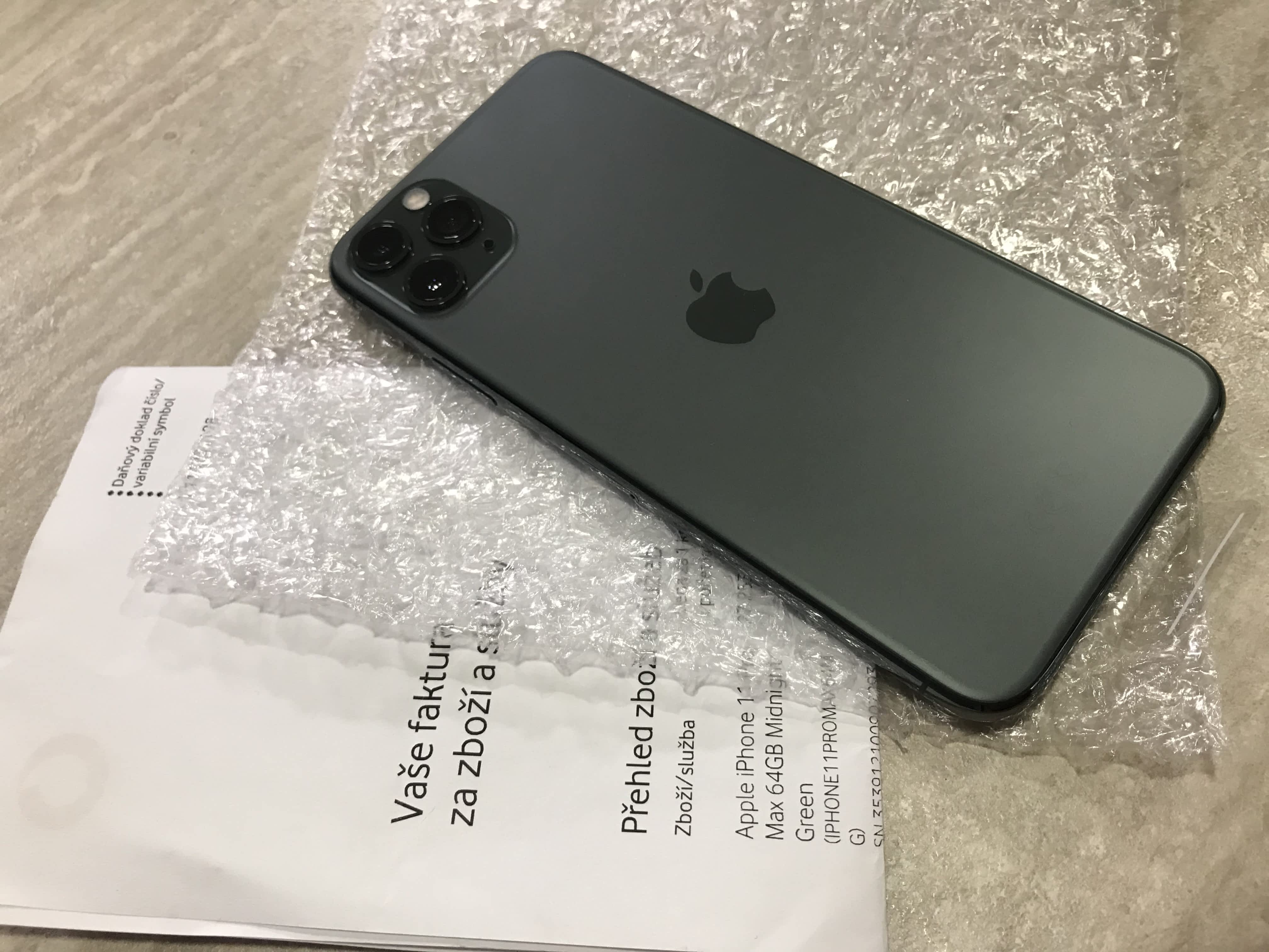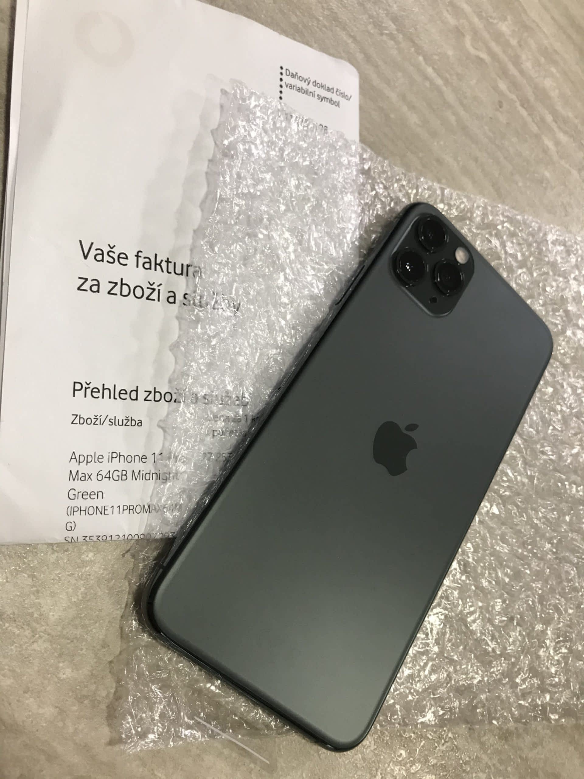 Prodam novy iPhone 11 Pro Max 64Gb – tmavě zelená (vymena Za novy po reklamaci u Vodafonu) Záruka, CZ distribuce + Nové bezpečnostní tvrzení sklo + Nový bezpečnostní obal Předání osobně