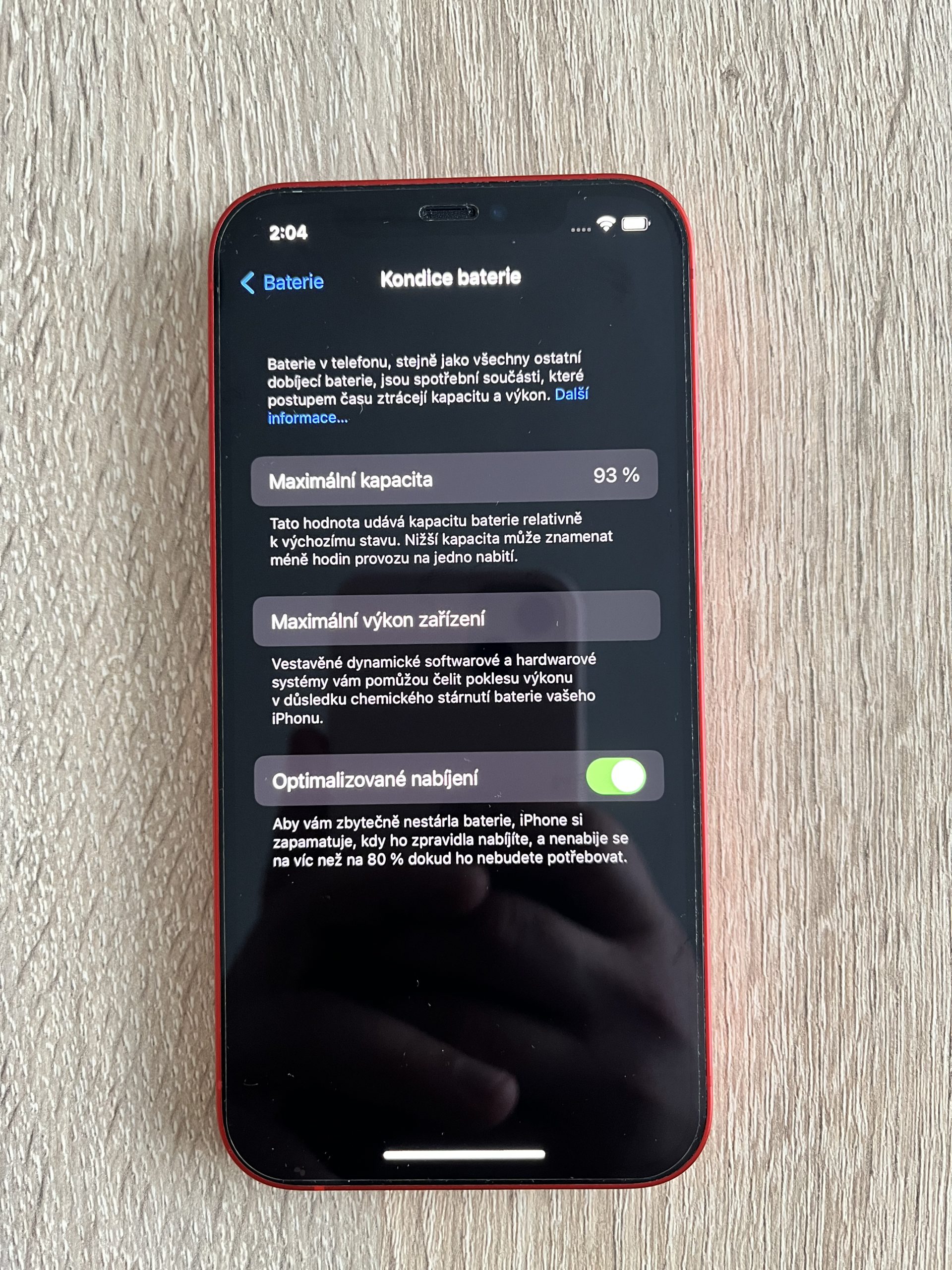 Dobrý den, nabízím k prodeji iPhone 12 RED (product) s kapacitou úložiště 64gb.Telefon je v top stavu. Je bez jediného škrábance, celou dobu byl nošen v koženém Mag Safe pouzdře, které přidávám k telefonu. Stále je na něm nalepeno ochranné sklo. Kondice baterie je 93%. Záruka ještě 11 měsíců. Prodávám kompletní balení – krabička, kabel, Mag Safe pouzdro. iCloud odhlášen.Osobní předání Praha, Kolínsko.
