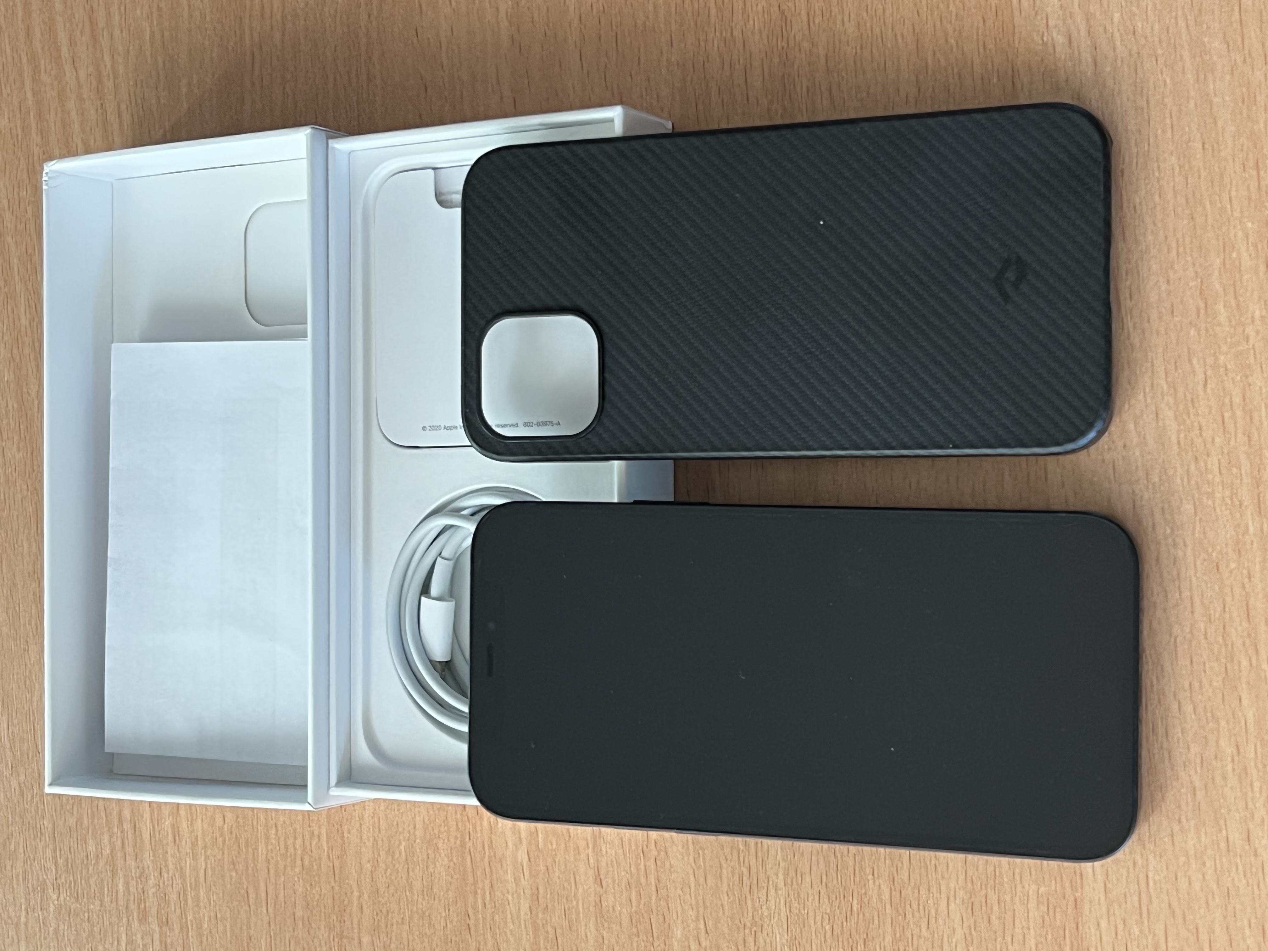 Prodam IPhone 12, Black, 64GB starý cca 3/4 roku (záruka). Telefon po celou dobu nošen v pouzdře a s ochranným sklem – stav jako nový. Kondice baterie 96%. Zdarma přidám pouzdro Pitaka.