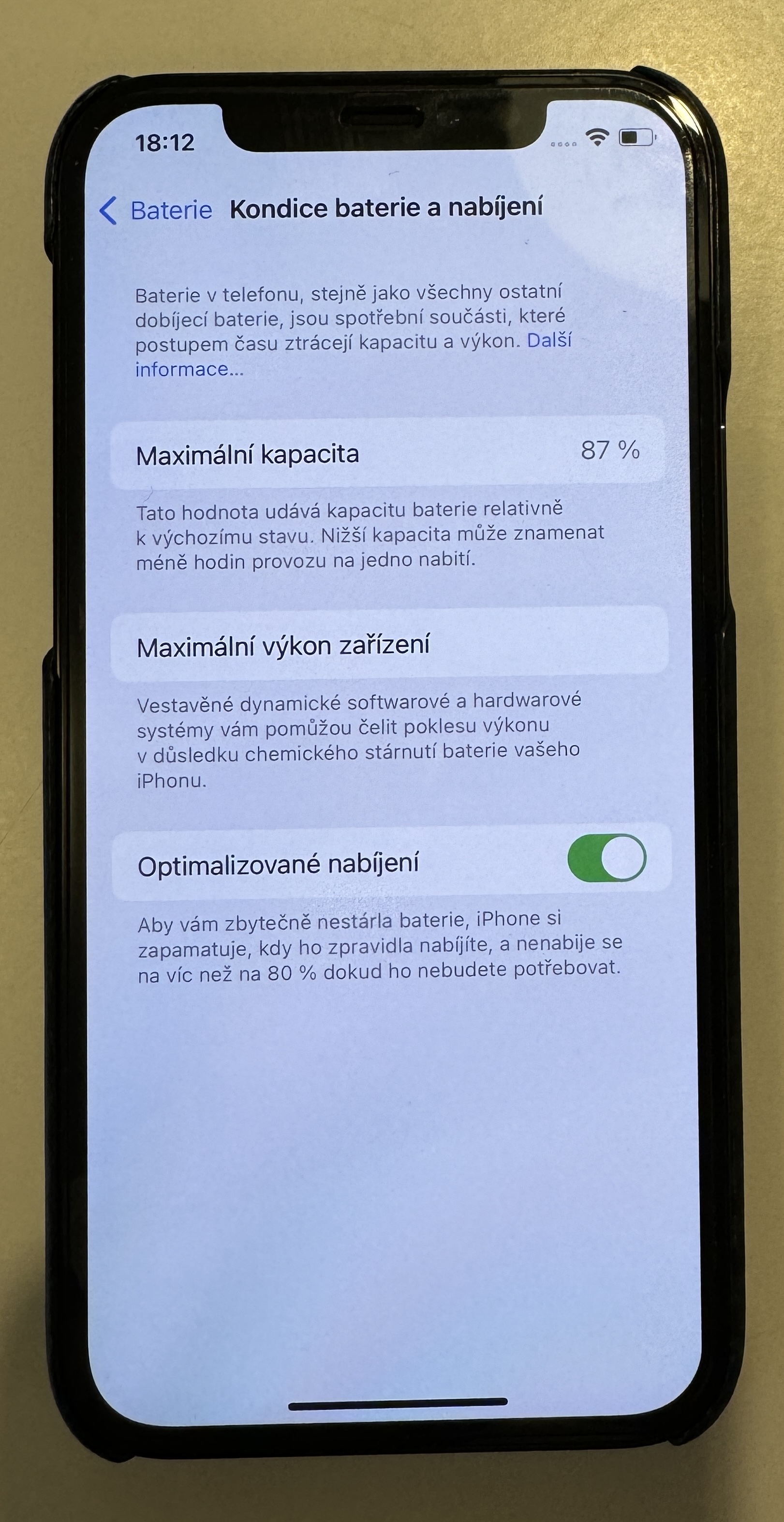 Baterka je na 87% kapacity.