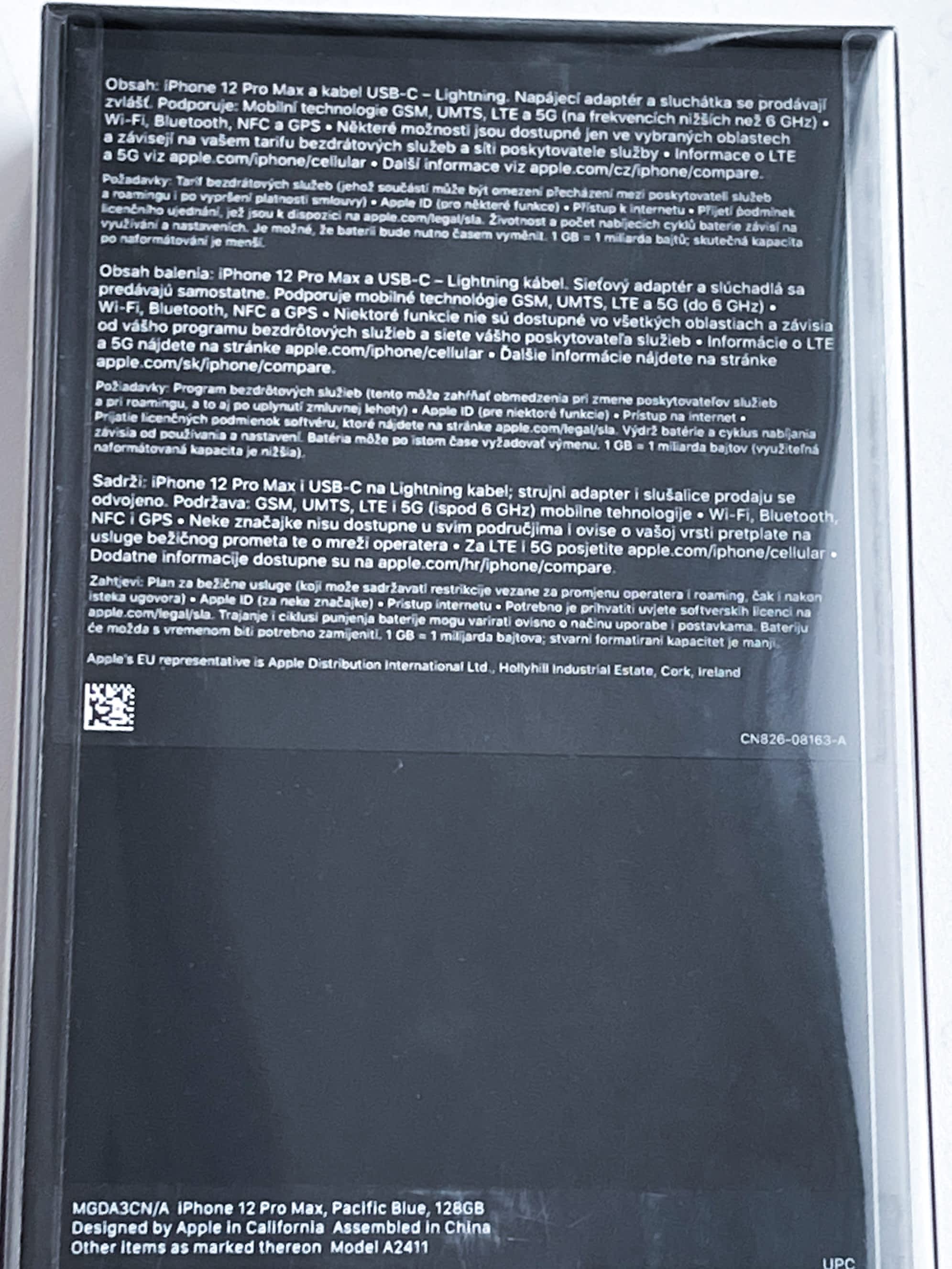 Prodám nový, nepoužitý iPhone 12 Pro Max 128GB Pacific Blue s 2letou zárukou (zakoupeno 16.12.2020). Osobní předání Praha 4 (v okolí Pražského povstání, případně Pankráce).