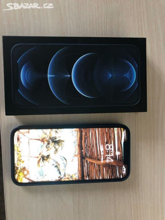 iPhone 12 Pro Max 256GB Pacific Blue (37 000 Kč) + krycí sklo (840 Kč) + Silikonový obal (1440 Kč) + Krabička + Záruka