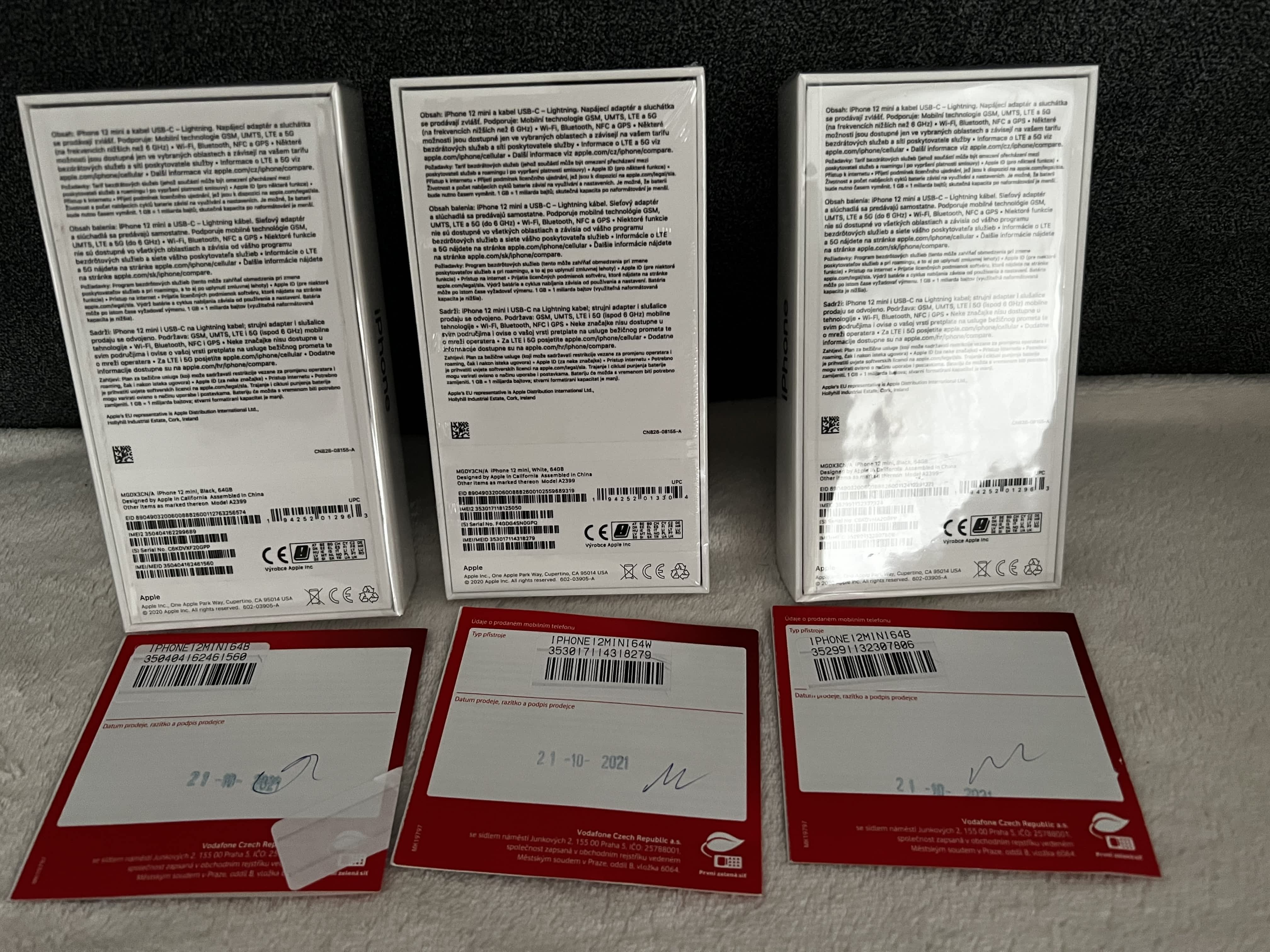 IMEI zašlu na požádání. CZ distribuce! Nabízím k prodeji produkt iPhone 12 mini 64GB. Jedná se o zbylé firemní zboží, které neprošlo přímým prodejem v dané lhůtě a nyní se jedná o doprodej, proto je cena nízká. K prodej 3kusy.
