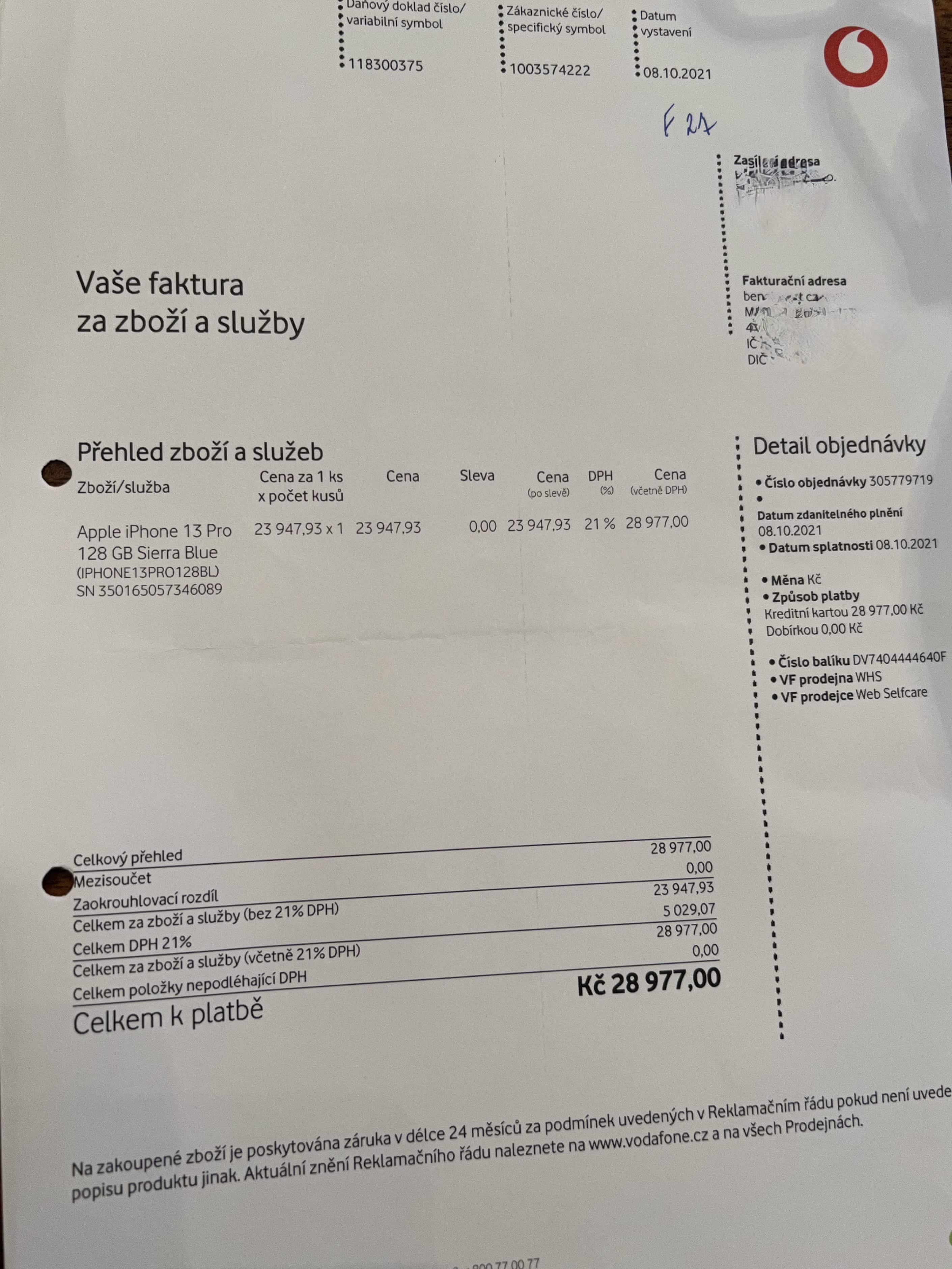 iPhone 13 Pro 128GB včetně AppleCare+ unikátně pro ID tohoto iPhonu do 11/2023 a ještě mimo to v CZ záruce do 11/2023. AppleCare+ kryje náhodná poškození (rozbitý displej, zadní sklo, oprava, expres servis, výměna baterie atd. vše zdarma). Zakoupen u Vodafone ČR v 10/2021, faktura o zakoupení, platná záruka, originální krabička se základním příslušenstvím. Stav jako nový, celou dobu nošený v pouzdře. Odhlášený z iCloudu, aktualizovaný, připravený k okamžitému používání. Cena včetně AppleCare+ je 29.000,- Kč. Žádná výměna, pouze prodej, možno i za BTC. Pouze osobní předání Teplice (víkendy+večery) nebo Praha 8.