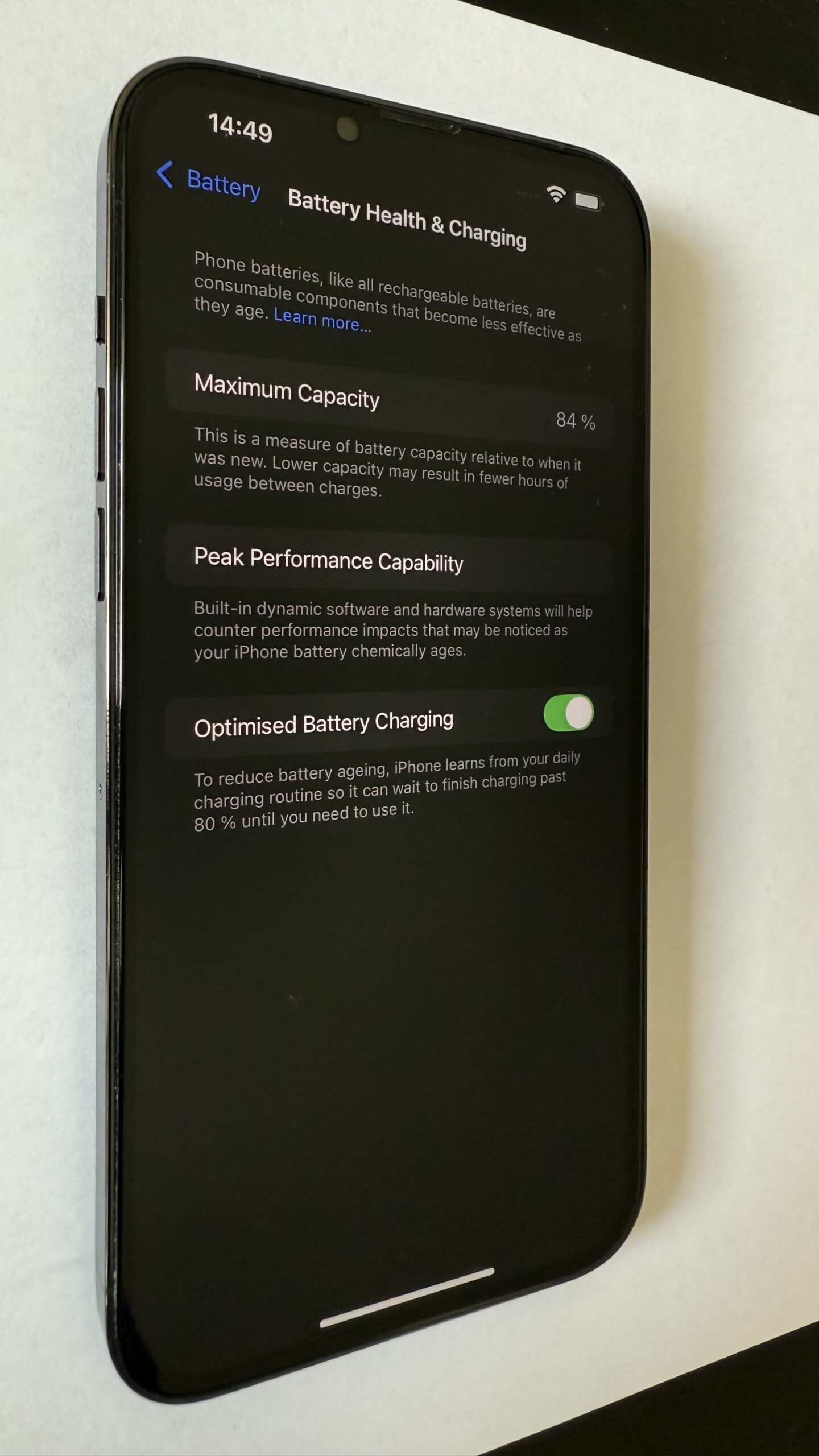 Telefon je v bezvadném stavu bez oprav, bez škrábanců a oděrků a s nalepeným ochranným sklem PanzerGlass Ceramic, také bez škrábanců. Stav baterie telefonu – 84%. Originální balení s Lightning-USB-C kabelem a originál Apple transparentním krytem s MagSafe. Telefon již nemá záruku. Je odemčený pro všechny operátory. Pouze osobní odběr.