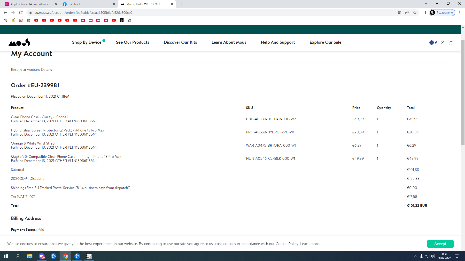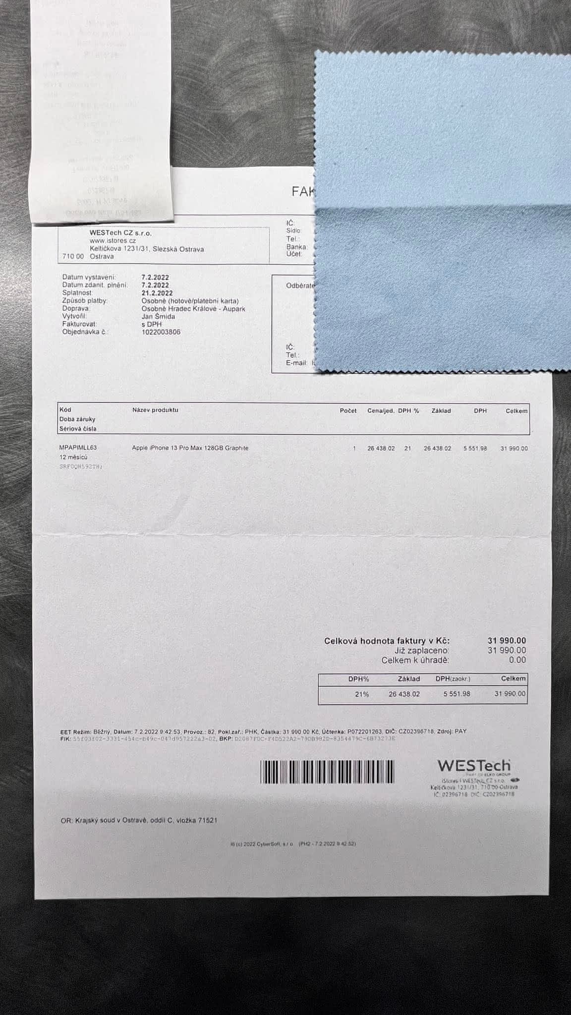 V příloze pár fotografií iPhonu, více není třeba. Dále přikládám screen objednávky z mous a náhled FA z iStores