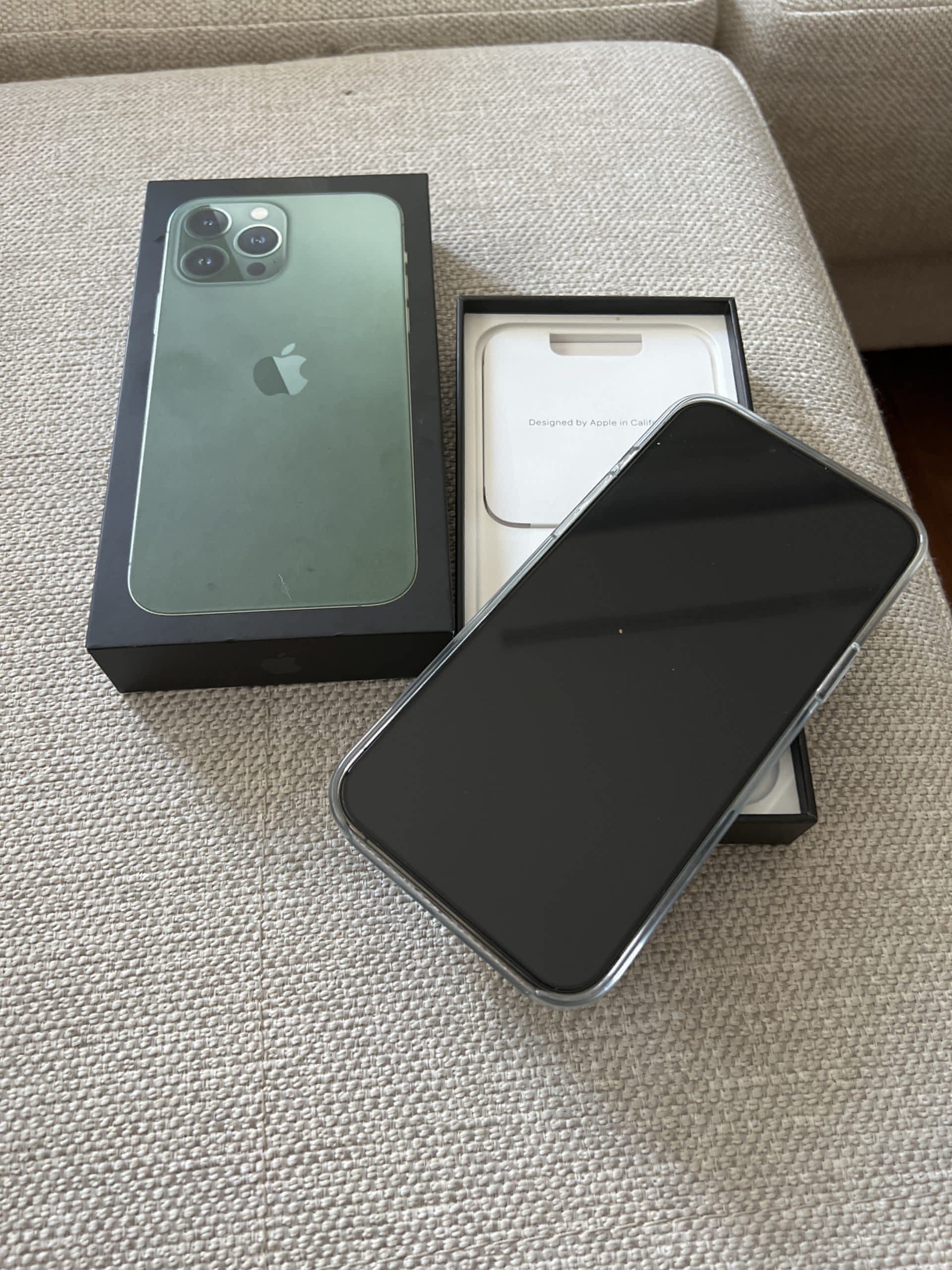 Prodám ZELENÝ! iPhone 13 Pro Max 512 Gb koupený před týdnem v Istores. Je včetně Megsafe průhledného krytu a original bezpečnostního skla. Nošený byl jen pul dne. Z důvodů nevyhovující velikosti prodávám.