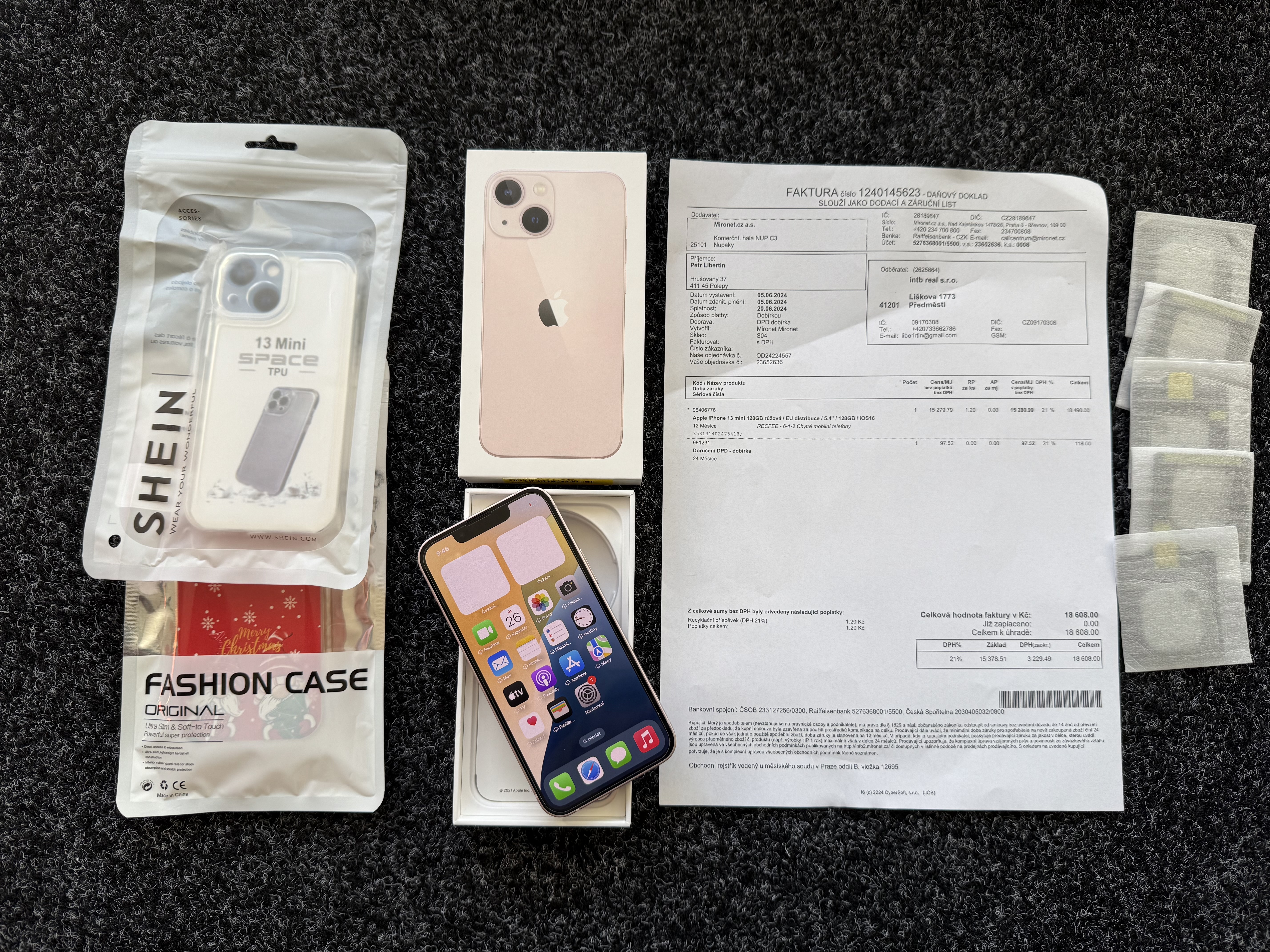 K telefonu original krabička,doklad o koupi z mironet(koupen 5.6.2024 v mironetu), 2 kryty, a 5 krytu na fotak.