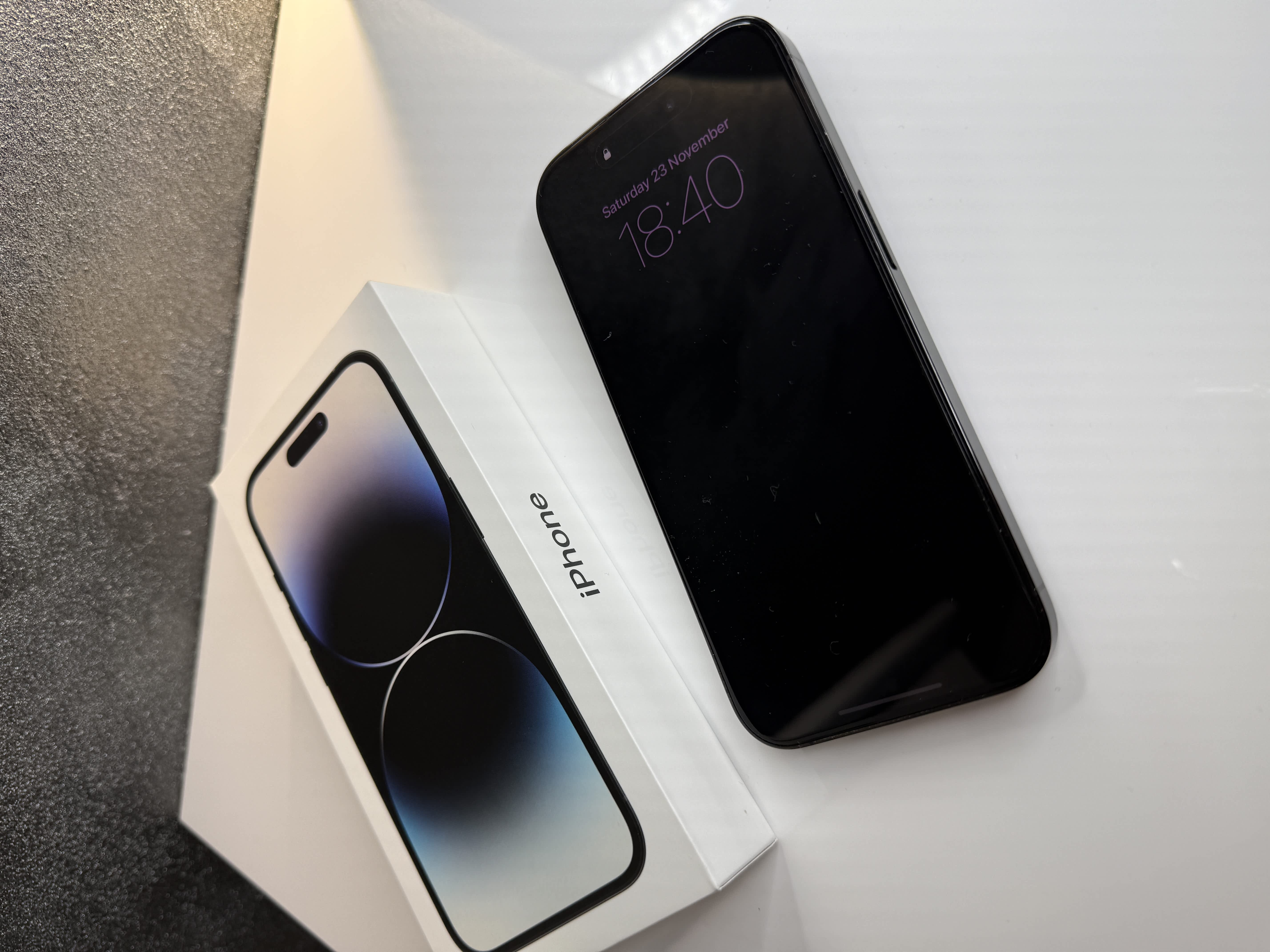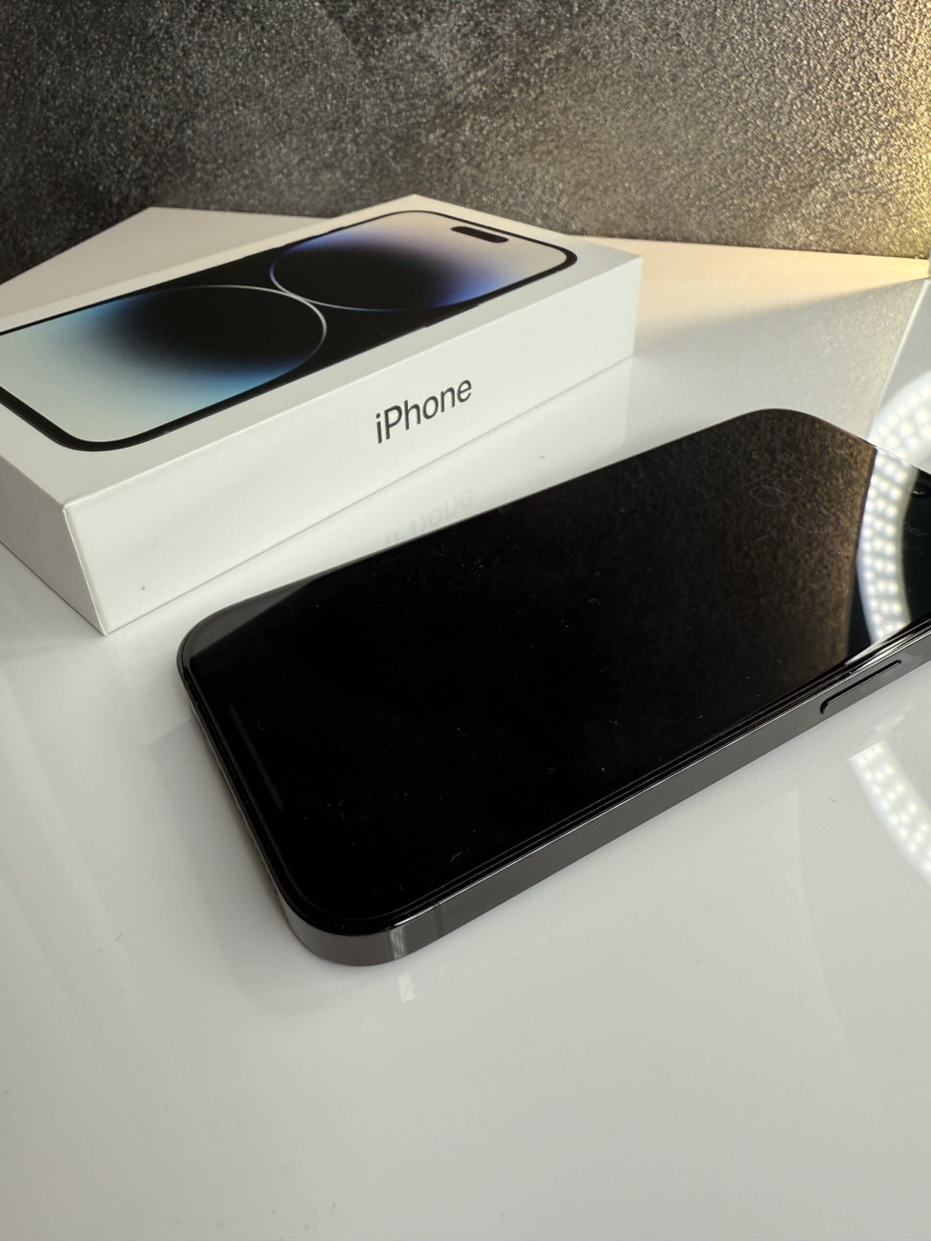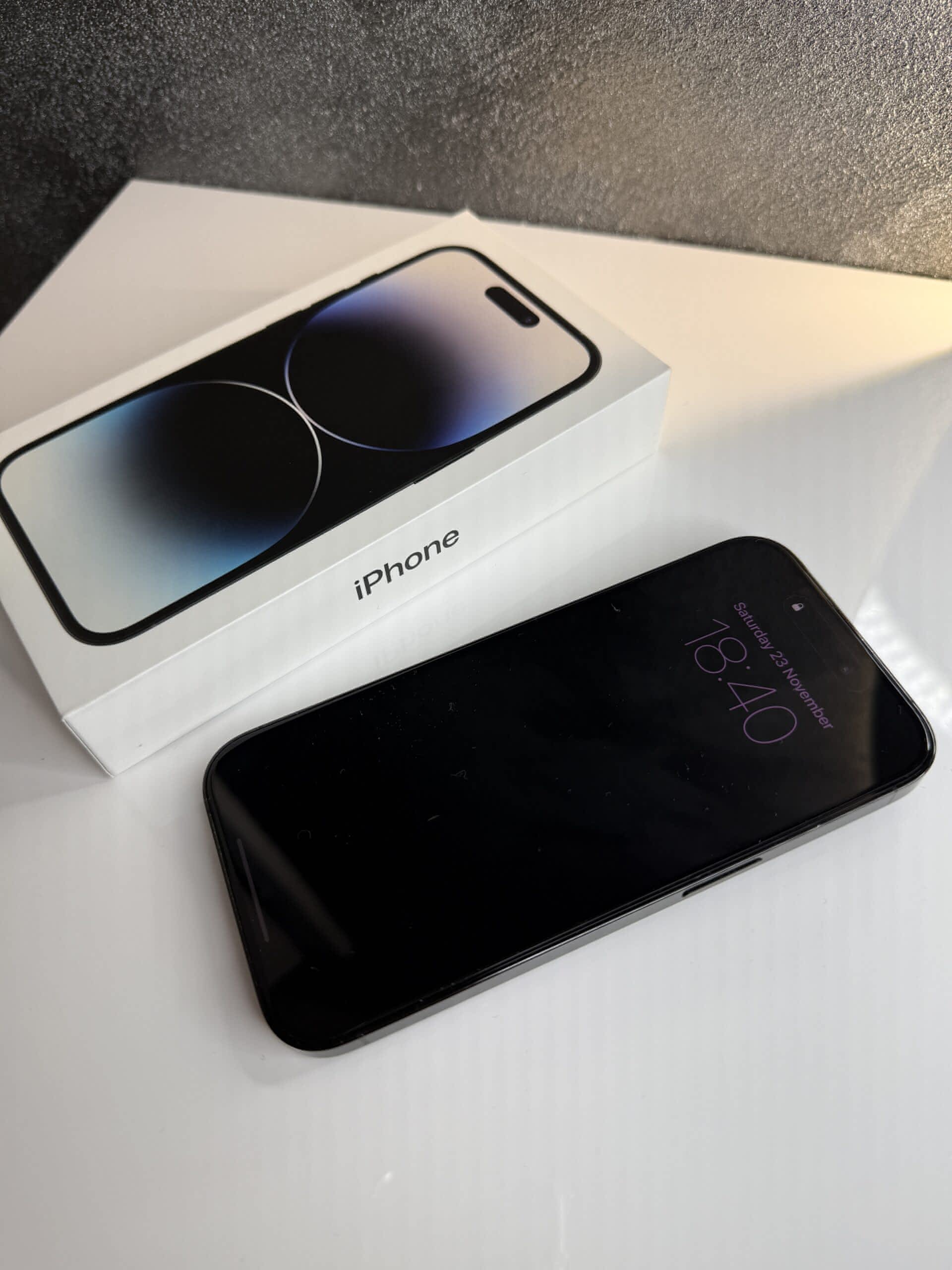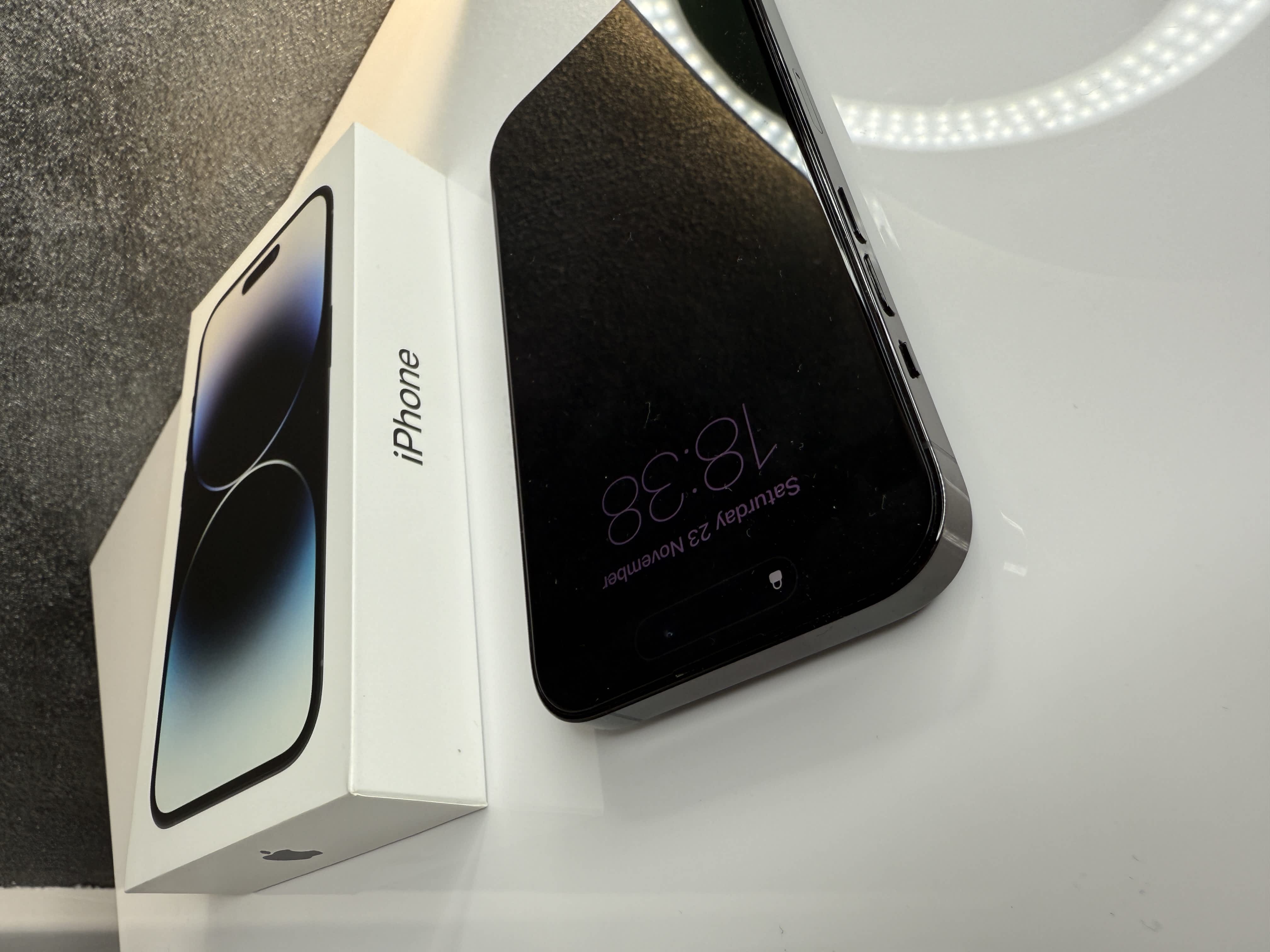Prodám iPhone 14 Pro 128 GB, černá barva. Od prvního dne nošen v obalu s ochranným sklem. Zakoupen u T-Mobile, záruka do 5.1.2025.