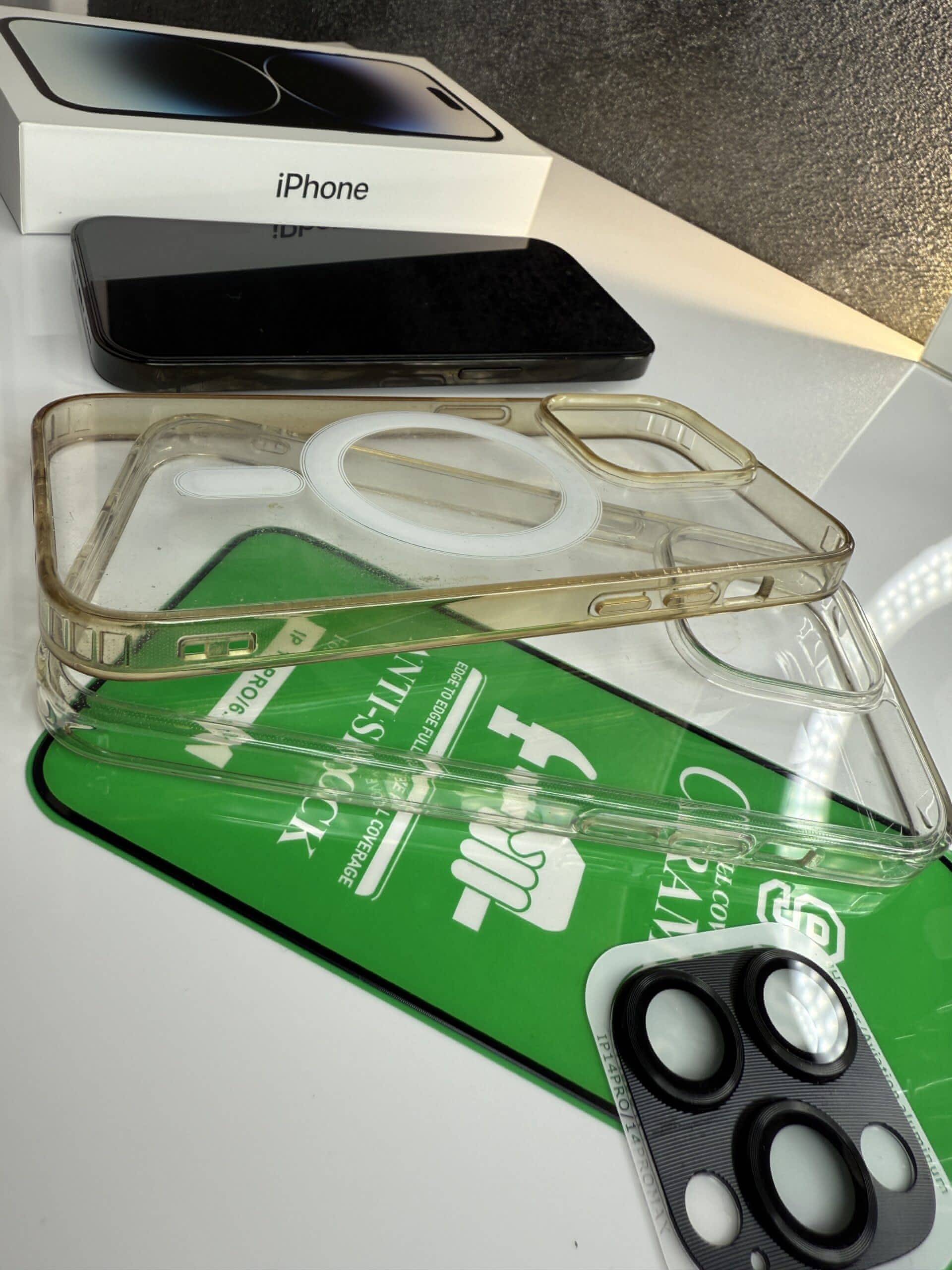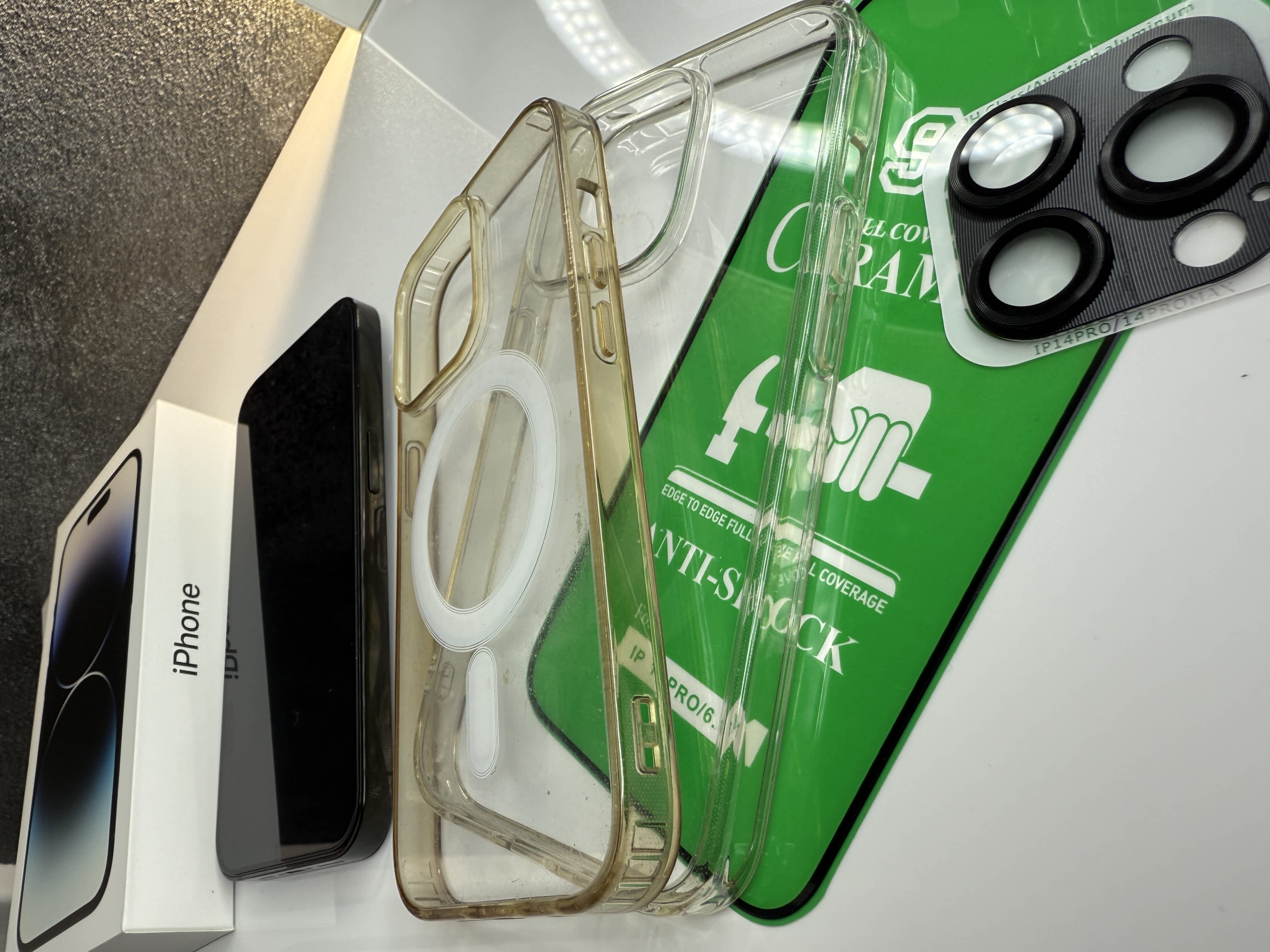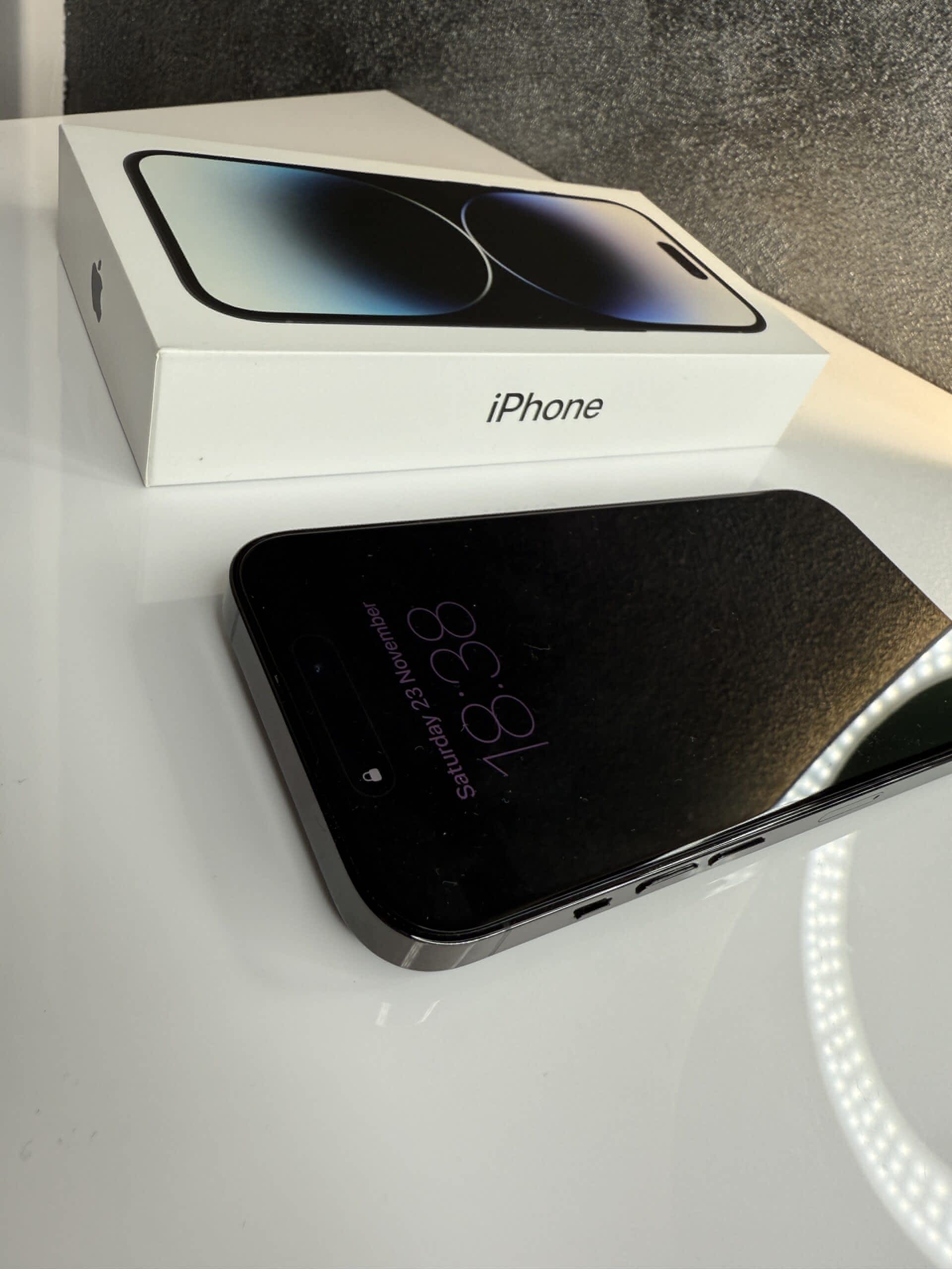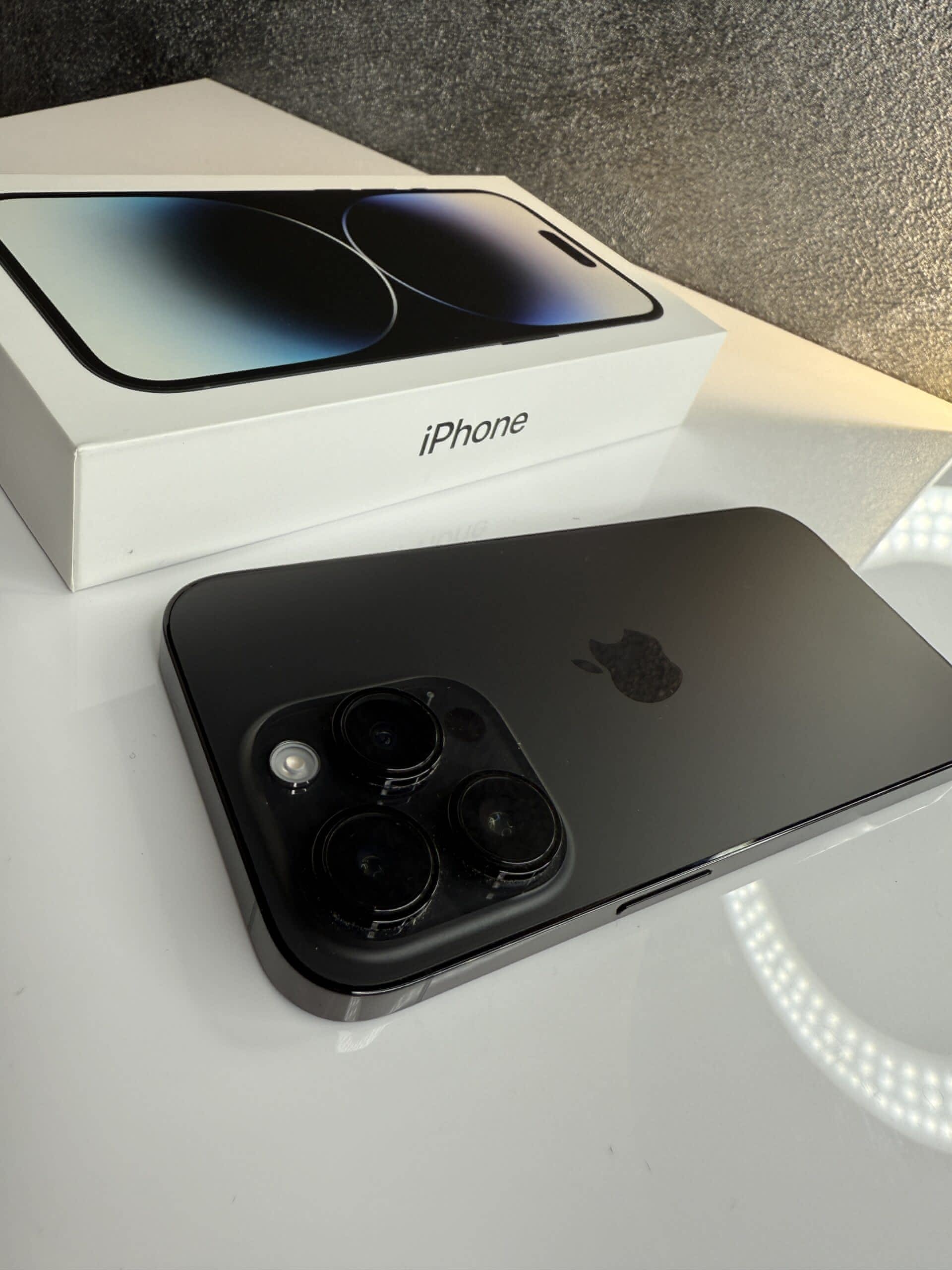 Prodám iPhone 14 Pro 128 GB, černá barva. Od prvního dne nošen v obalu s ochranným sklem. Zakoupen u T-Mobile, záruka do 5.1.2025.