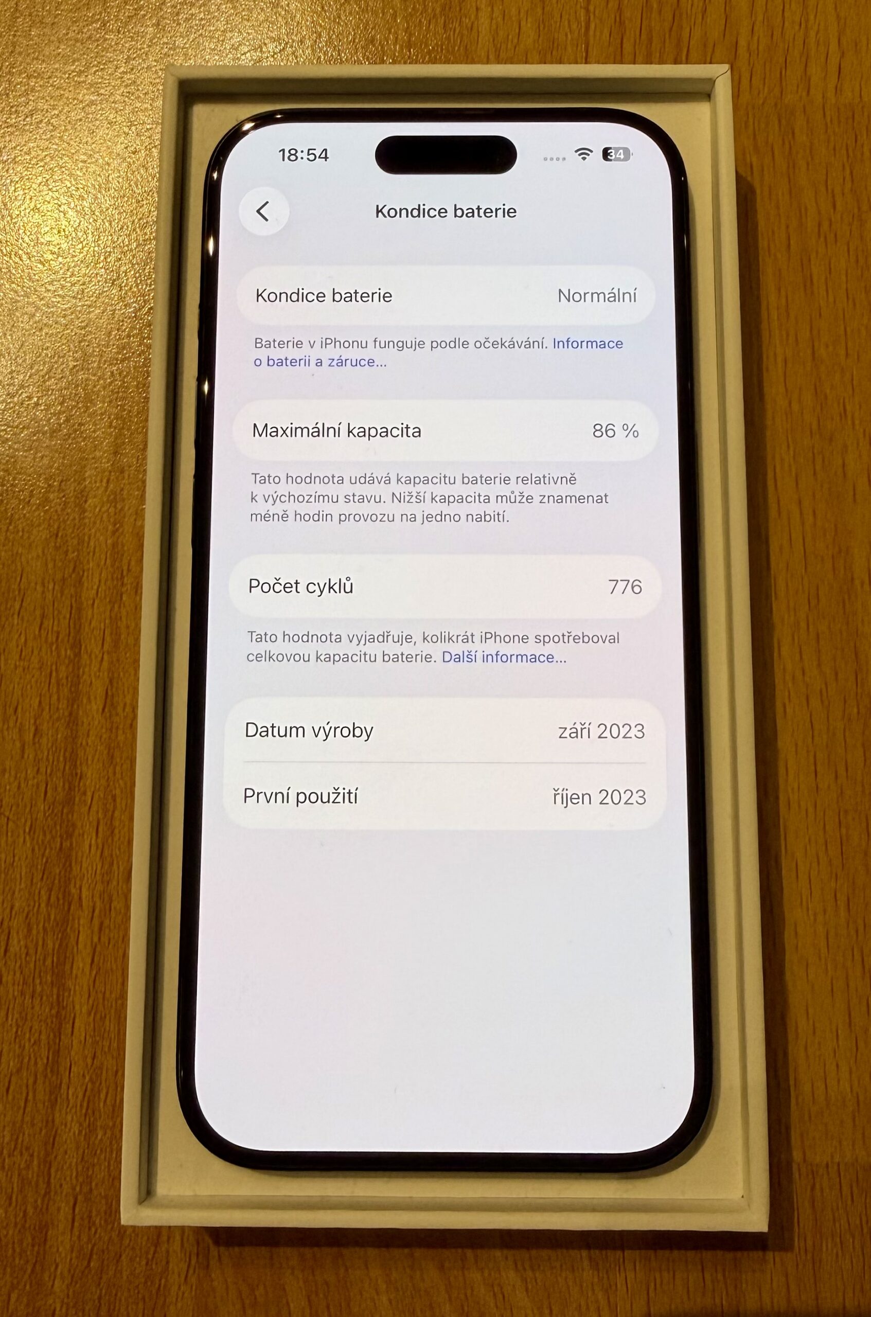 Kondice baterie: 86 %.