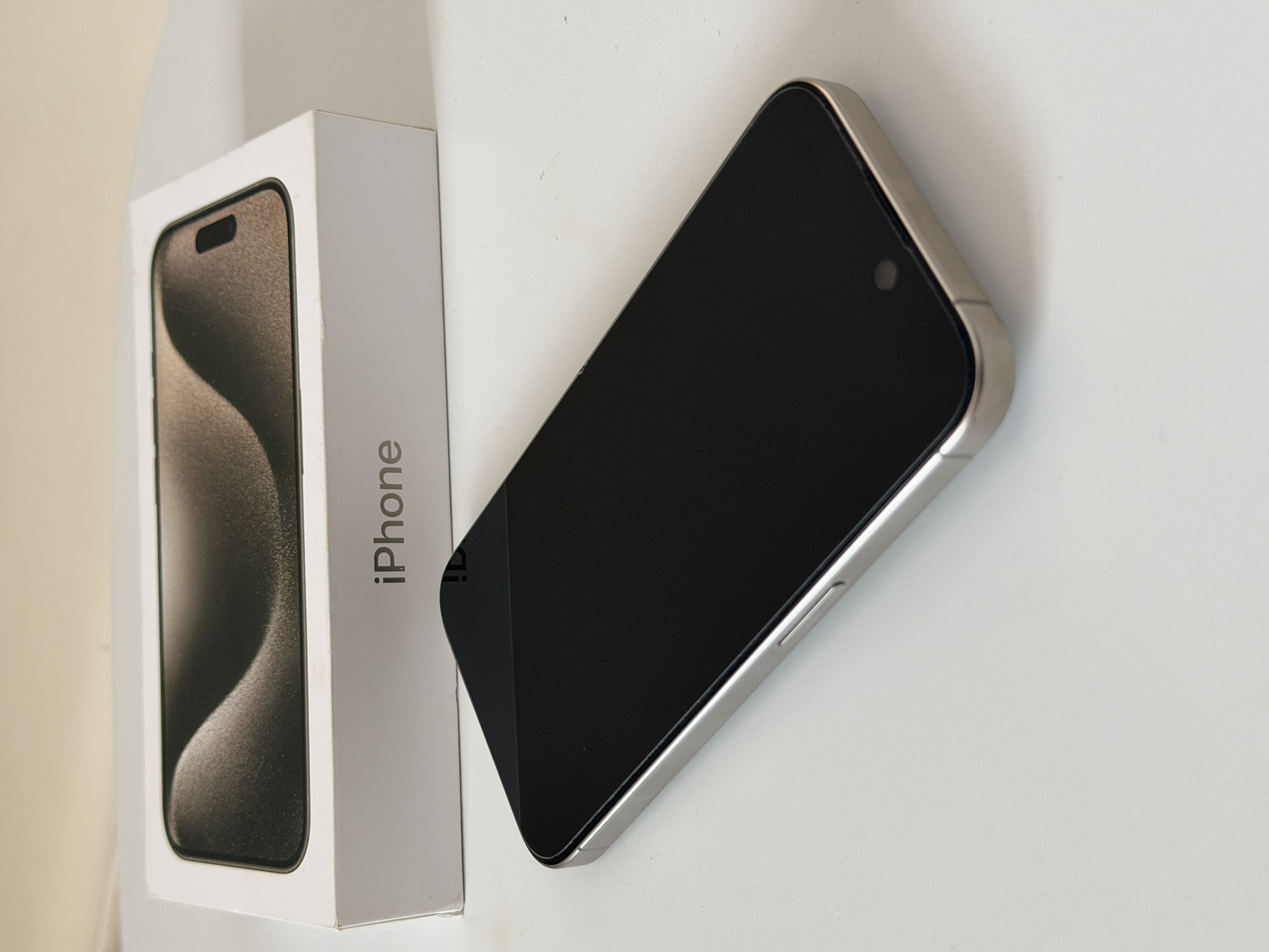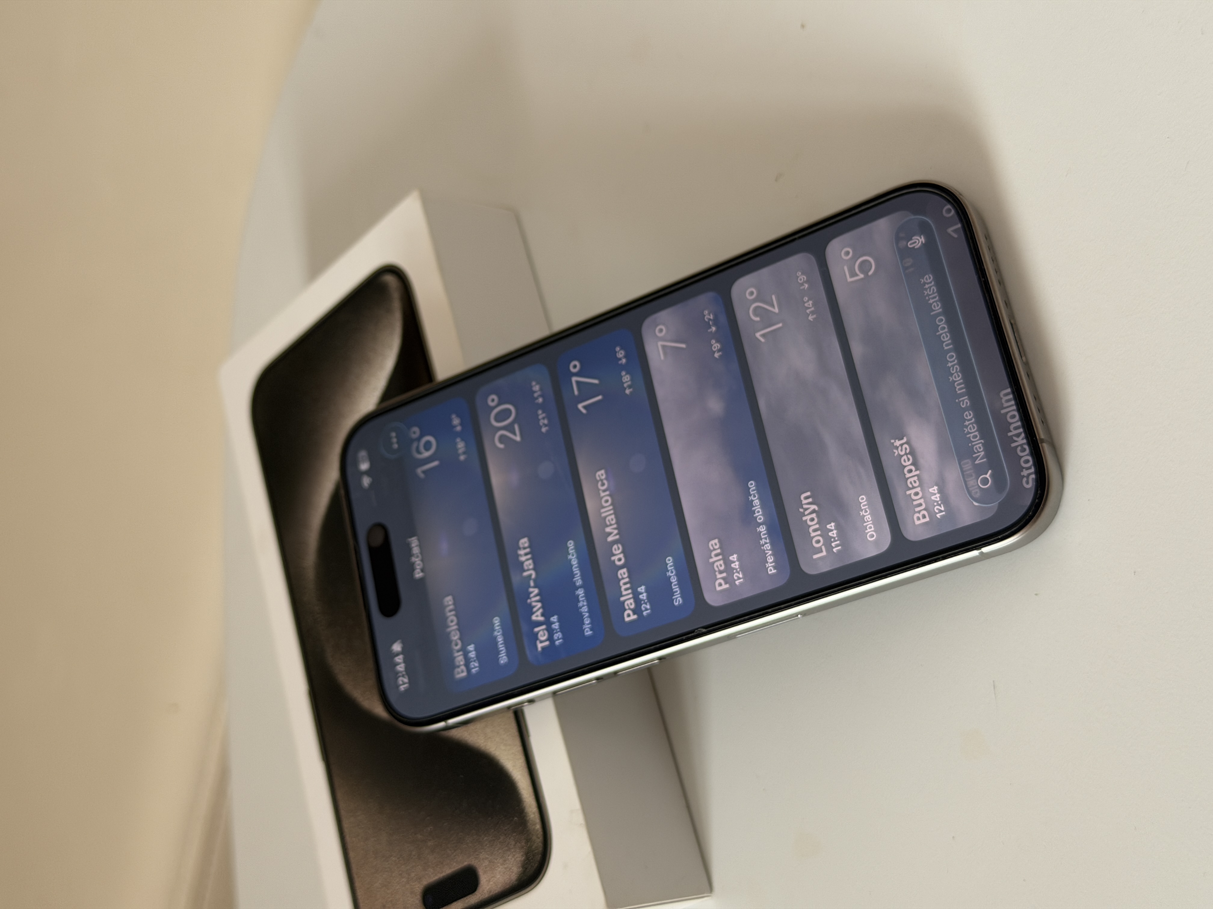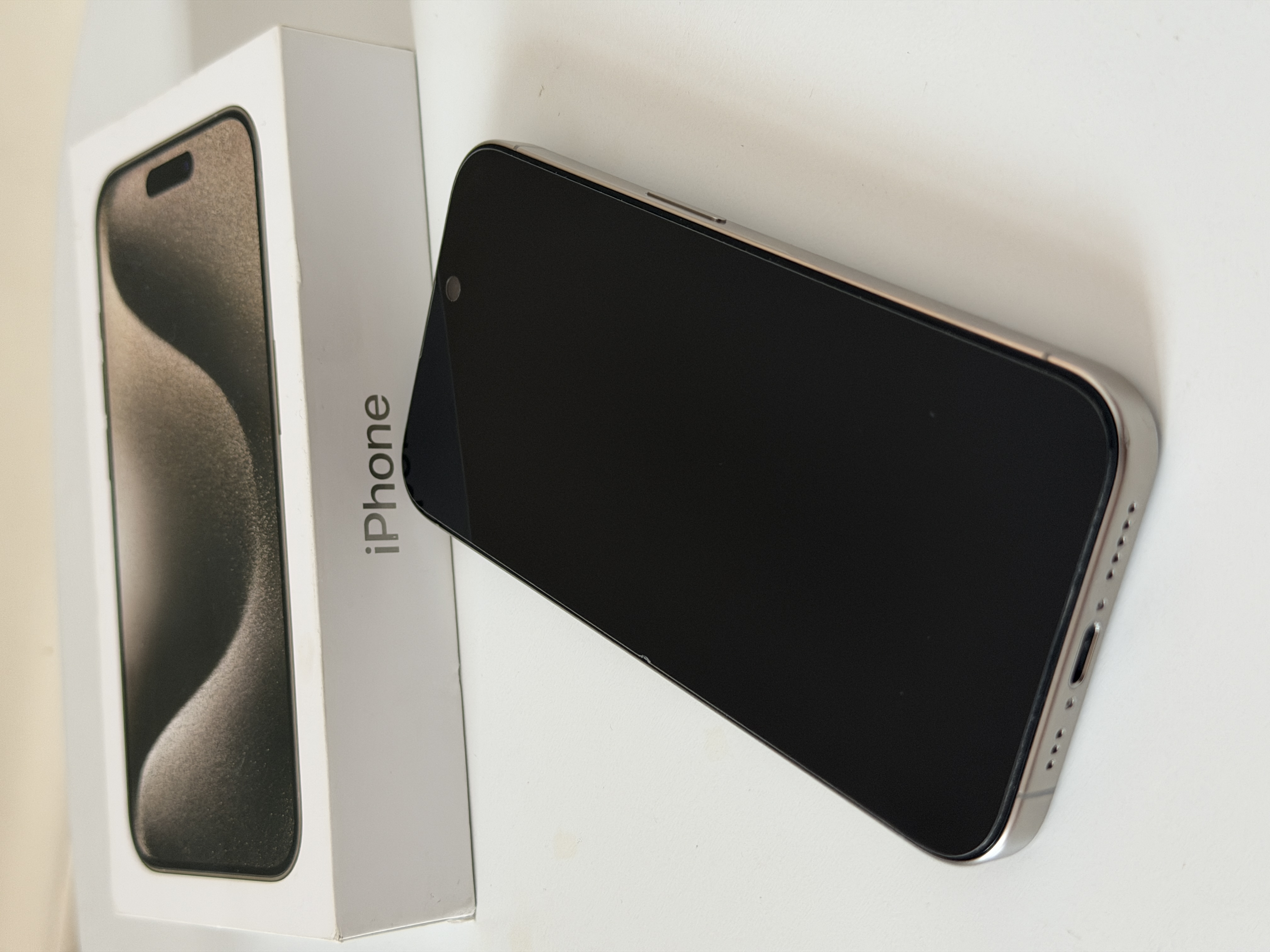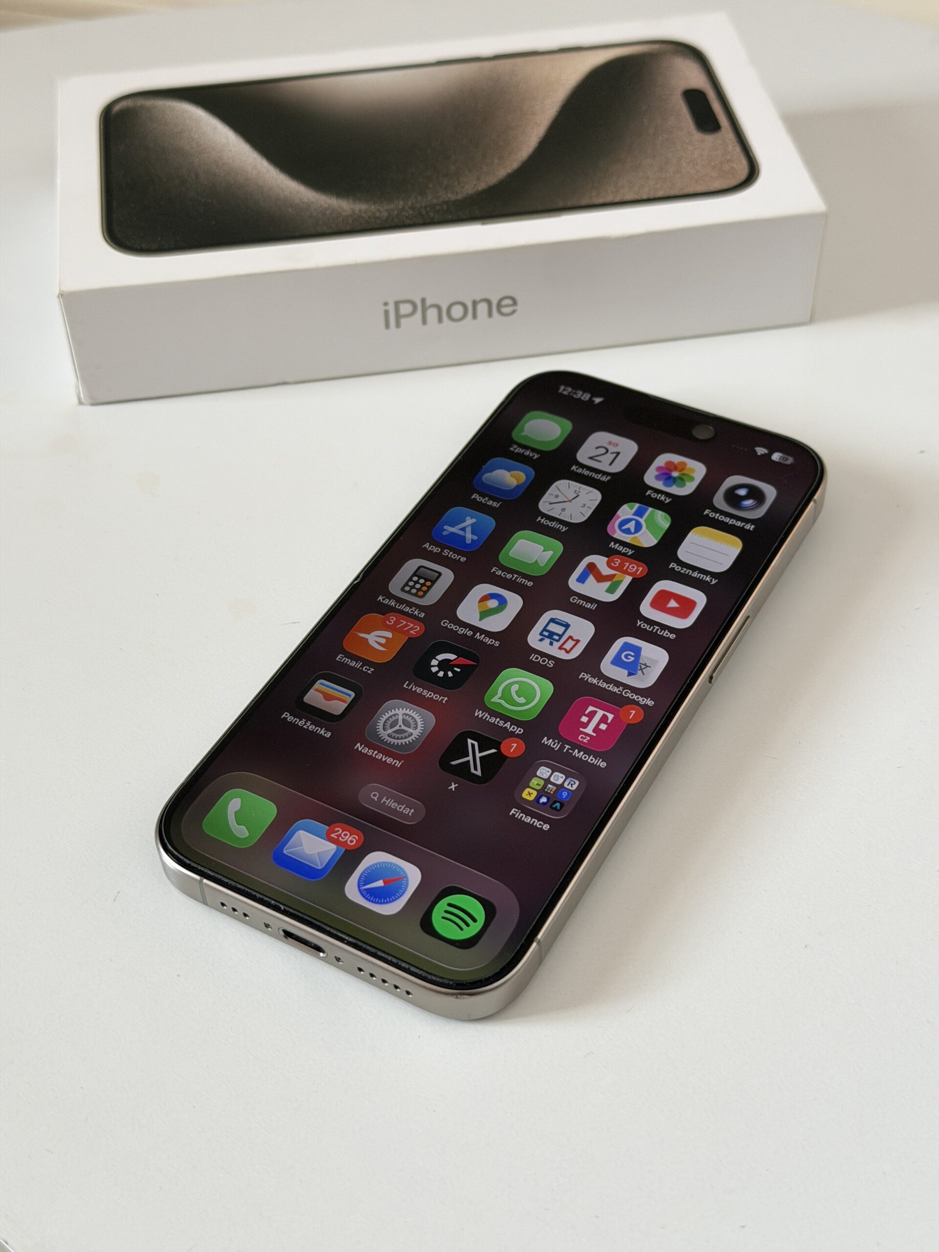 Plně funkční iPhone 15 PRO v barvě přírodní titan s kapacitou 256 GB.