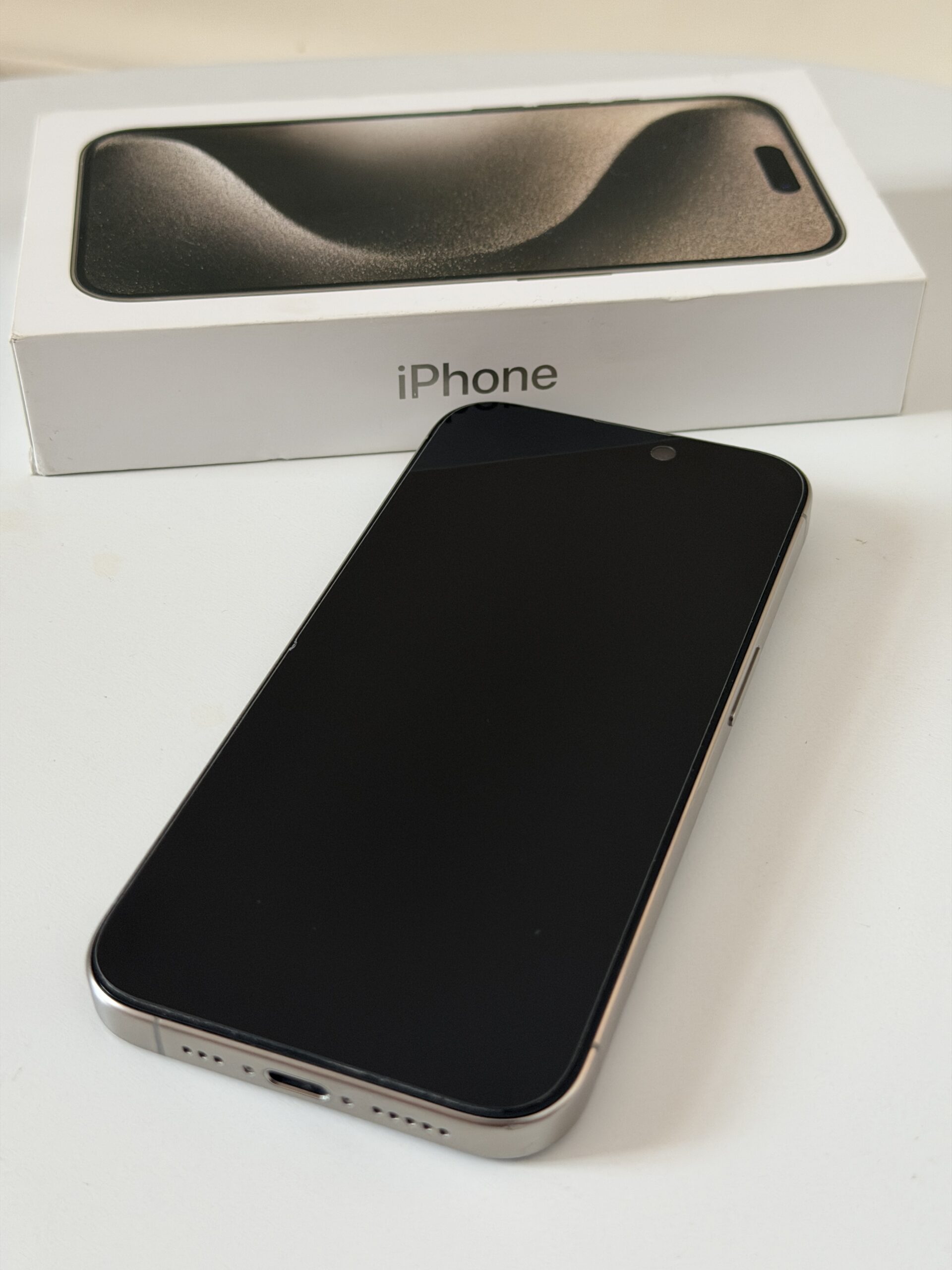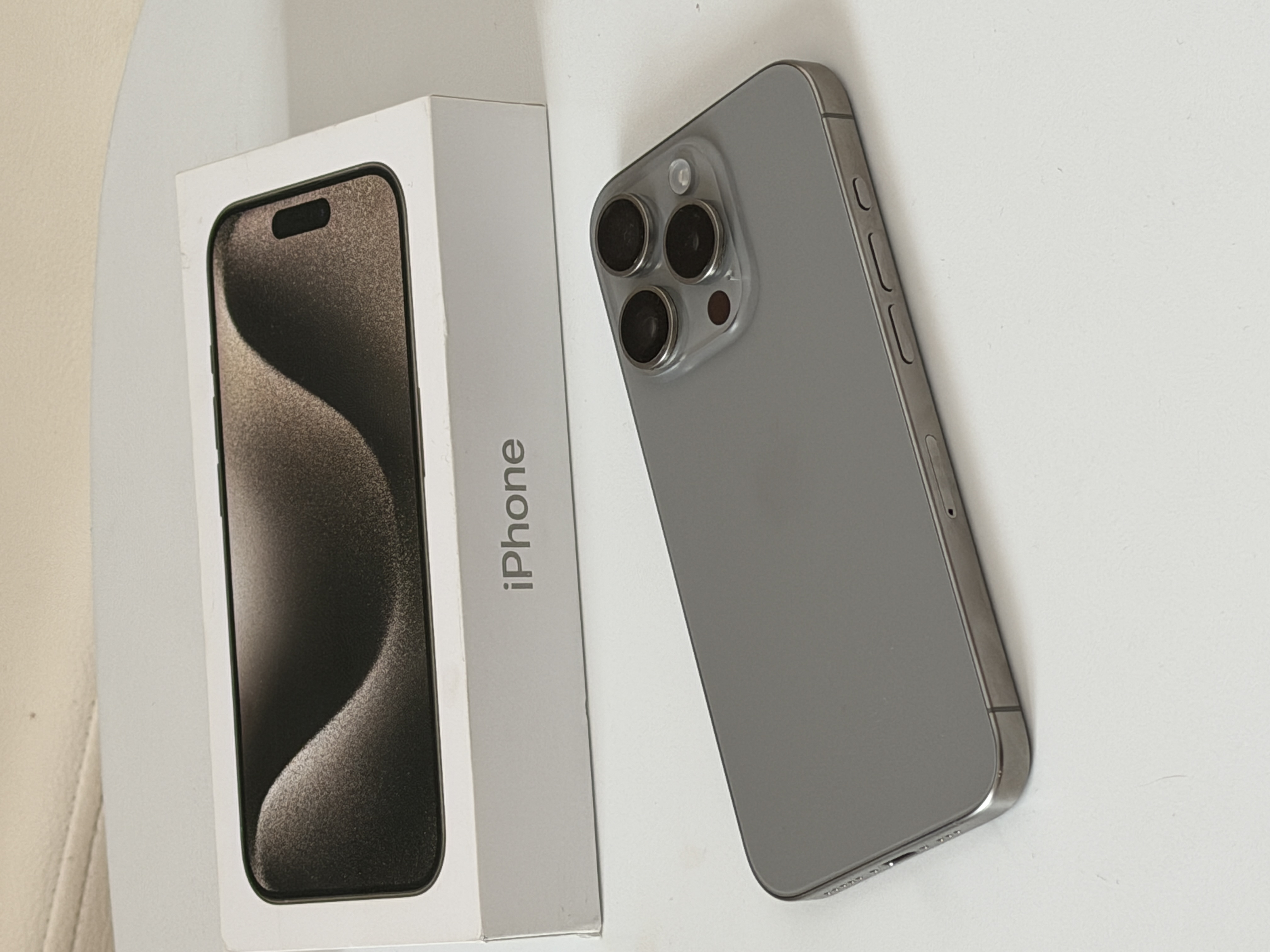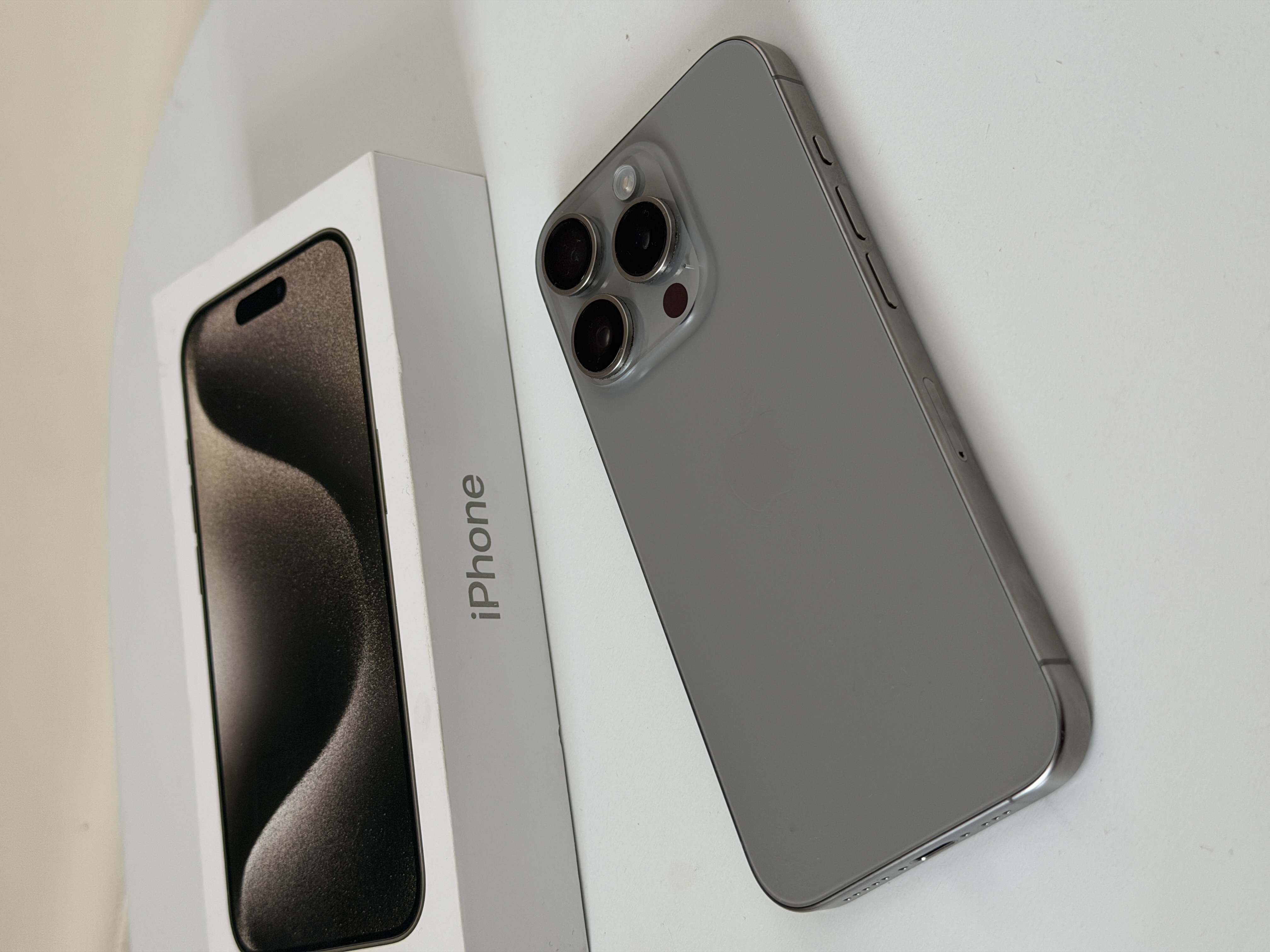 Plně funkční iPhone 15 PRO v barvě přírodní titan s kapacitou 256 GB.