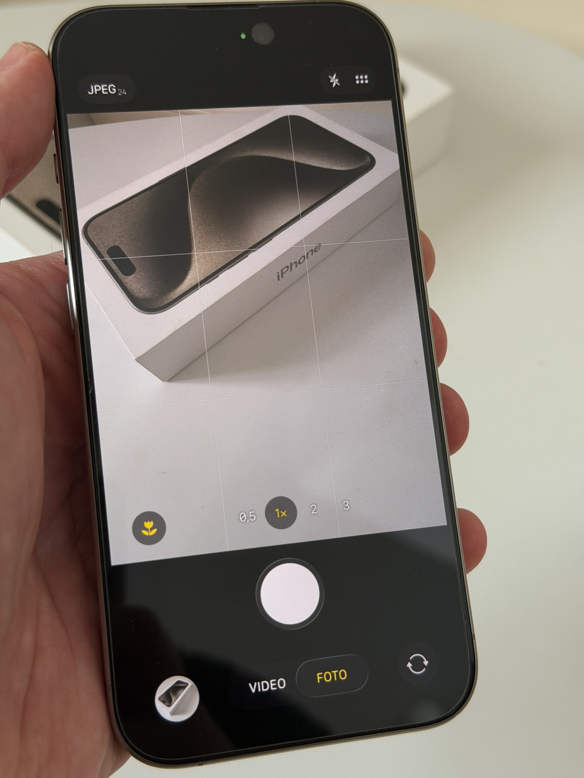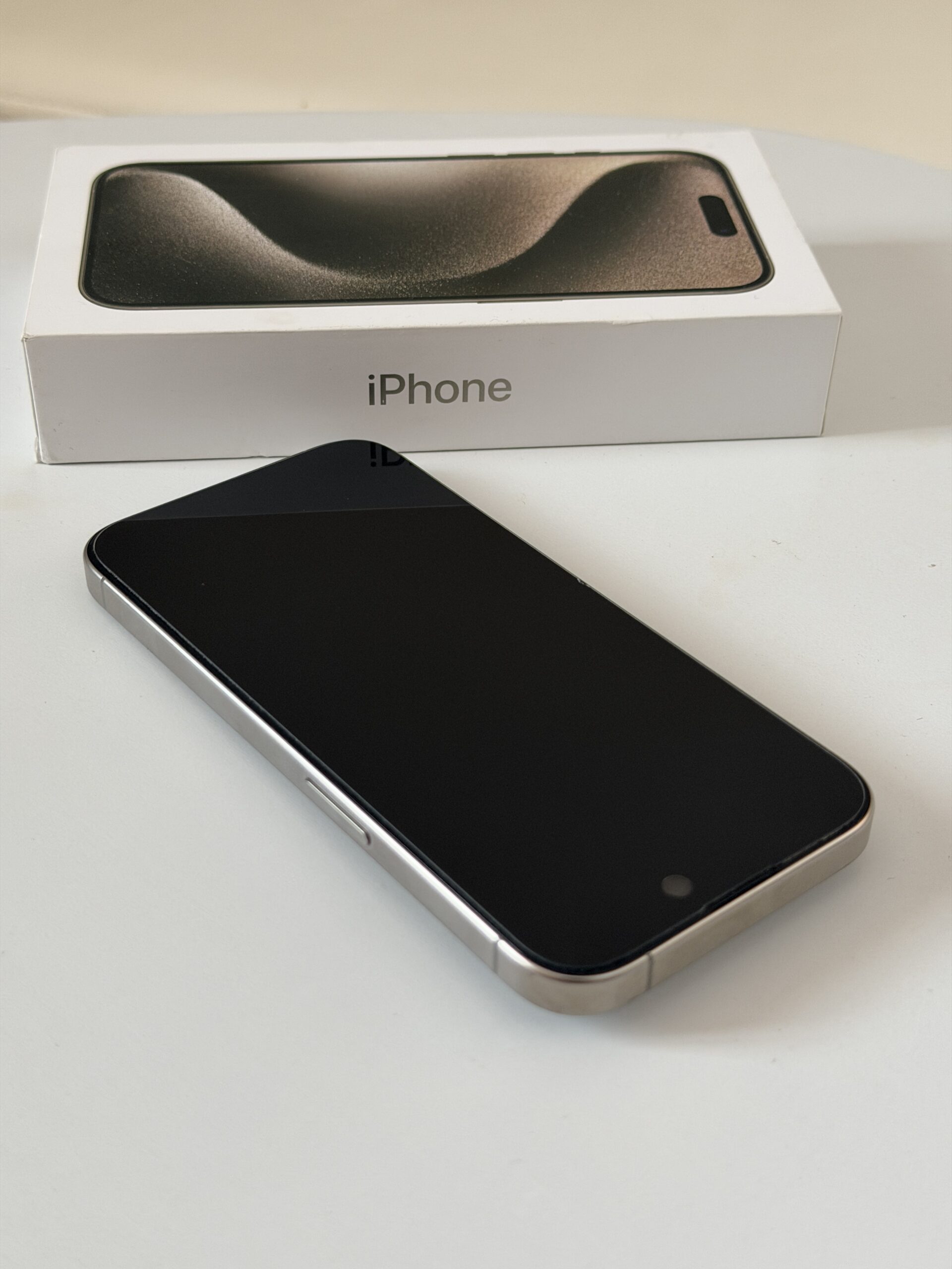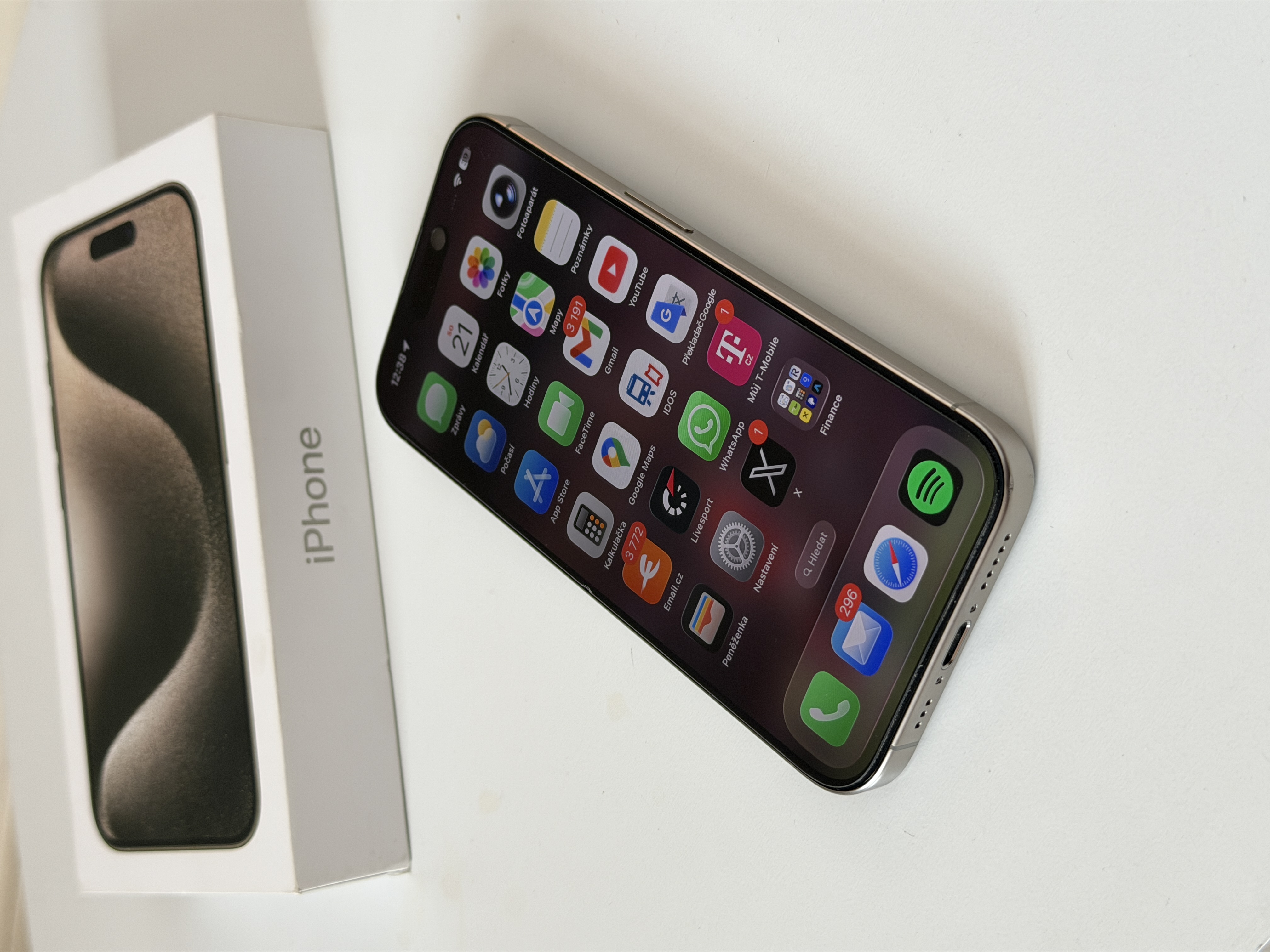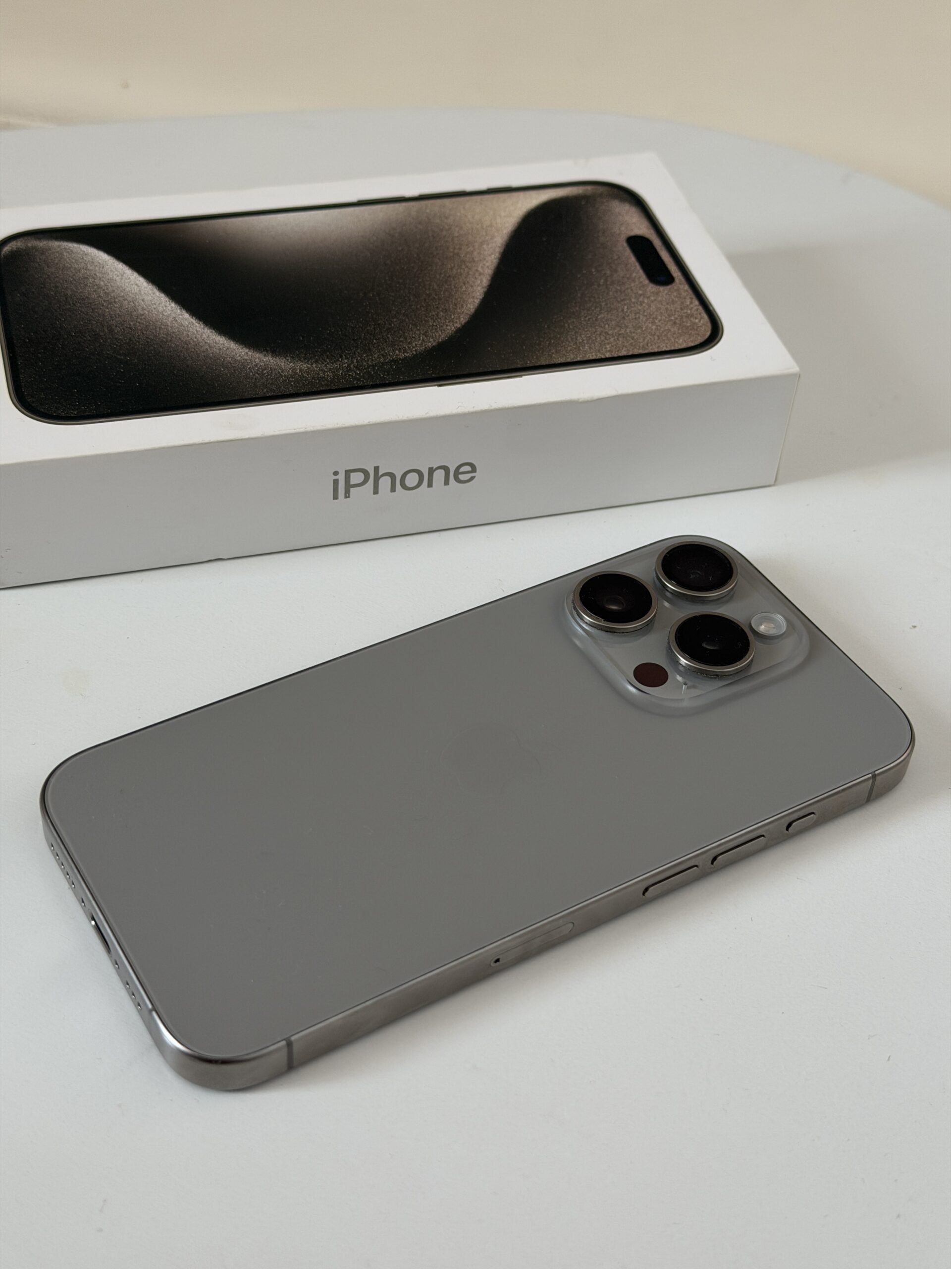 Plně funkční iPhone 15 PRO v barvě přírodní titan s kapacitou 256 GB.