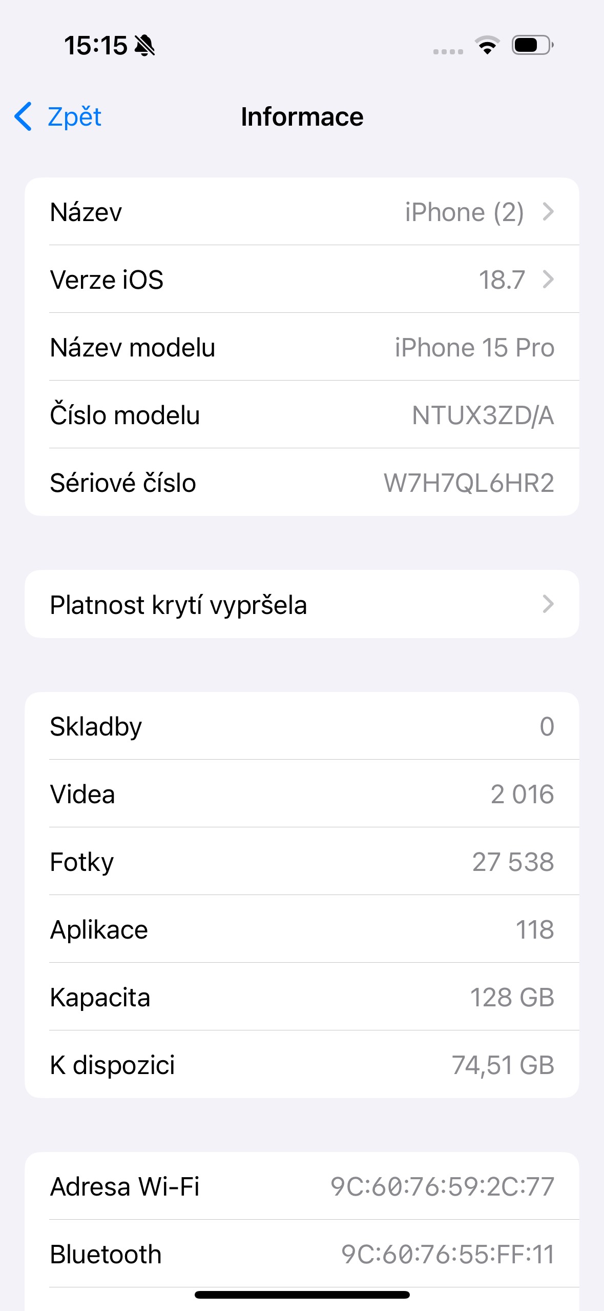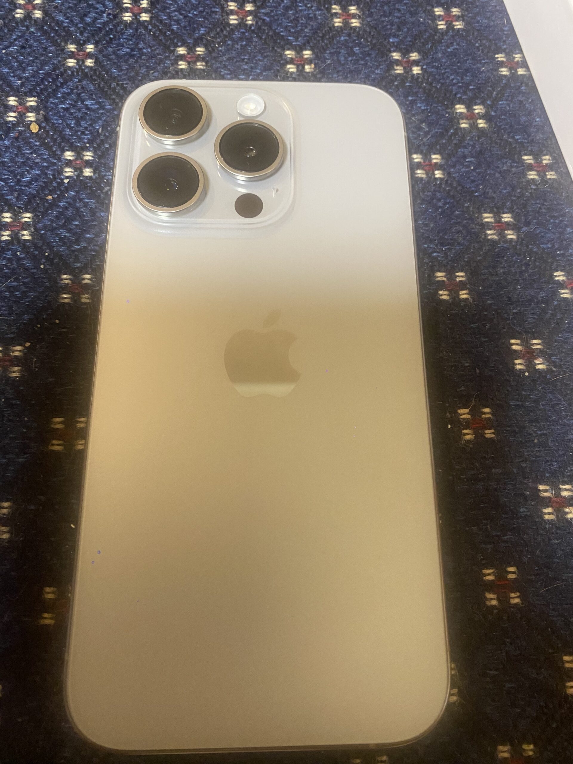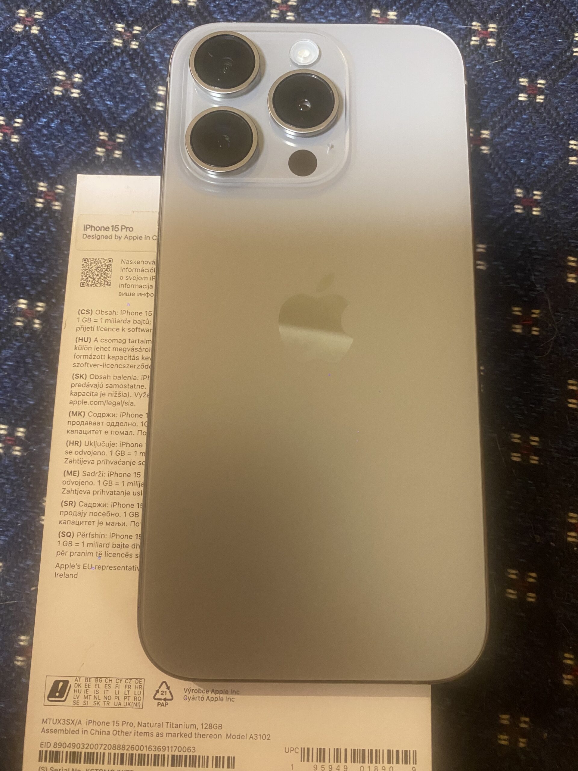 Nabízím k prodeji tento nádherný plně funkční iPhone 15 Pro kapacity úložiště 128 GB krásné přírodně titanové barevné varianty. iPhone byl dodán z reklamace – takže nový, s KONDICÍ BATERIE 100% – jen zapnut a vyzkoušen – momentálně 1 cykl na baterce.