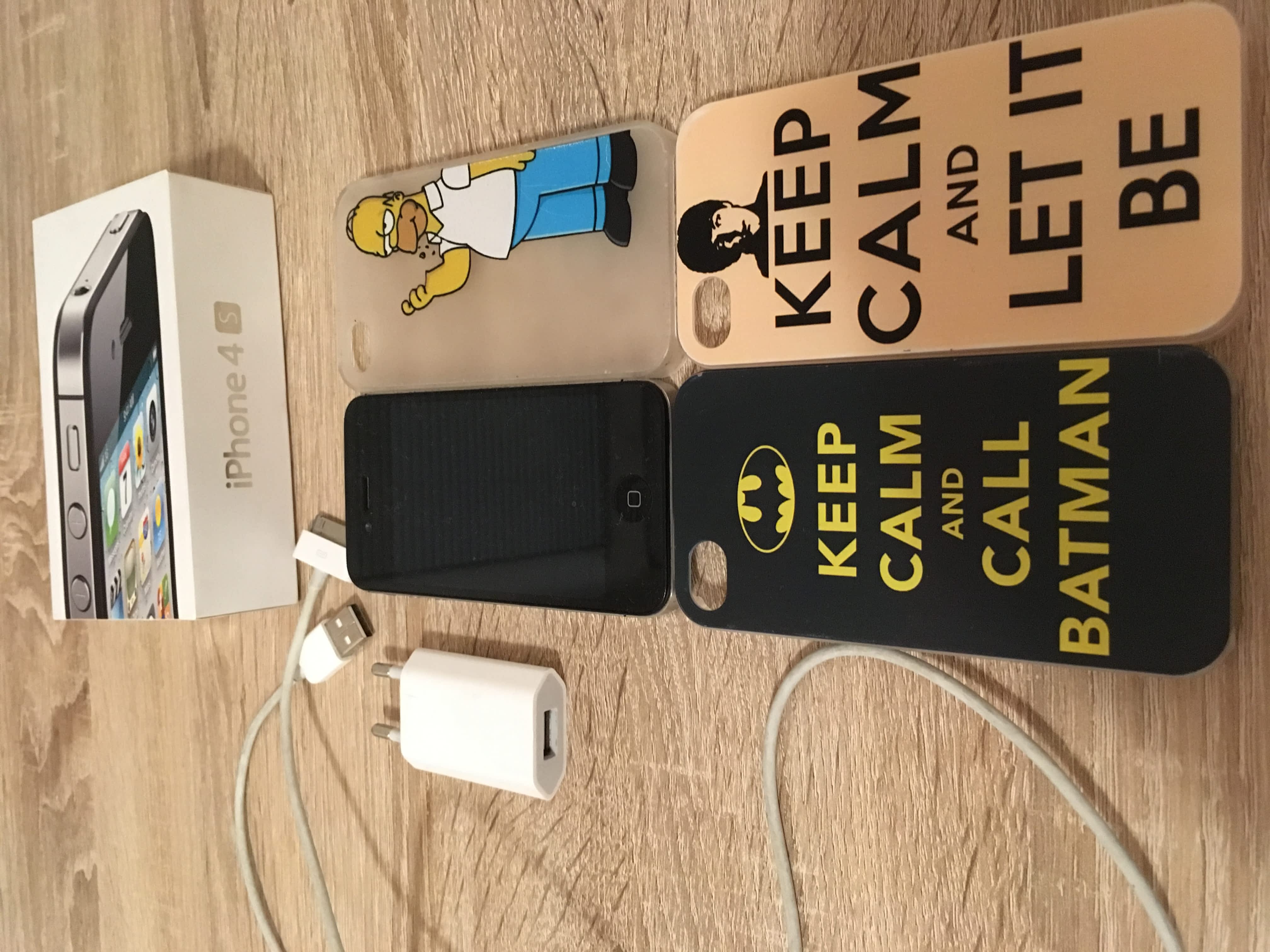Prodám iPhone 4S 16 GB černý ve výborném stavu. K mobilu je plně funkční originální adaptér a kabel, krabice a sada 3 krytů (viz foto). Dále zdarma 4 ochranné fólie na přední a 4 fólie na zadní část telefonu. Osobní předání v Plzni.