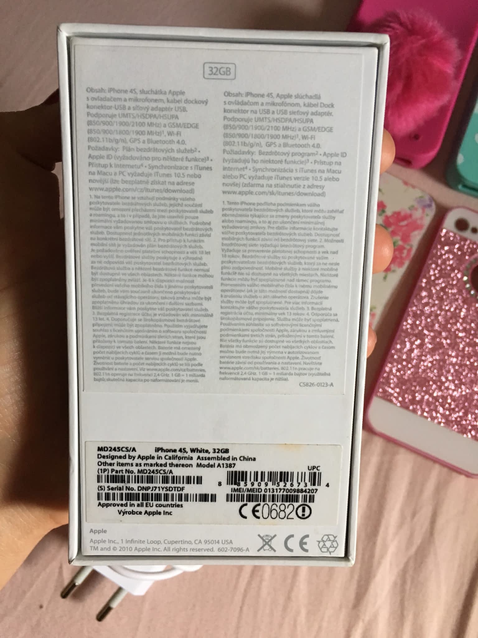Prodám iPhone 4S, 32gb. Skoro jako nový, neměla jsem s ním žádné problémy. V CENĚ vše, co je na fotce.
