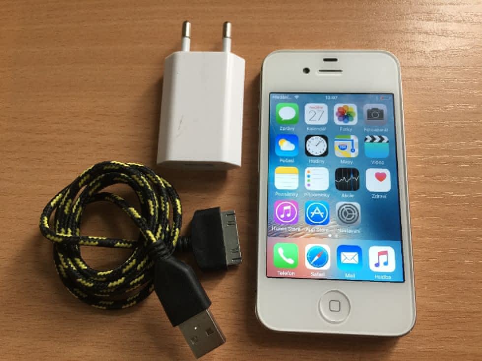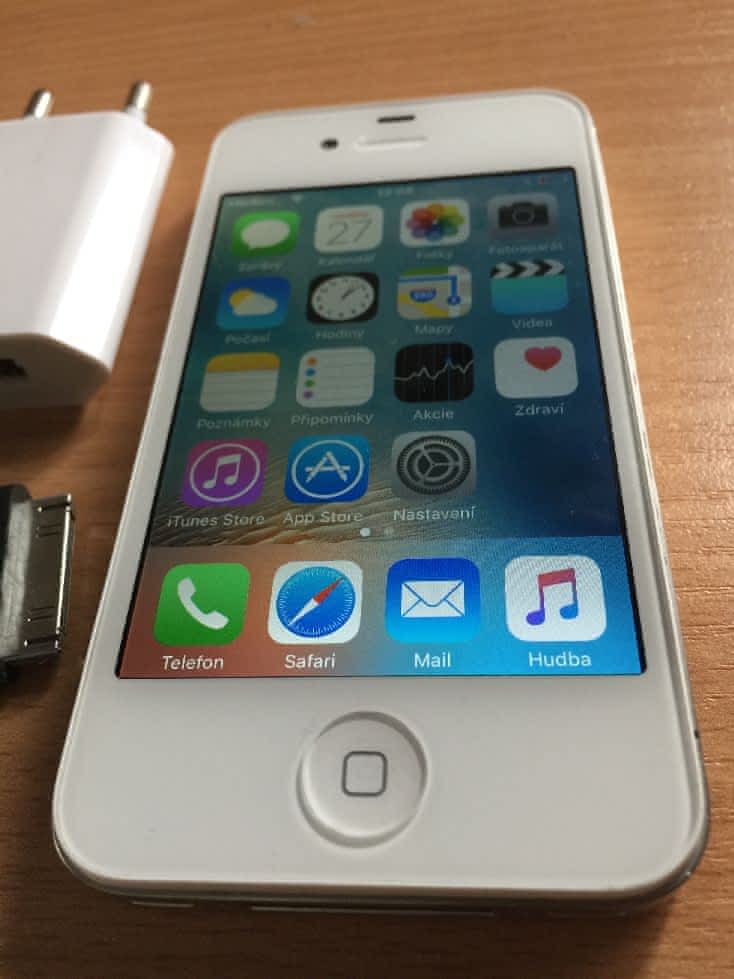 Prodám originál Apple – iPhone 4S, 32GB – bílý, s datovým kabelem, síťovou nabíječkou, jehlou na vytažení Sim karty …IPhone je zcela funkční, , bez velkých kosmetických vad, (jen zezadu v úrovni fotoaparátu je malá prasklinka – viz foto.) Na foťák to nemá pražádný vliv. Není blokovaný na žádného operátora, odhlášený z iCloudu – připravený pro nového majitele. Ovládací tlačítka jsou v naprostém pořádku, i baterie má velmi slušnou výdrž.