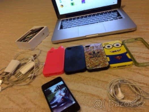 Prodám iPhone 4s, 8GB, černý, ve velmi pěkném stavu, v originálním balení, s nabíječkou i originálními sluchátky, k tomu přidám další neoriginální nabíječku a 5 krytů.