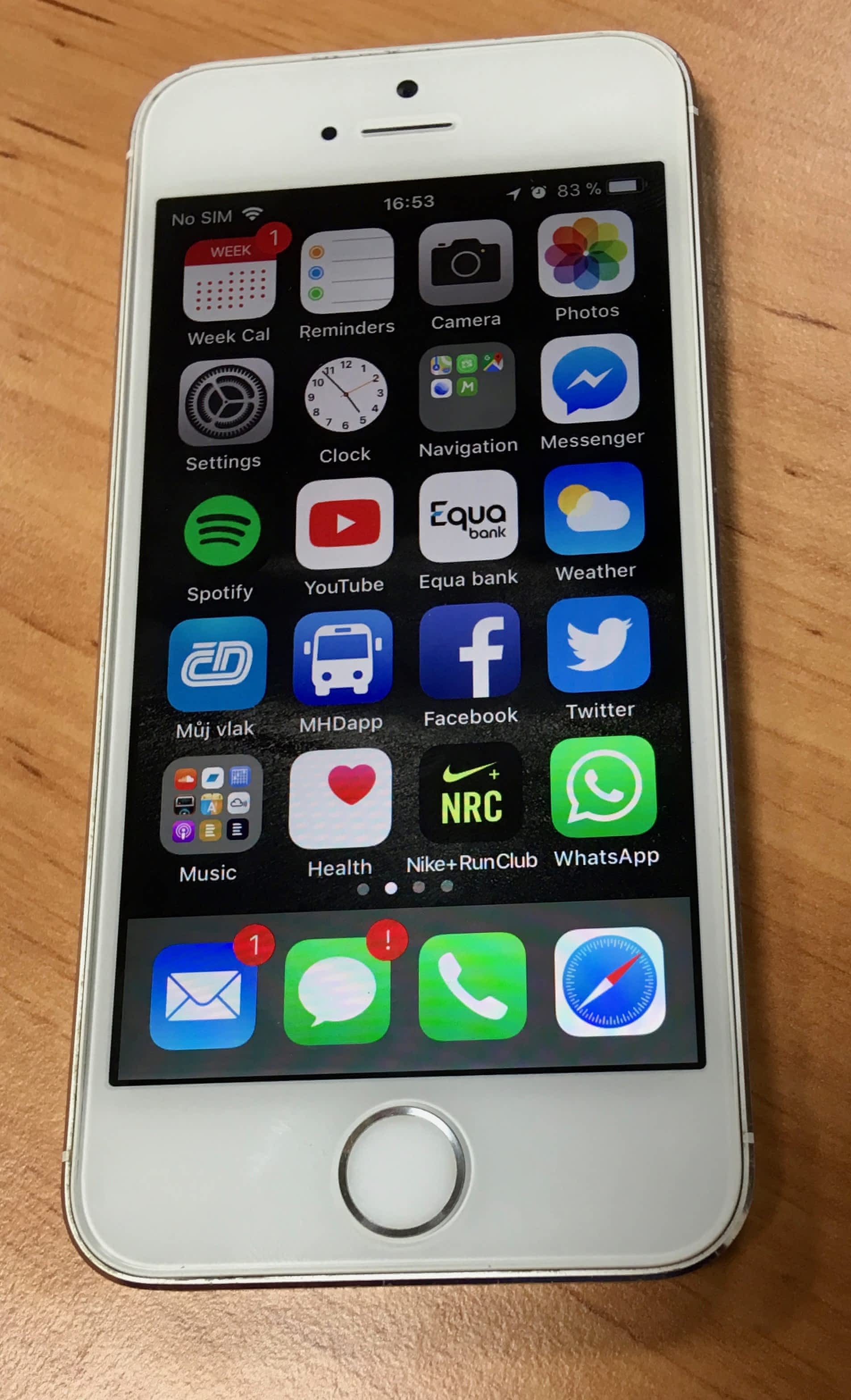 Prodám používaný iPhone 5s silver. 32GB, plně funkční, bez závad. Možno vyzkoušet. Po pádu oděrka na hraně – viz foto, jinak v pořádku.