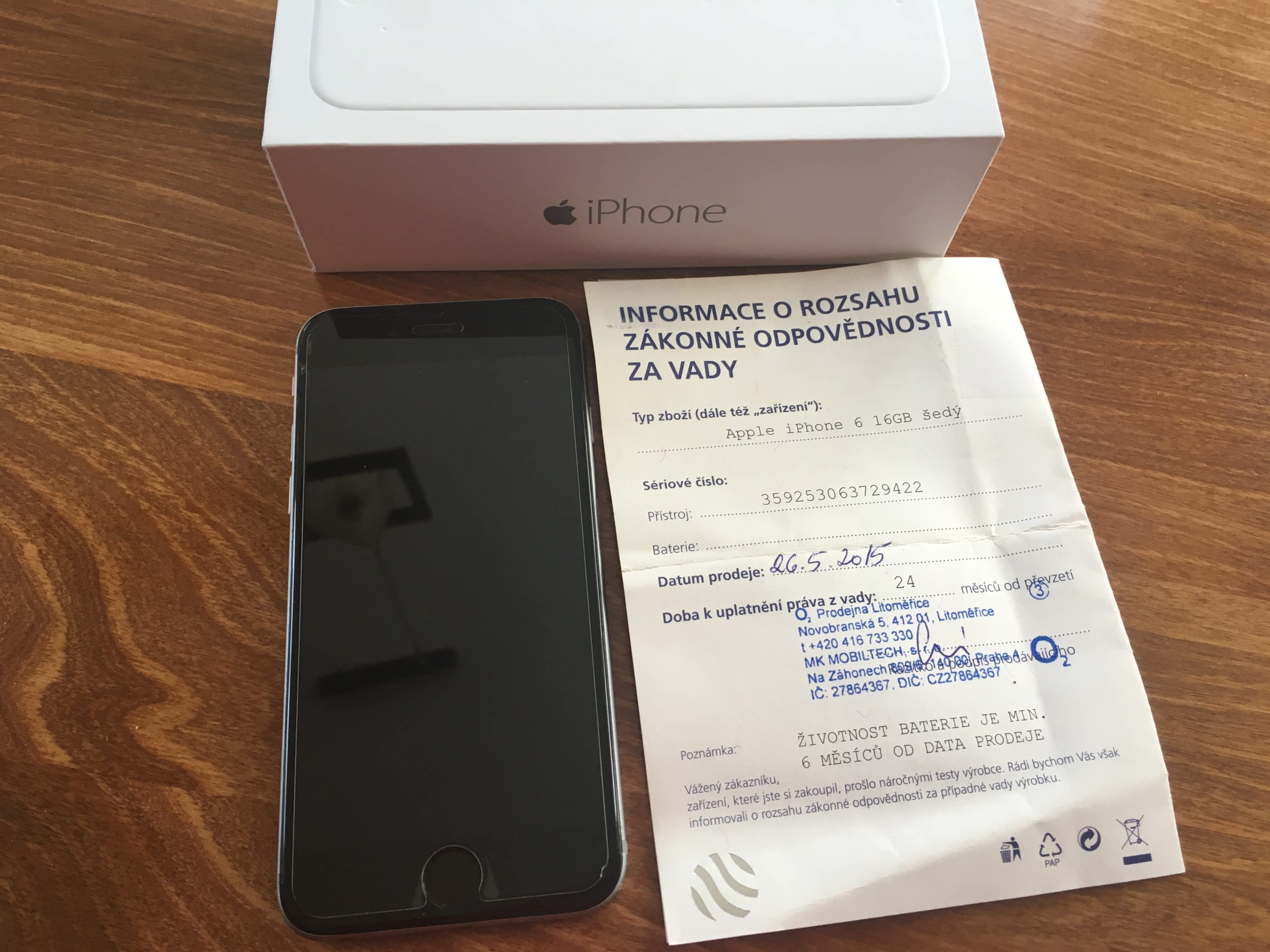 Prodam Apple iPhone 6 16GB space grey, koupen u O2, zaruka do 25. 5. 2017, plne funkcni, znamky pouzivani po obvodu, lehce tukly displej.