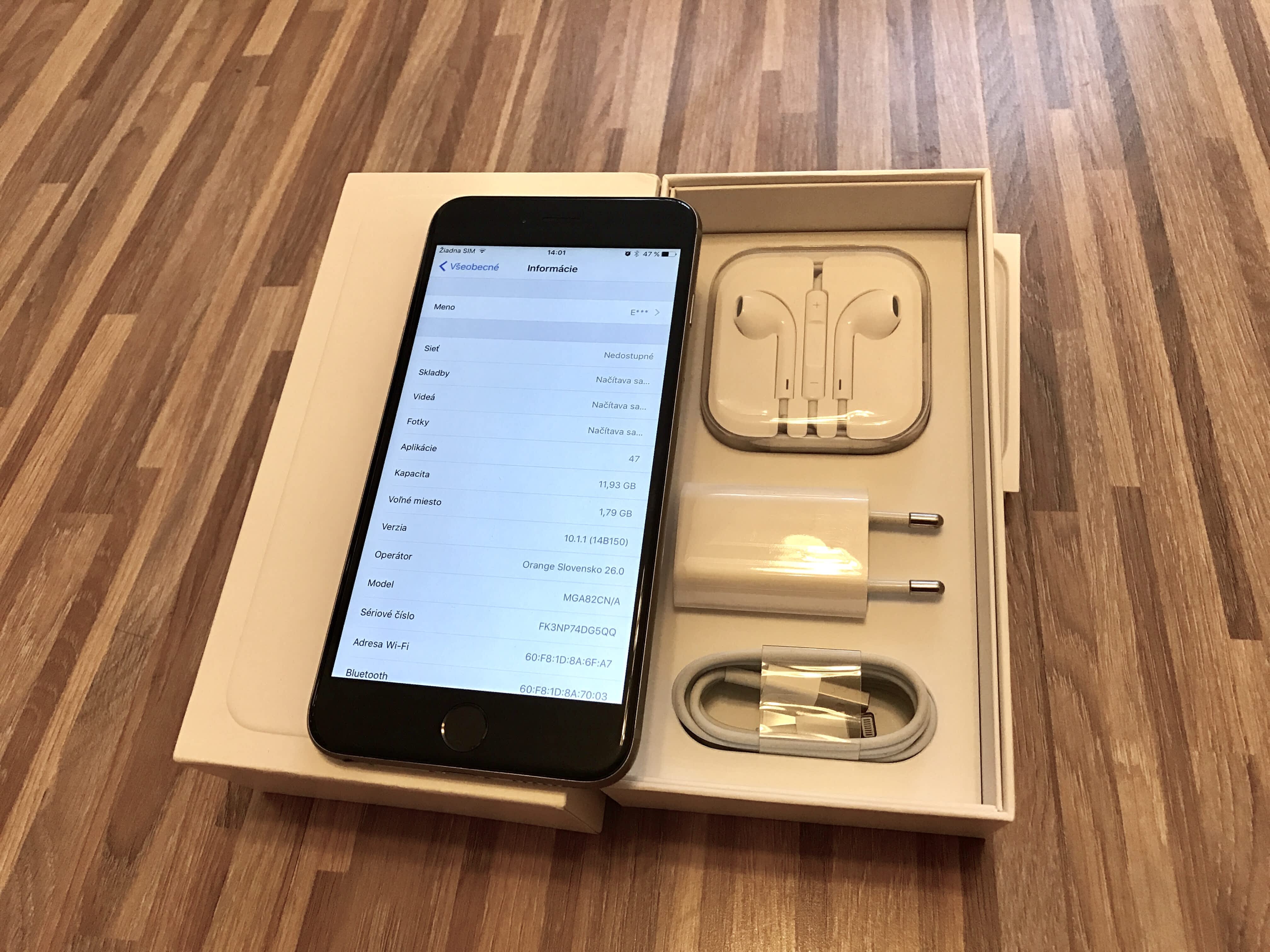 Predám komplet Apple iPhone 6+ Plus. Telefón je bez jediného škrabanca;) nabíjačka, kábel a slúchatka ešte nerozbalené/nepoužité ;)) K telefónu dávam aj originál silikónový kryt Apple. Len osobný odber, žiadne výmeny. Inzerát je aktuálny do vymazania.