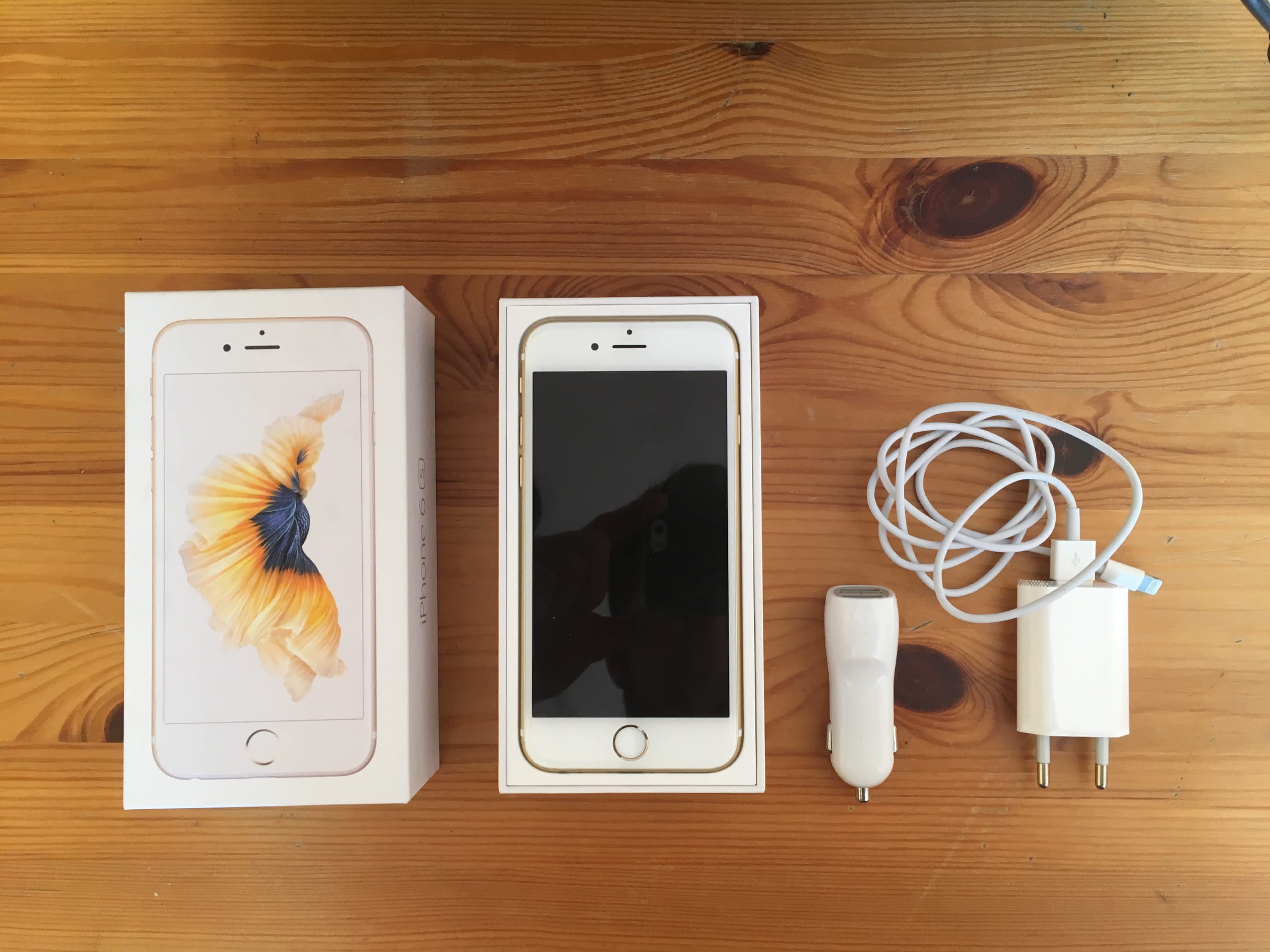 iPhone 6s 128gb GOLD Iphone 6s 128gb GOLD, nošený pouze v koženém pouzdře, nejeví žádné známky opotřebení viz. fotografie. Přidám originální krabičku, sluchátka a rychlonabíječku, která lze používat i v automobilu. Důvod prodeje přechod na novější model.