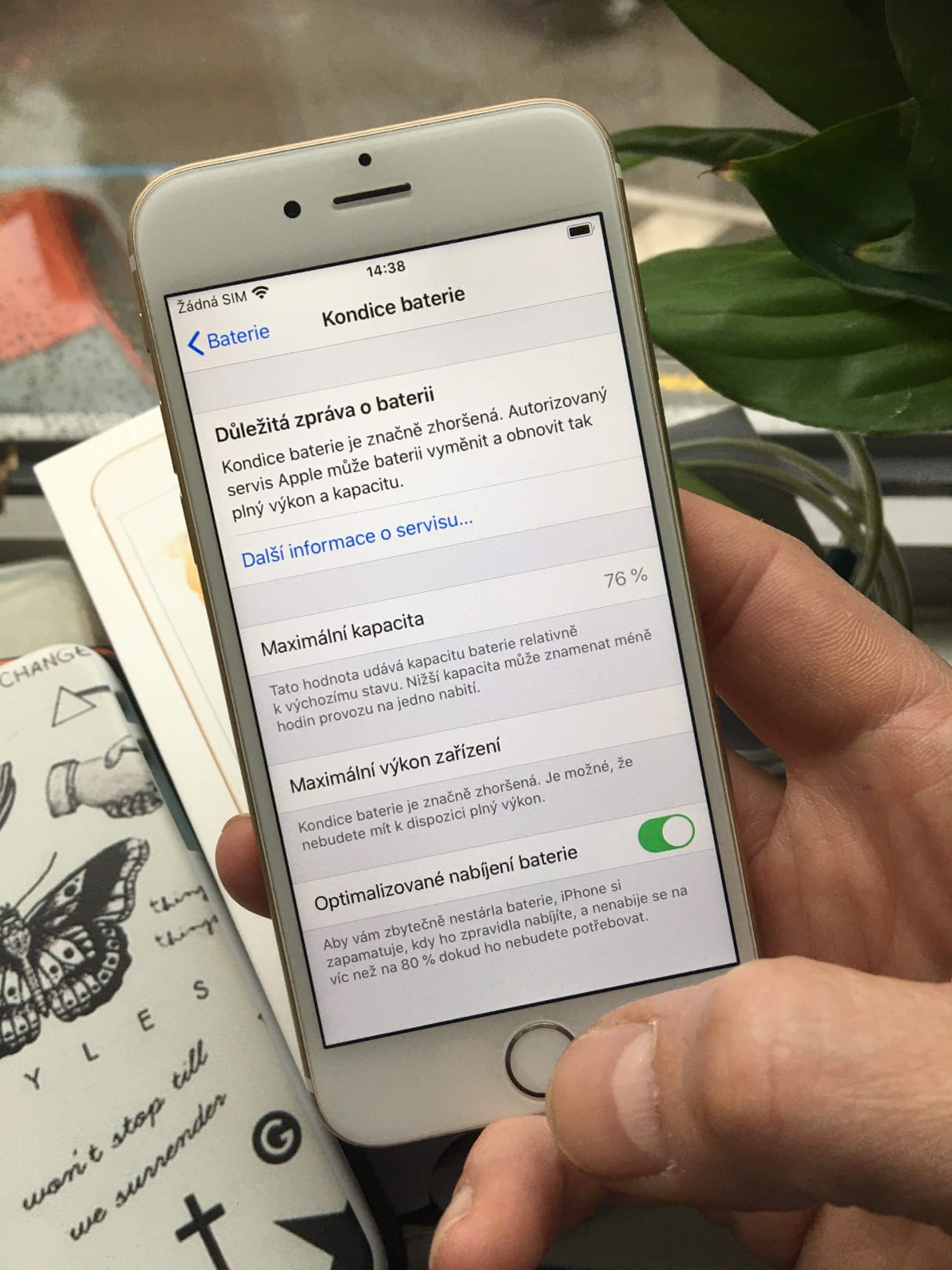 Prodám iPhone 6s 32 GB Gold používaný manželkou 2 roky, běžné drobné oděrky na těle a displeji, funkčně bez problémů, po záruce, stav baterie přes tři čtvrtě kapacity. První majitel, telefon neblokovaný. Bohužel nemam originalní nabíječku ani sluchátka = cena 3 100 korun. S neoriginální nabíječkou se svítícím nabíjecím kabelem 3 300 korun. Přidám původní krabičku a zdarma pár nošených obalů. Pouze osobní předání Praha OC Flora nebo v centru někde poblíž metra. Vyzkoušení na místě samozřejmě možné.