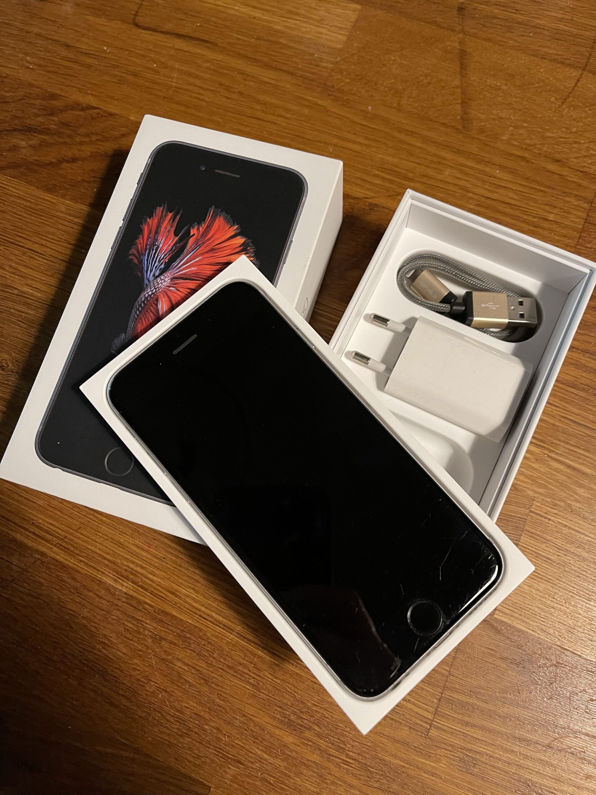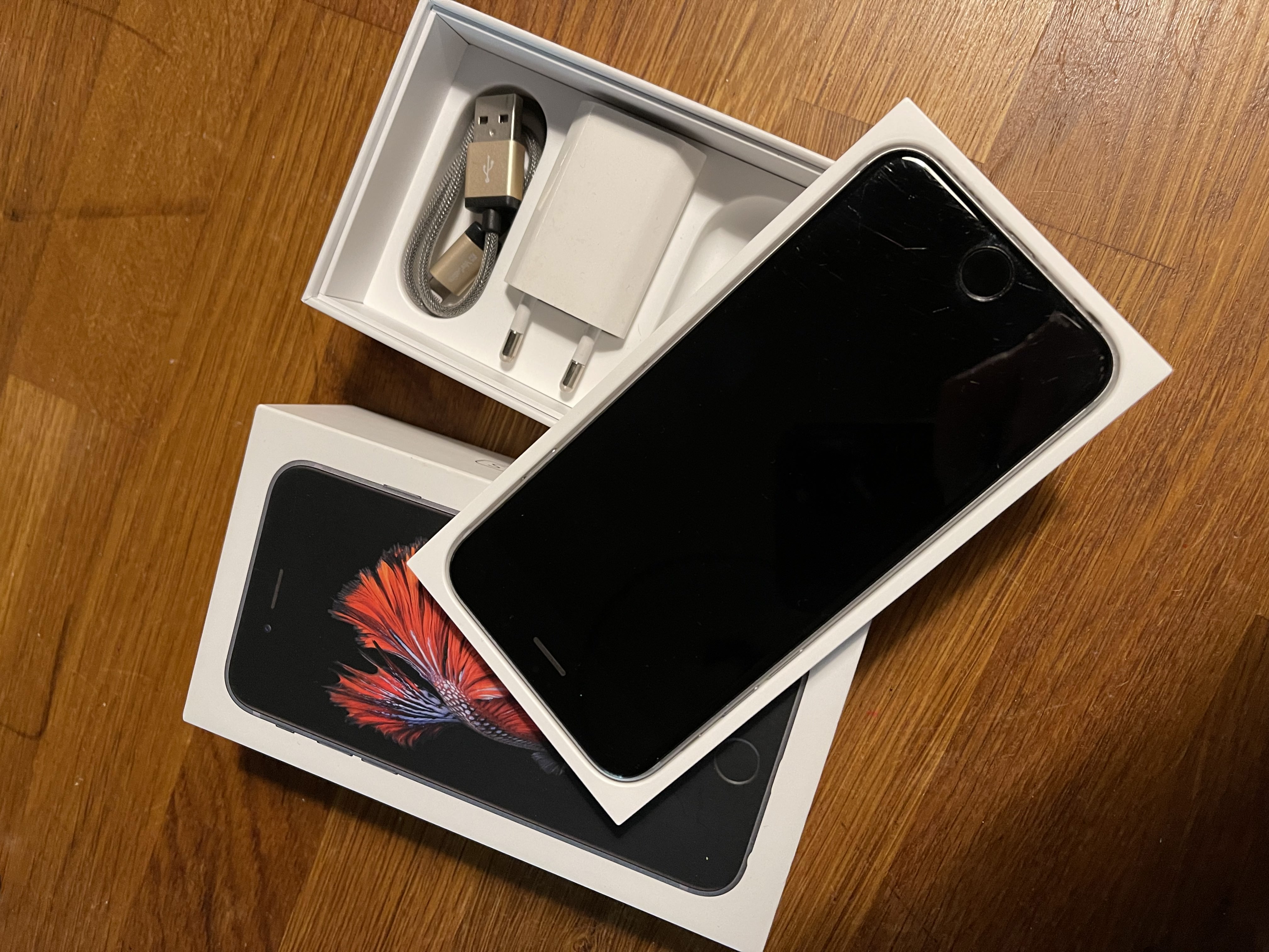 PRODÁM iPhone 6S, 32 GB, space gray, v originálním balení. Včetně nabíječky, bez sluchátek. V březnu 2023 instalována nová baterie. Ideálně osobní předání Praha.