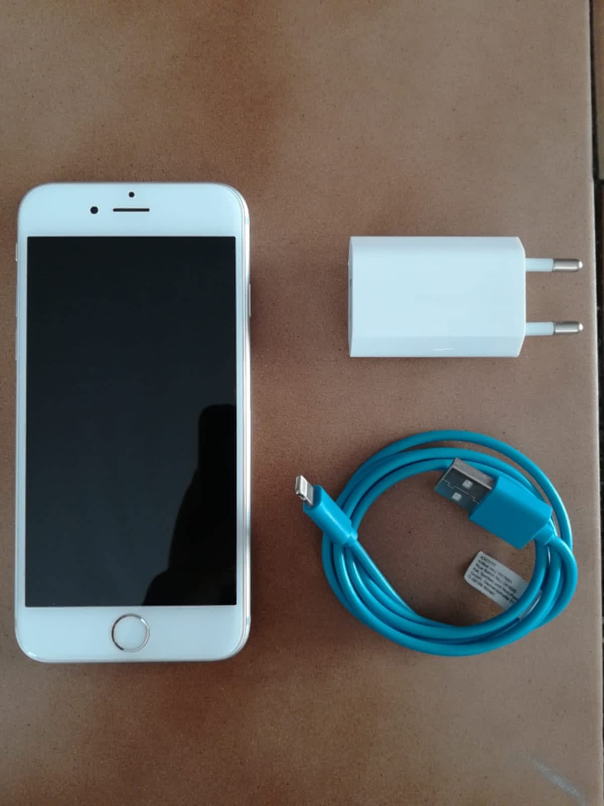 Prodám iPhone 6s silver 64GB v perfektním technickém stavu. Nově vyměněná baterka (kapacita 100%) Nošen v pouzdře s tvrzeným sklem, tudíž žádné škrábance. Jediná vada je na fotce č.4. Je to jen estetické, nemá to vliv na fungování telefonu a je vidět jen na světlé obrazovce.K telefonu přiložím originální adaptér a dokoupený USB kabel.