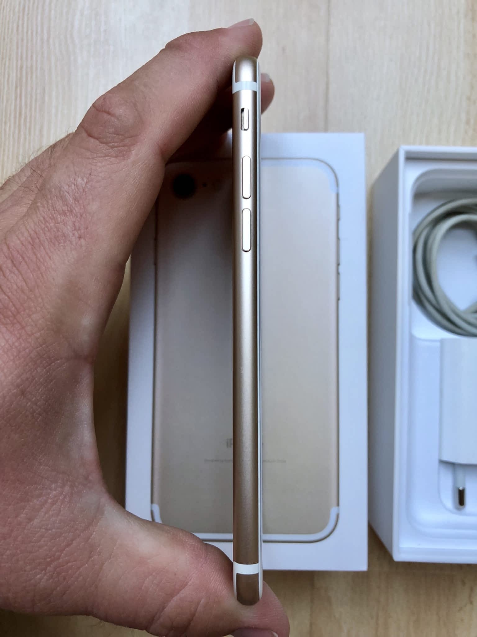 Prodám iPhone 7 128GB ve zlaté / gold barvě. Telefon je v moc pěkném stavu, nošený v krytu. Jedná se o CZ distribuci, takže funkční se všemi SIM. Záruka u iStyle do konce roku – 22.12.2018. K telefonu je faktura, krabička, USB kabel, zástrčka do zásuvky a návody. Na zadní straně a po stranách je jako nový, na displayi je taky ve skvělém stavu až na jeden cm škrábanec viz 5. foto – nejedná se o prasklinu!!