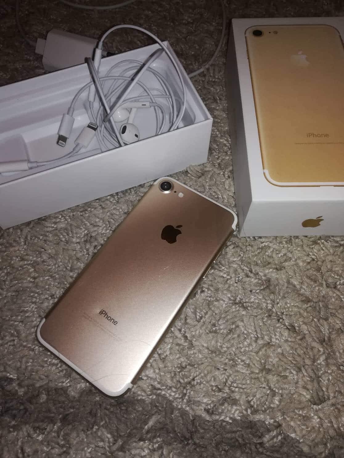 Prodám iPhone 7 32 GB ve zlaté barvě včetně krabičky. Zařízení má v levém horním roku lehčí oděrku z běžného používání, na displeji bylo po celou dobu používání nalepené tvrzené sklo. Zařízení bylo zakoupeno 20. srpna 2018, záruka je platná dva roky, tzn. do 20. srpna 2020. K iPhonu přidám zdarma bezdrátová sluchátka. Cena je 9500Kč, při rychlém jednání možná sleva.
