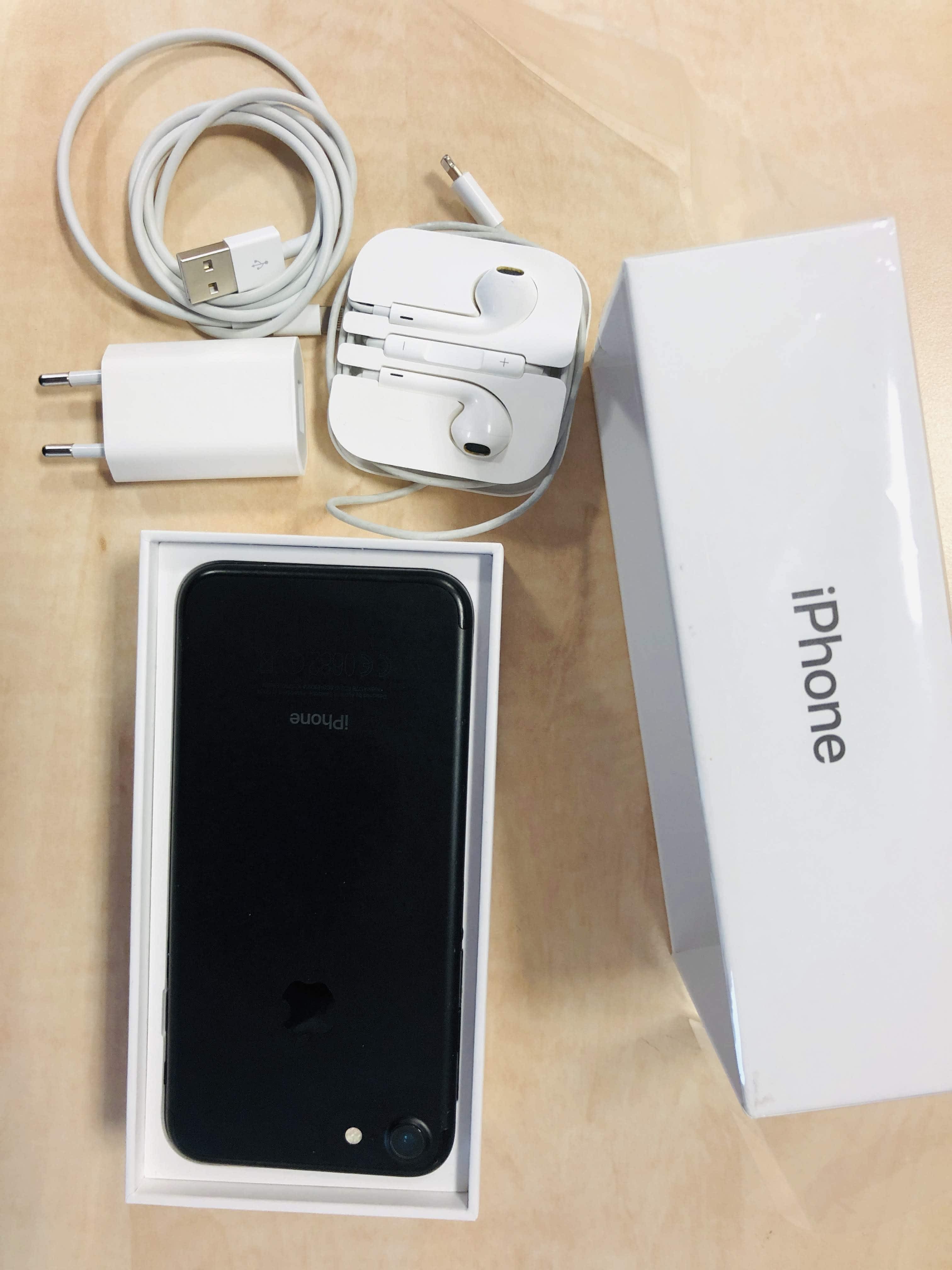Prodám 3 roky starý používaný iPhone 7 32GB matt black. Baterie 100%. Na levém horním rohu je odřenina. Telefon je bez jakýchkoliv závad.