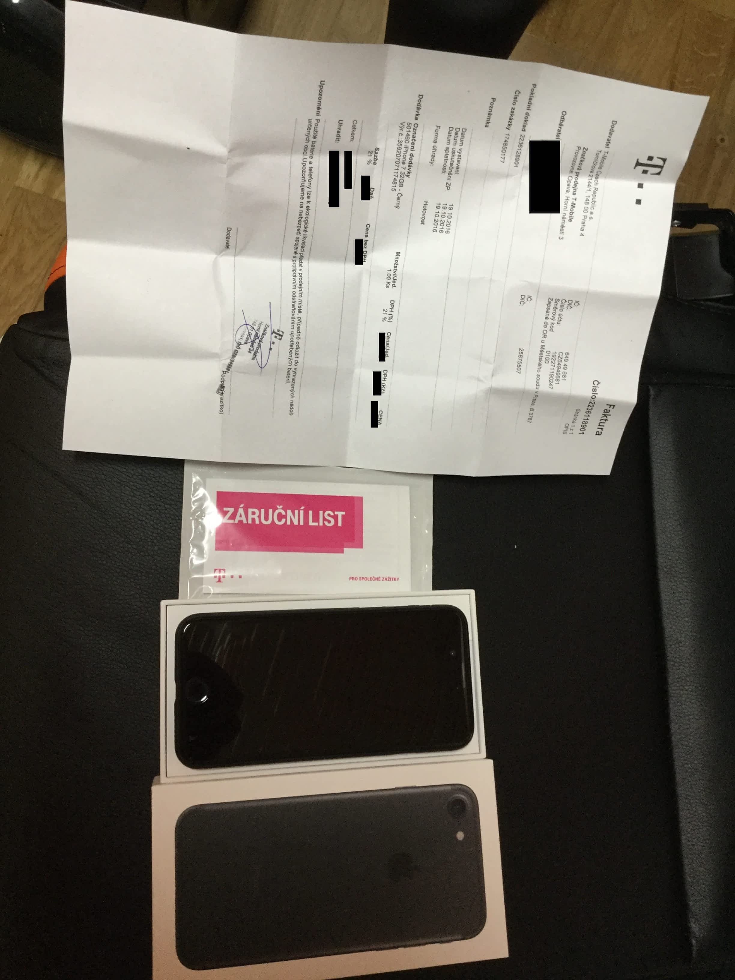 Zakoupen v T-Mobile 19.10.2016 (viz faktura) + ochranné temperované sklo, které bylo nalepeno ihned v prodejně společně s obalem v celkové hodnotě 1400,- Kč. ( viz.- faktura )