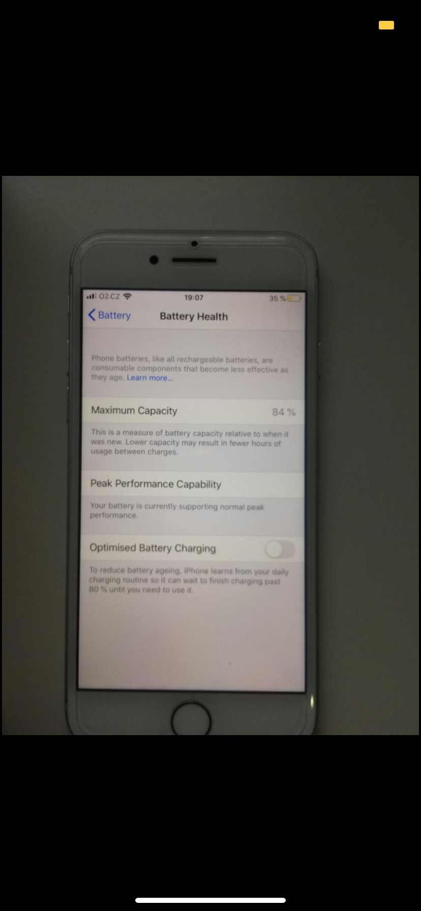 Zakoupen v Datartu 27.12.18 + prodloužená záruka 1 rok, záruka končí 27.12.21 Stav skoro jako nový, udělejte si obrázek podle fotek, vždy nošen v krytu společně s ochranným sklem. Dne 30.11.19 byla v iWantu provedena diagnostika zařízení viz. fotka. Kondice baterie 84%, iPhon stále drží celý den, možná časem bych doporučila výměnu baterie.
