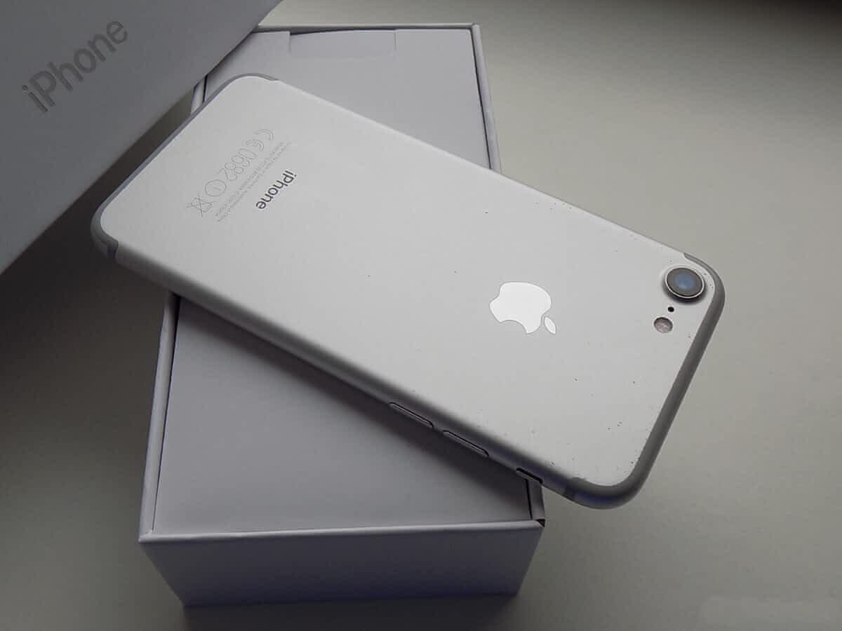 Telefon Apple iPhone 7 32GB Silver, nabíječka, datový kabel, nalepeno ochranné sklo a pouzdro.