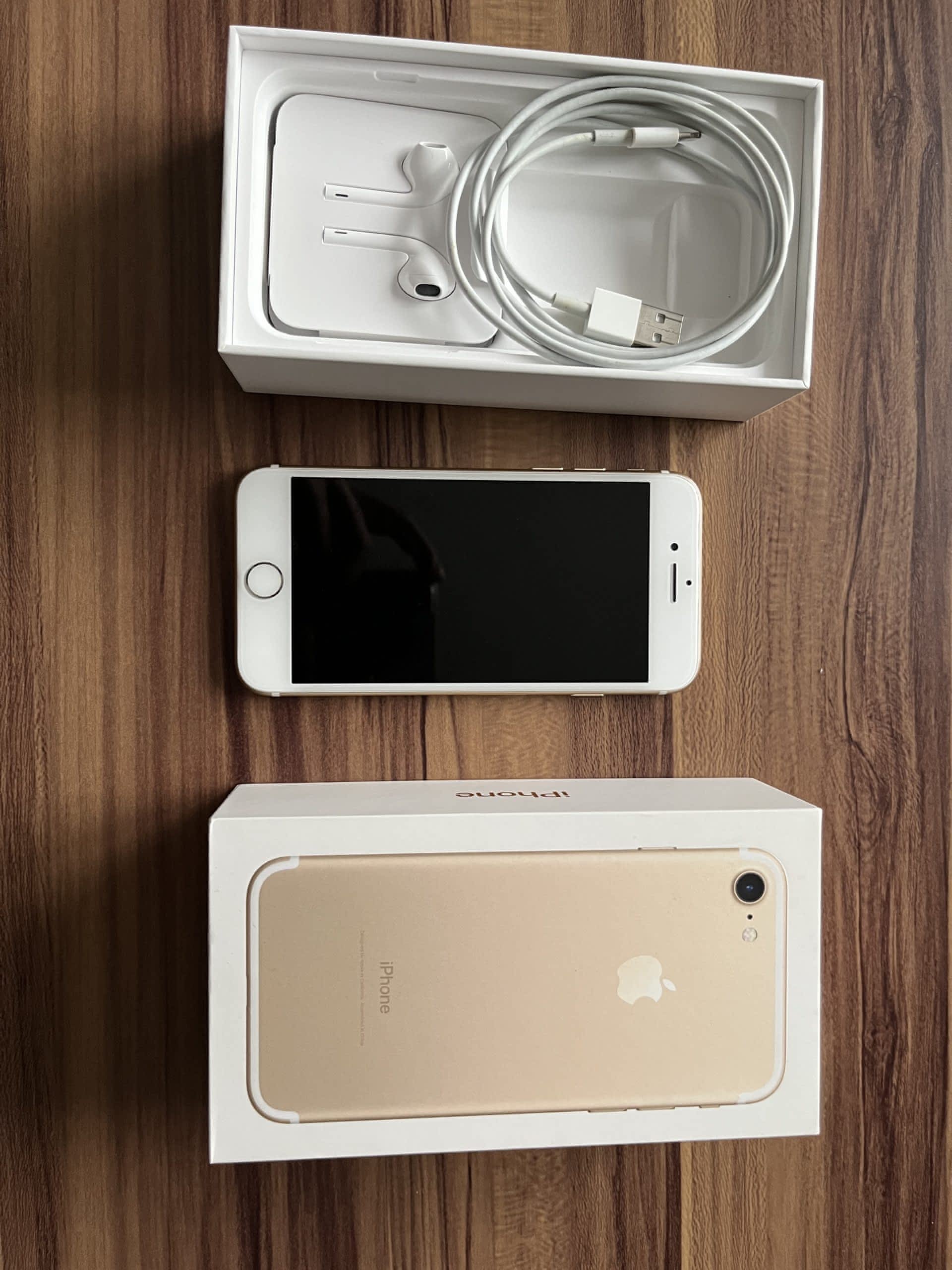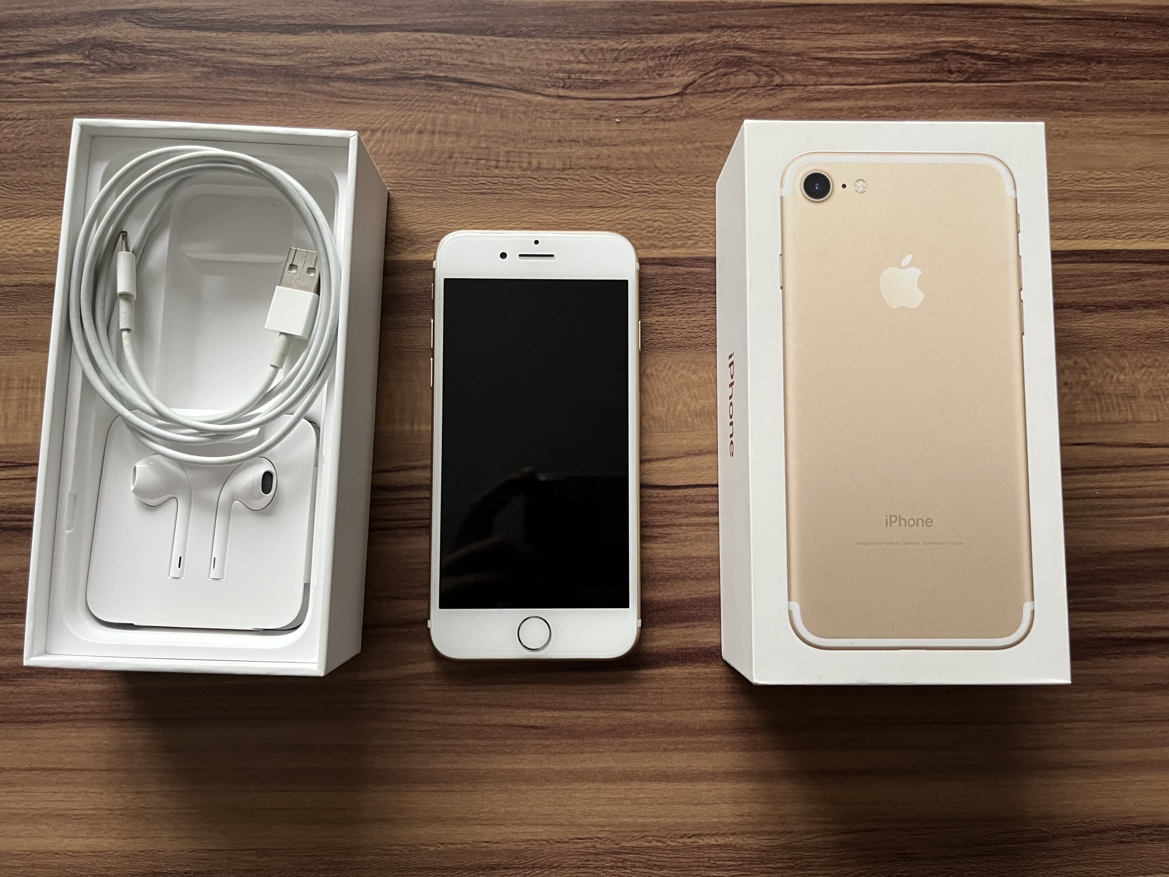 Prodám 4 roky starý iPhone 7 gold s 256gb pamětí v dobrém stavu. Neustále nošen v ochranném krytu. Na displeji je pár malých škrábanců. Letos v červnu měněná baterie (autorizovaný servis), stav je nyní 100%. Součástí balení je nabíjecí kabel a originální sluchátka.