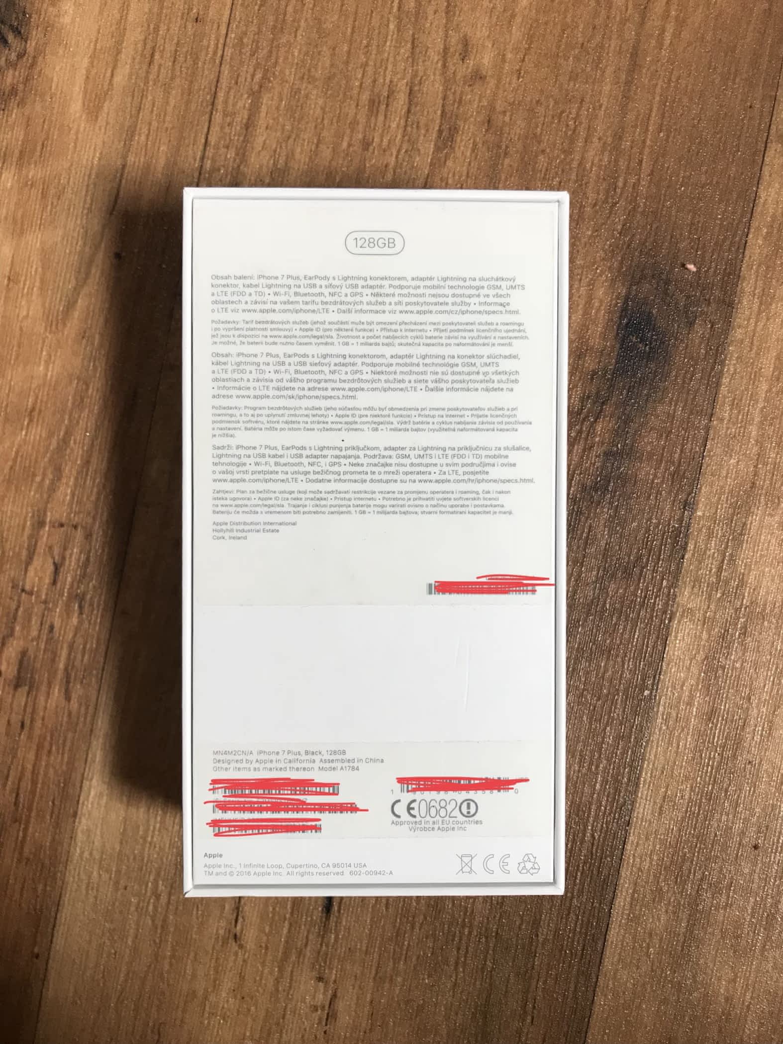 Prodám iPhone 7 Plus v matně černé barvě o kapacitě 128GB. Telefon byl kupován 31. 1. 2017 (viz. foto) a vztahuje se tedy na něj celosvětová záruka Applu do 31. 1. 2018. Poté plyne ještě 1-roční záruční lhůta v ČR (nevím jak je to na Slovensku).