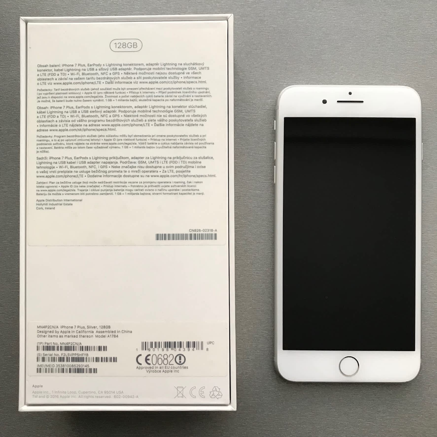 Prodám 3 měsíce používaný iPhone 7 Plus 128GB Silver. Stav nového telefonu. Kompletní balení, sluchátka, nabíječka + přidám originální Apple silikonový obal. Roční záruka už vypršela. Telefon je ve 100% stavu a plně funkční. iCloud odhlášen a provedeno vymazání telefonu. iOS 11.2.5.